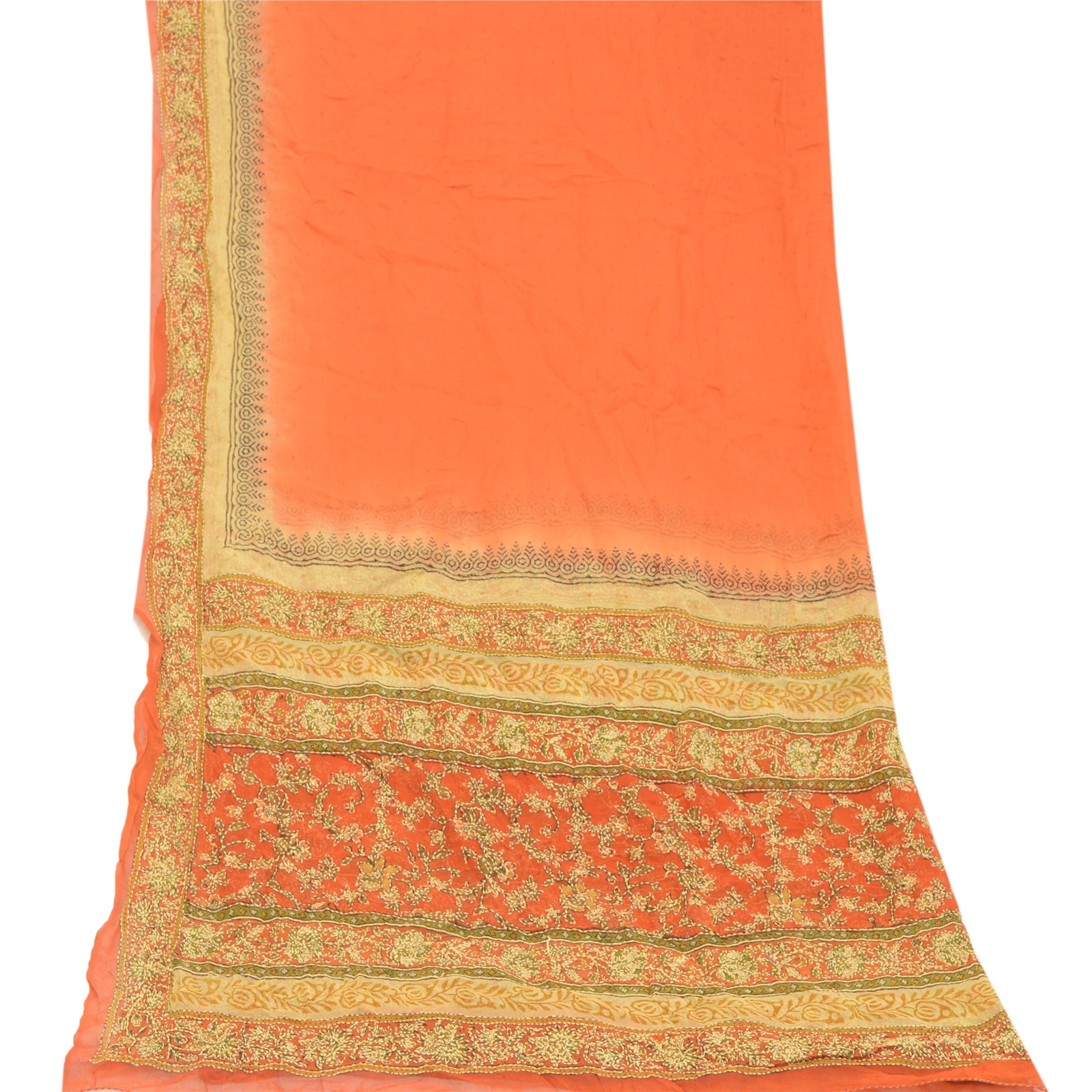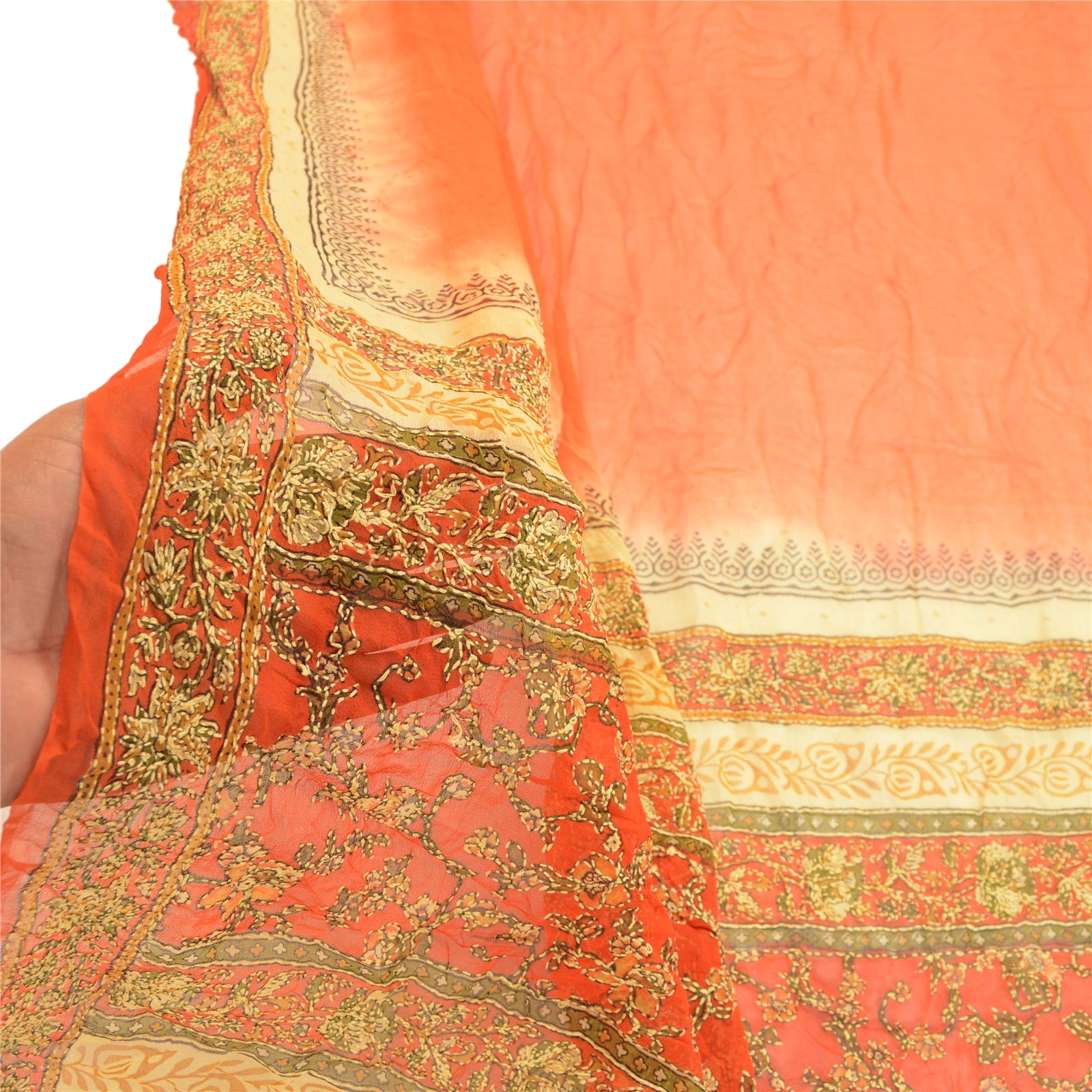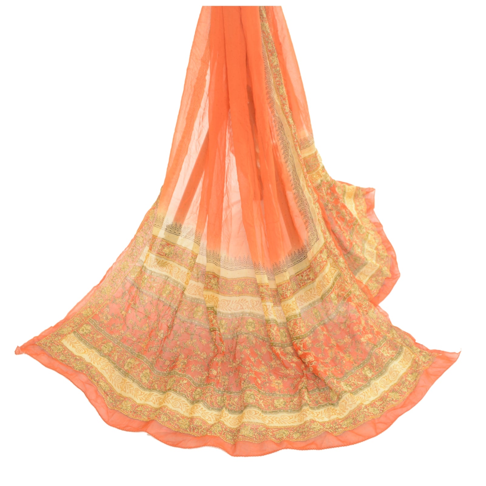 Sanskriti Vintage Dupatta Long Stole Chiffon Silk Orange Handmade Kantha Veil