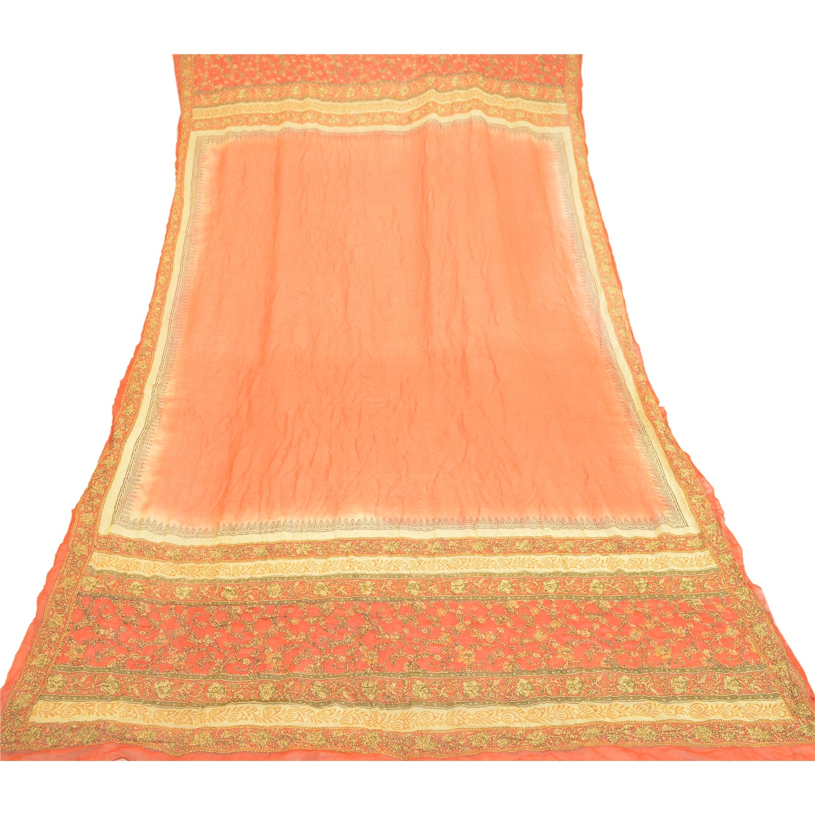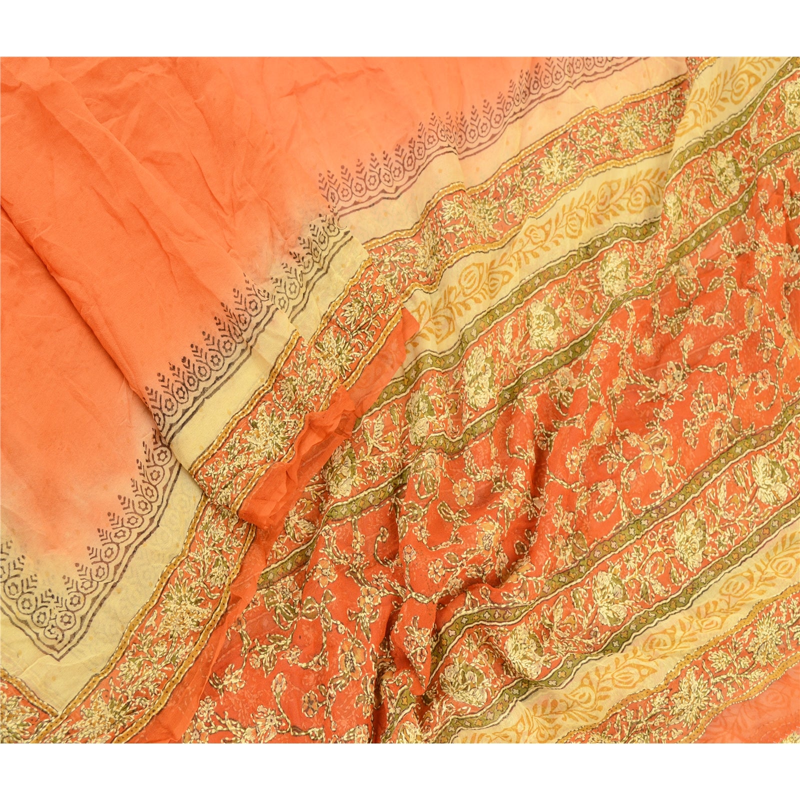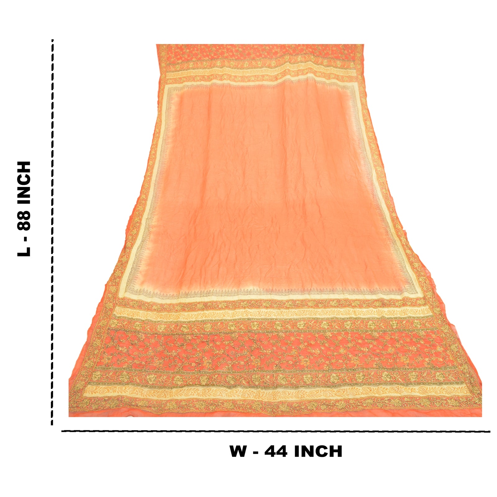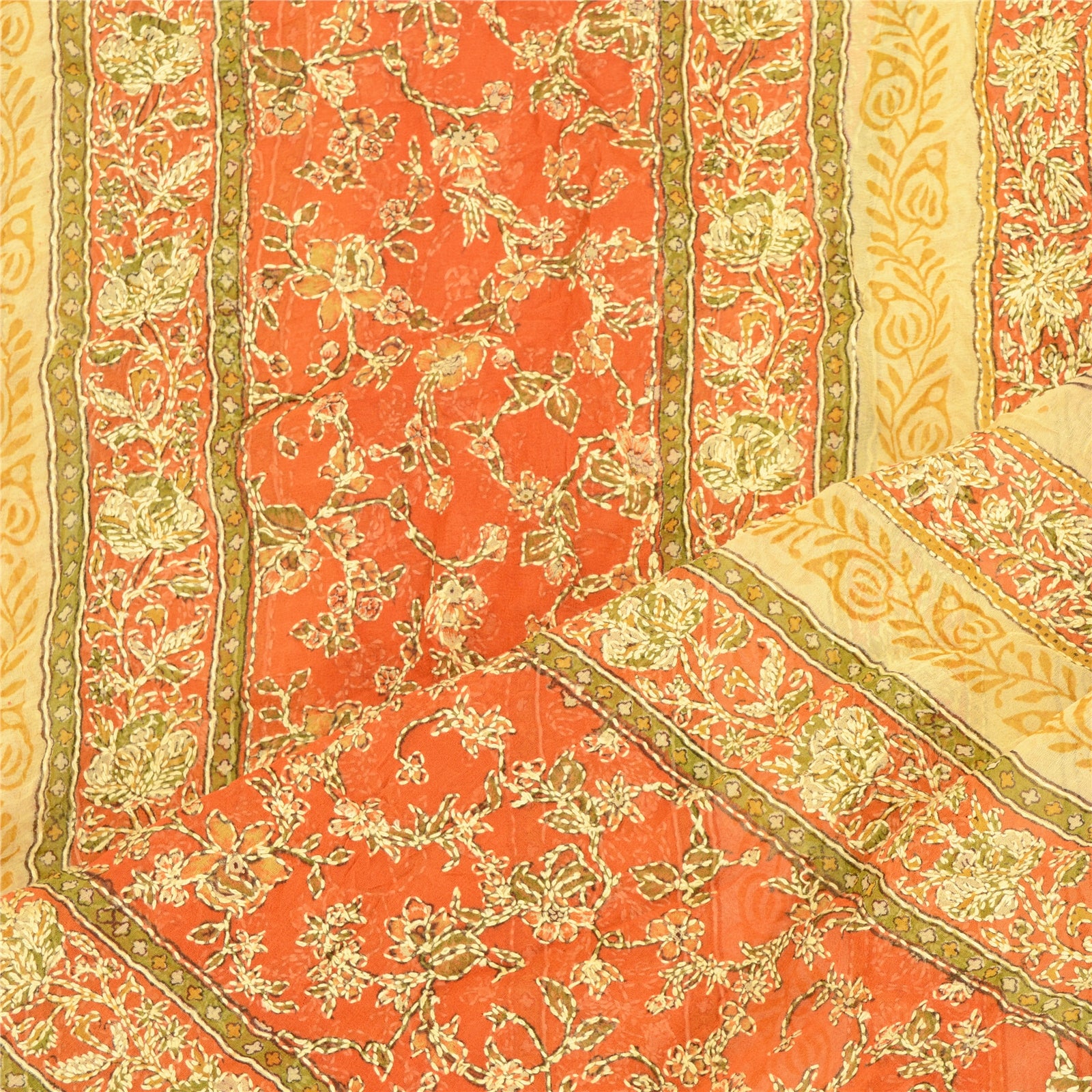 Sanskriti Vintage Dupatta Long Stole Chiffon Silk Orange Handmade Kantha Veil