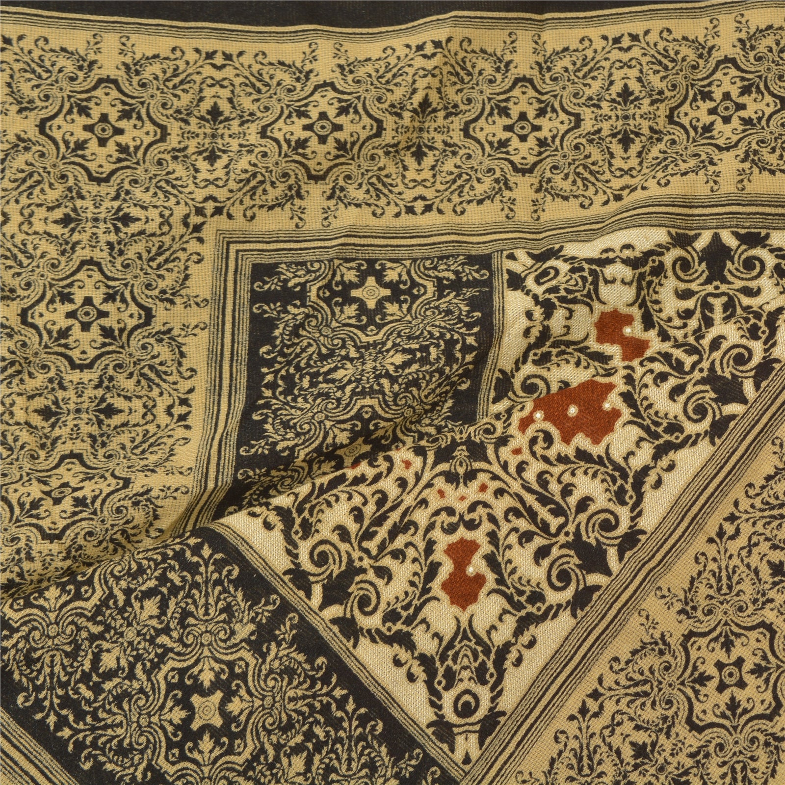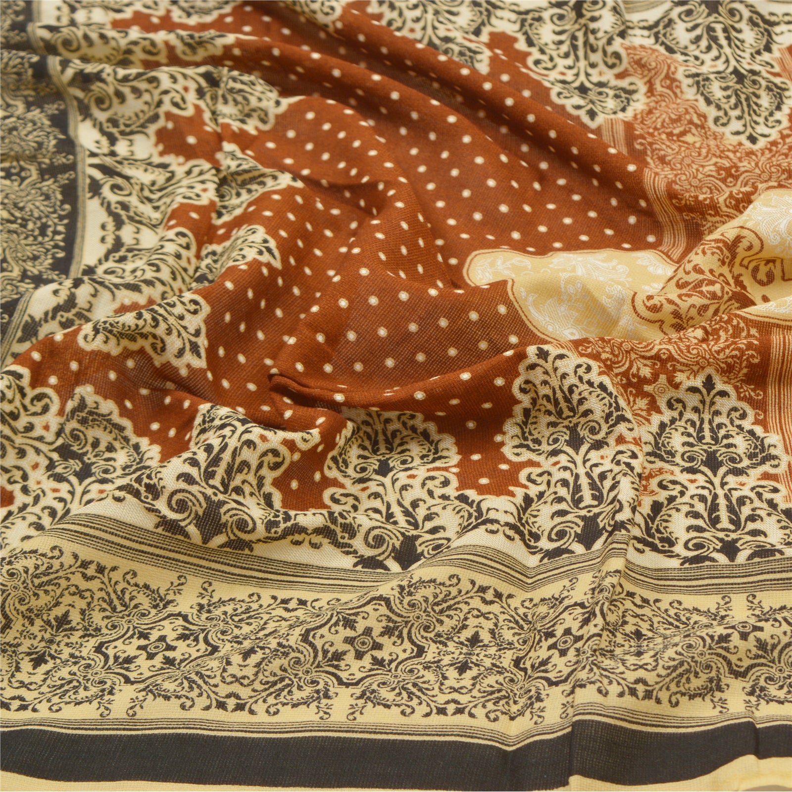 Sanskriti Vintage Dupatta Long Stole Cotton Brown Hijab Printed Wrap Scarves