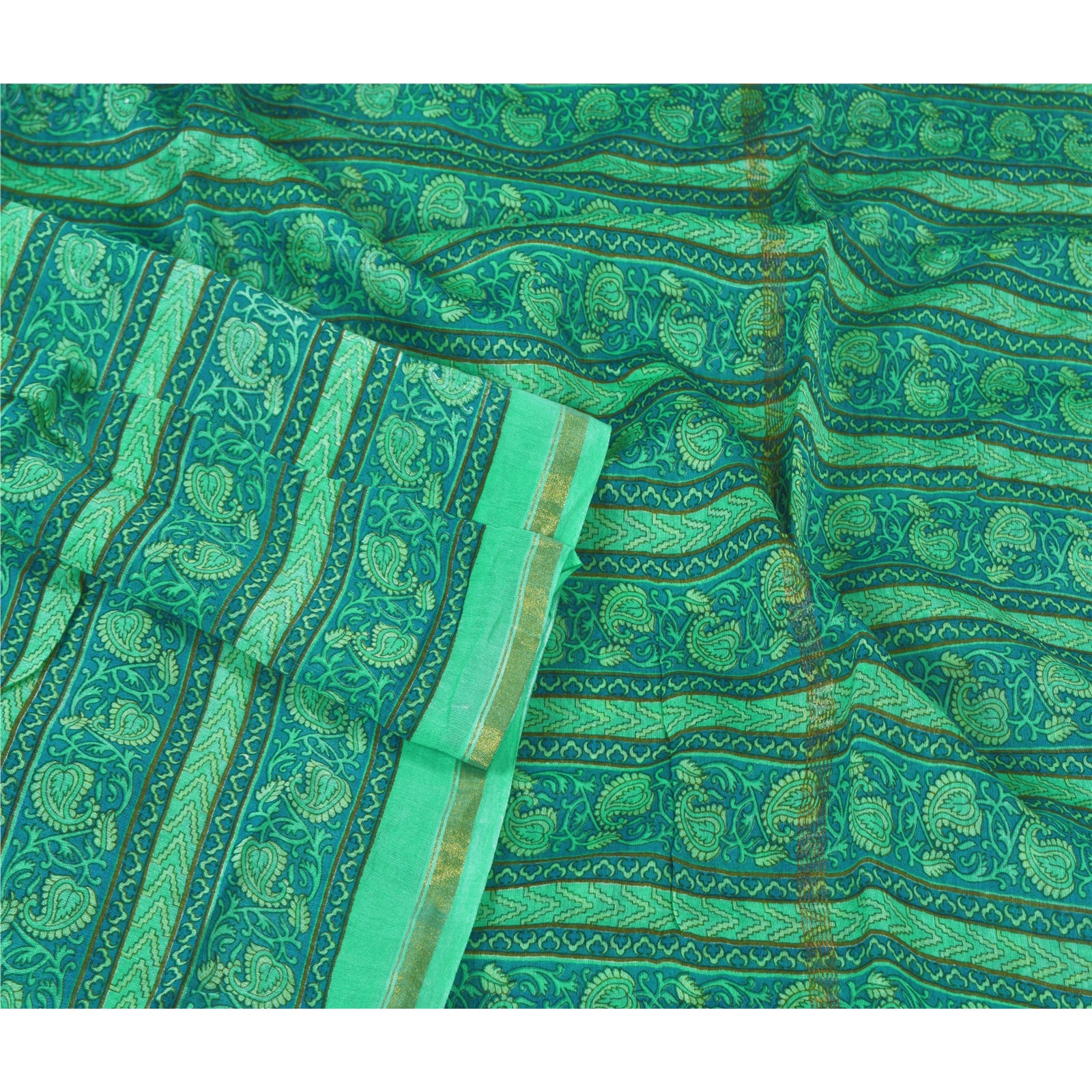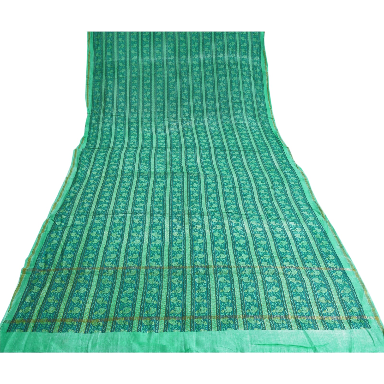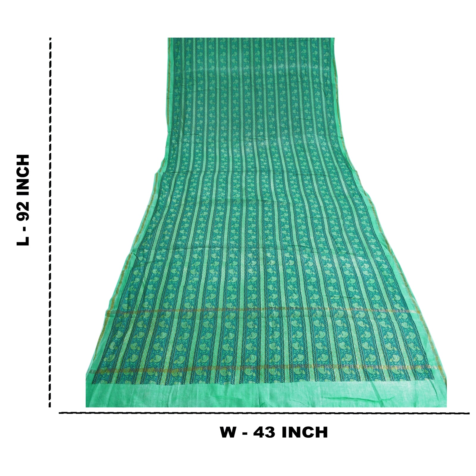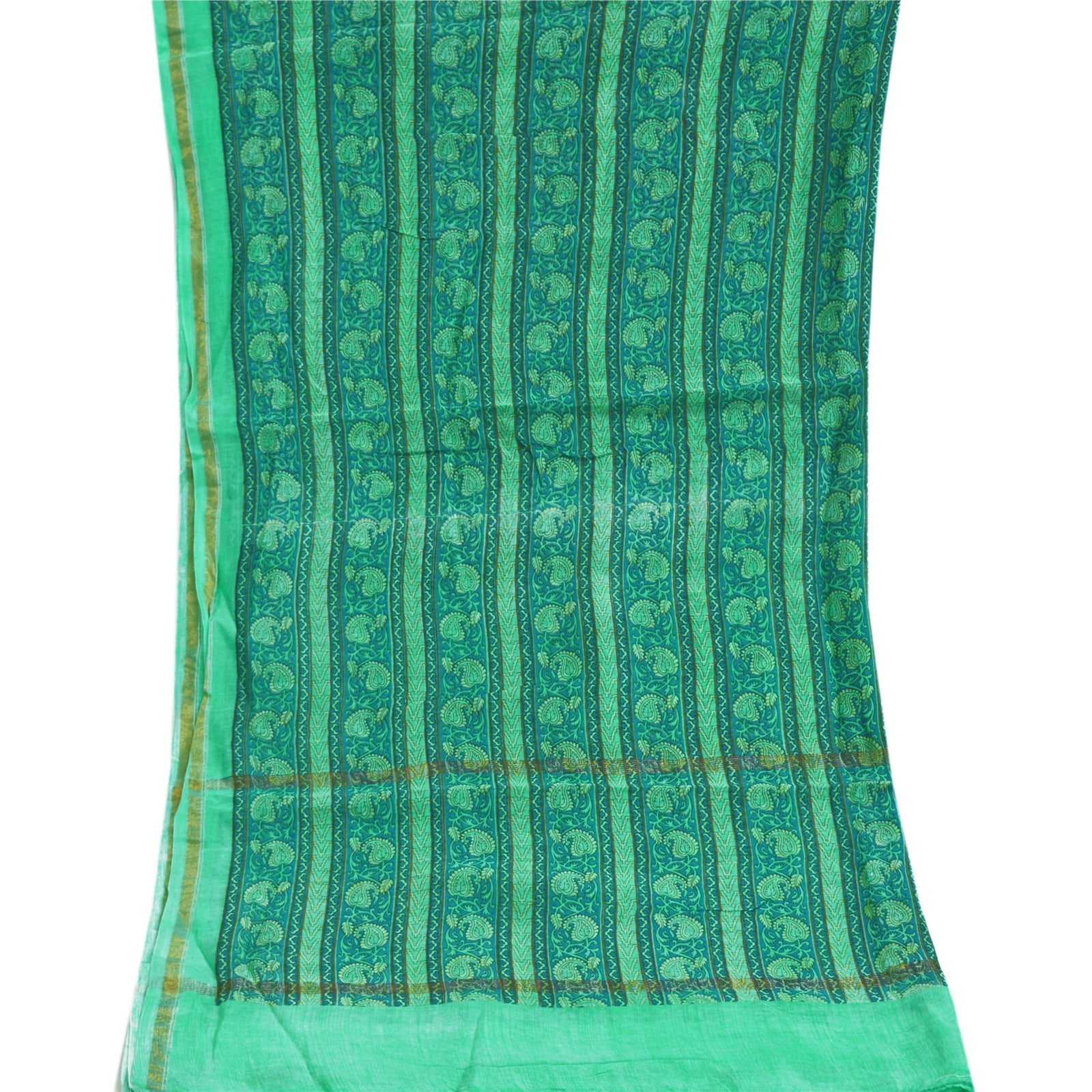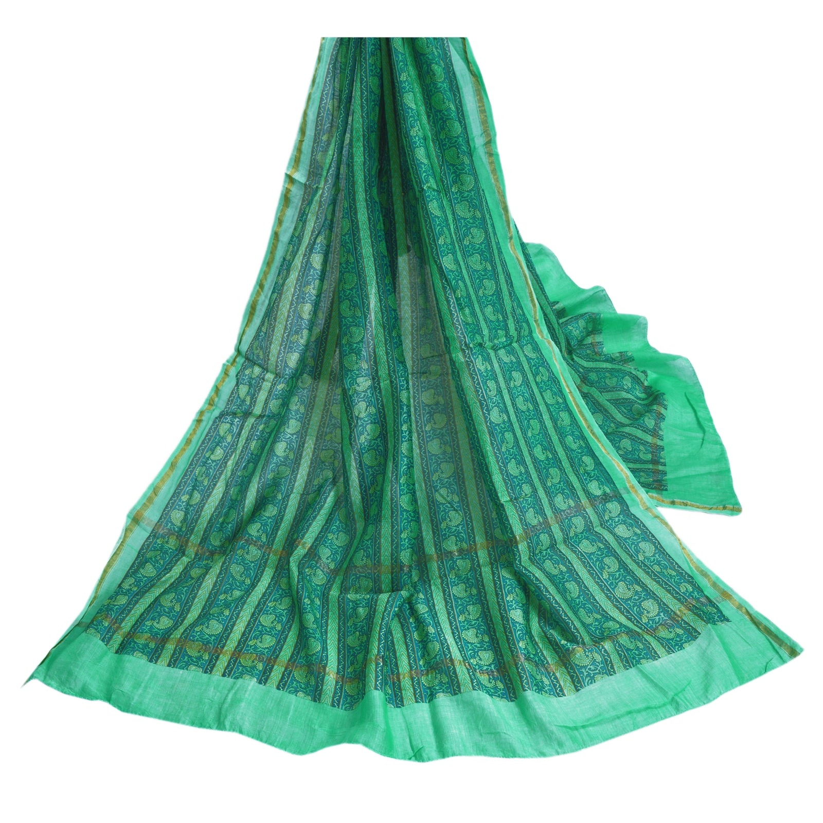 Sanskriti Vintage Dupatta Long Stole Green Blend Silk Printed Scarves