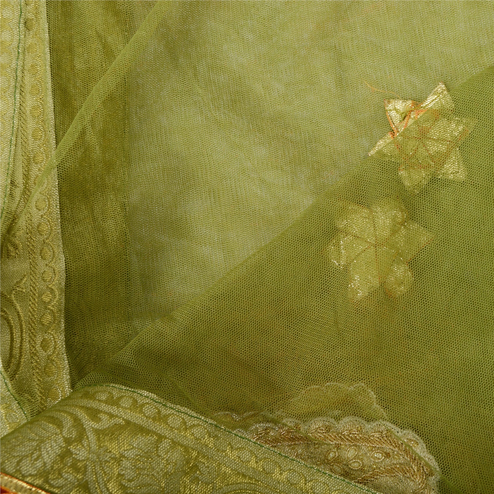Sanskriti Vintage Dupatta Long Stole Net Mesh Green Hijab Hand Beaded Wrap Veil