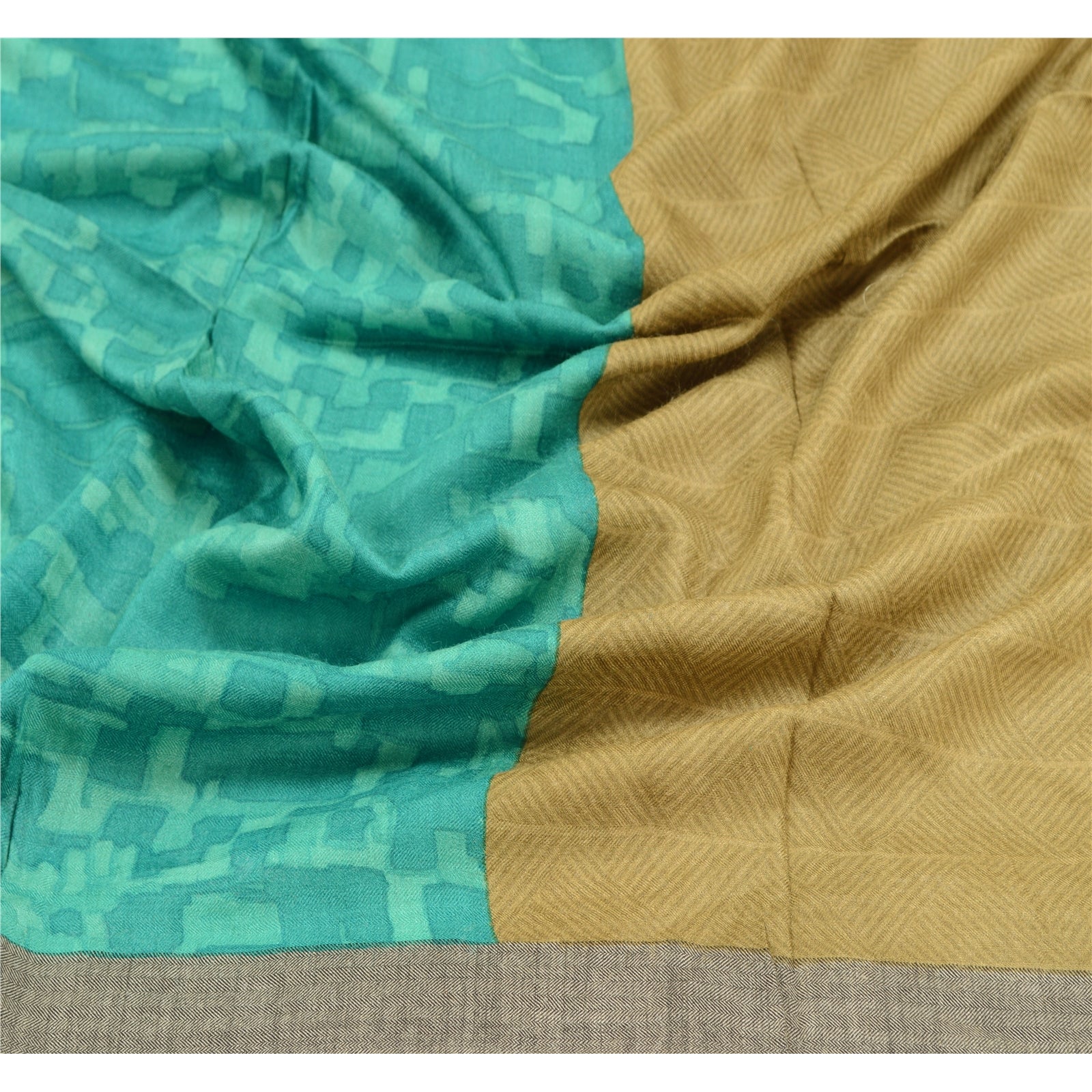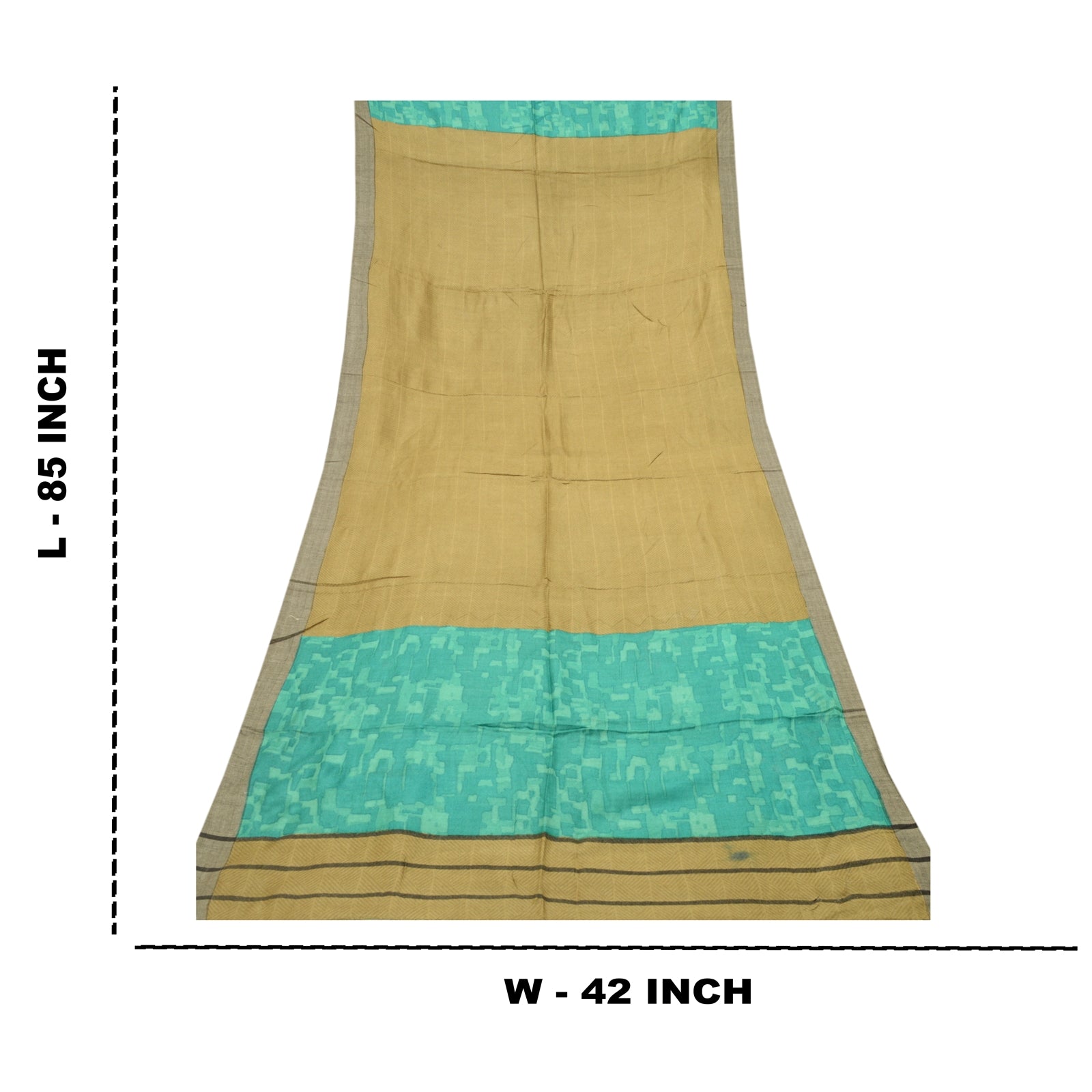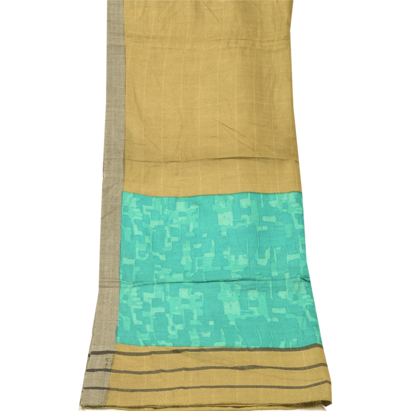 Elegant Shade Of Green & Blue Colored Woolen Printed Long Scarf/Dupatta. Center portion of the dupatta has printed geometric design Border has printed geometric & abstract design with soft base Sustainable Fabric is really enhancing beauty of the dupatta/stole. Stole has matching fringes on both ends of borders. This dupatta/stole can be used for various crafting ideas too. Use it for dress designing, as a throw, as window dressing, upholstery, table linen and much more. Let your creative juices flow. As the item is Vintage, some minor stains and defects are expected.