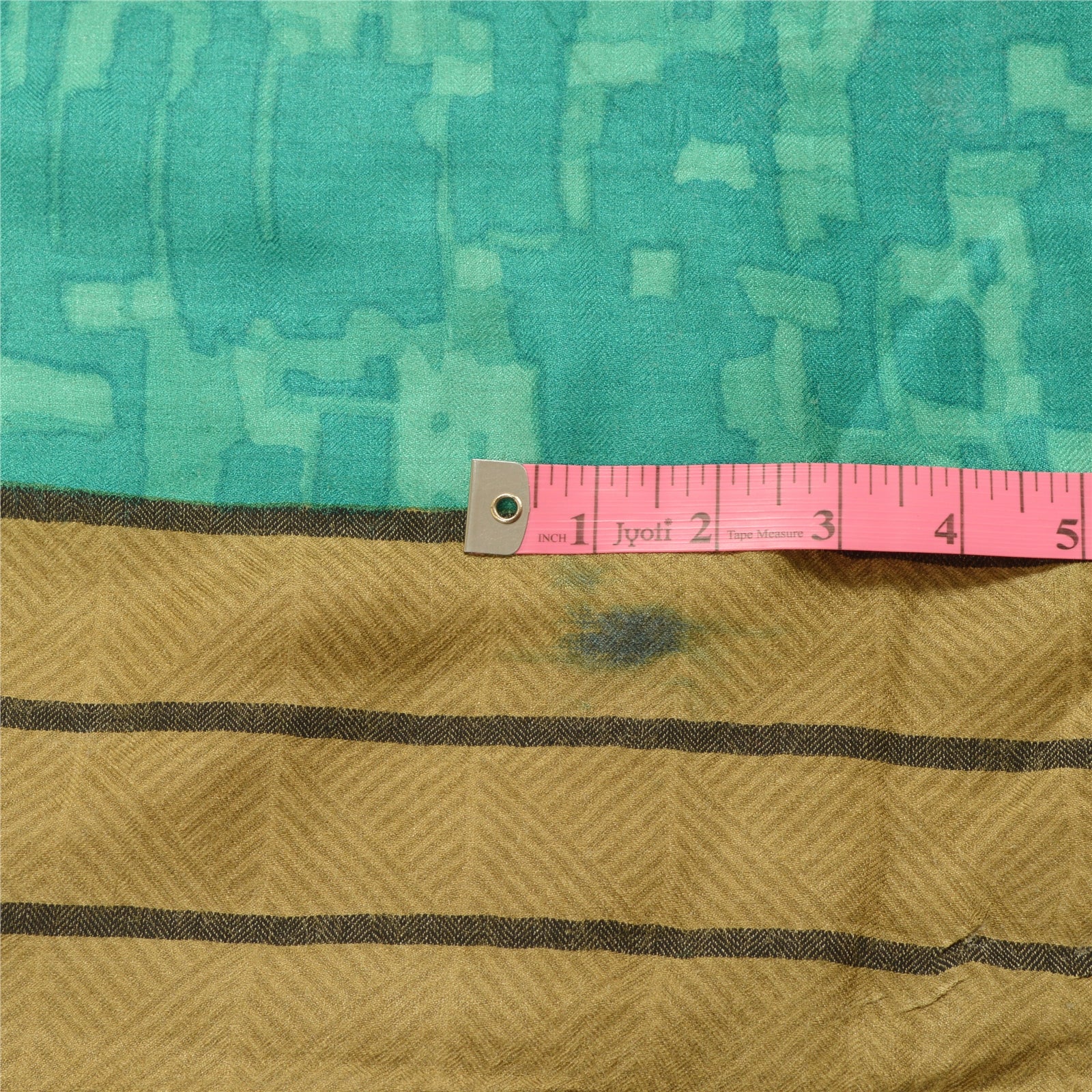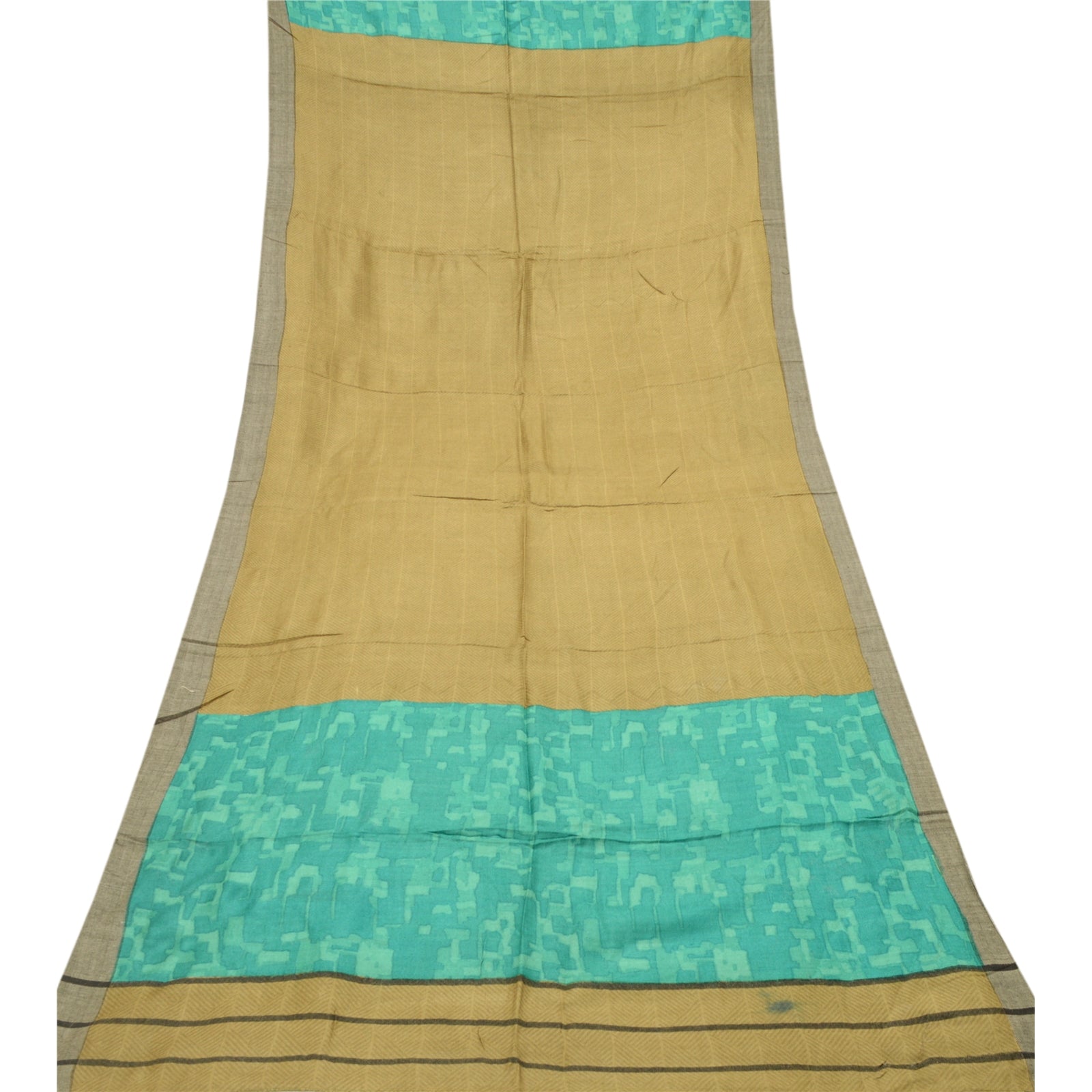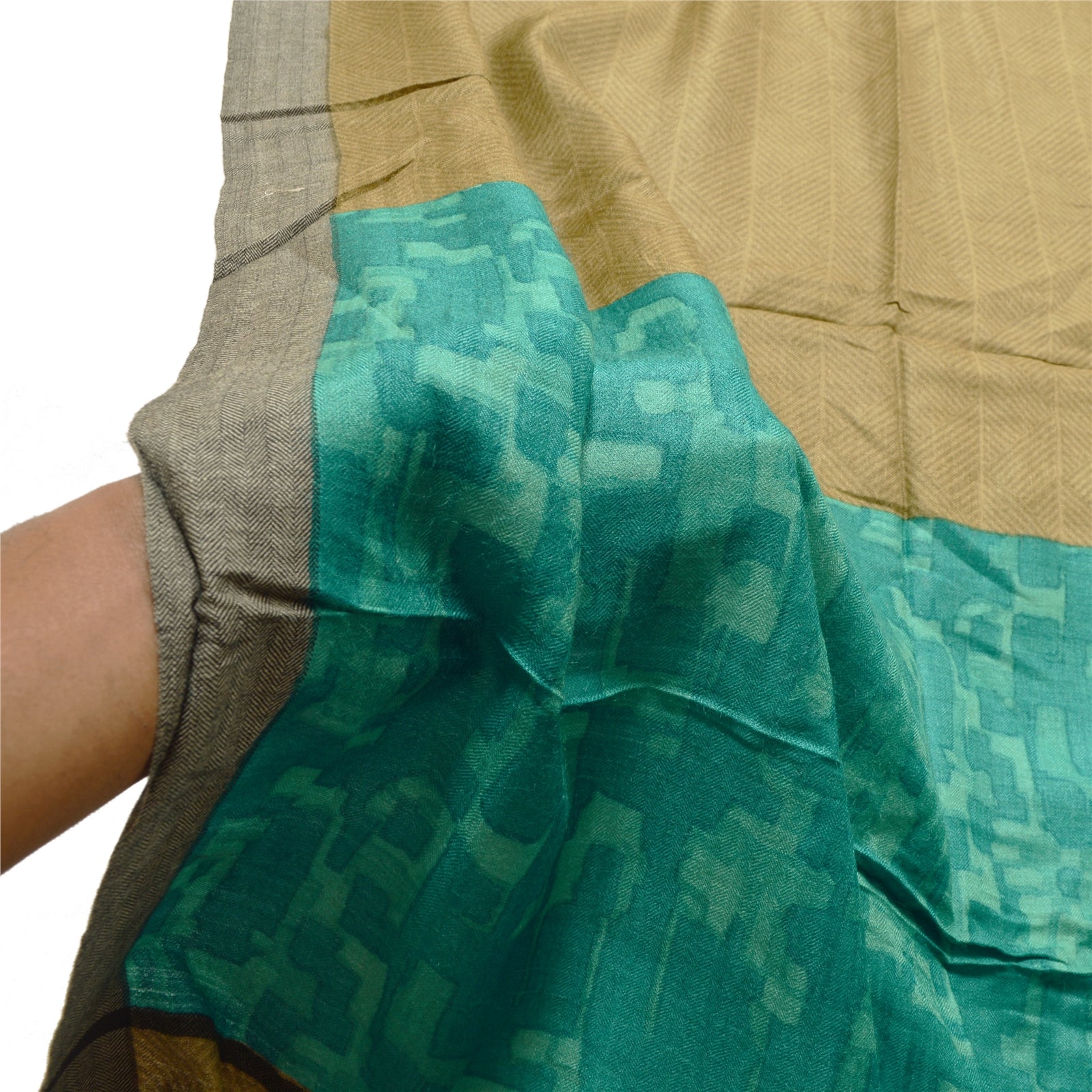 Elegant Shade Of Green & Blue Colored Woolen Printed Long Scarf/Dupatta. Center portion of the dupatta has printed geometric design Border has printed geometric & abstract design with soft base Sustainable Fabric is really enhancing beauty of the dupatta/stole. Stole has matching fringes on both ends of borders. This dupatta/stole can be used for various crafting ideas too. Use it for dress designing, as a throw, as window dressing, upholstery, table linen and much more. Let your creative juices flow. As the item is Vintage, some minor stains and defects are expected.