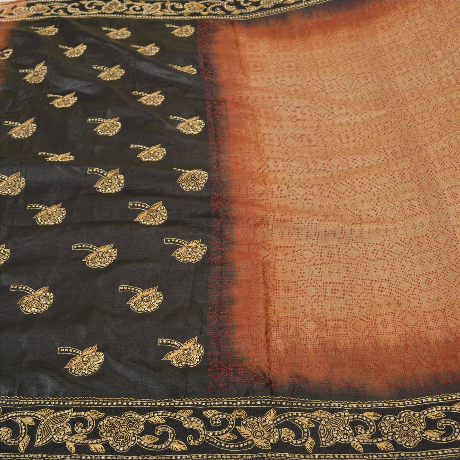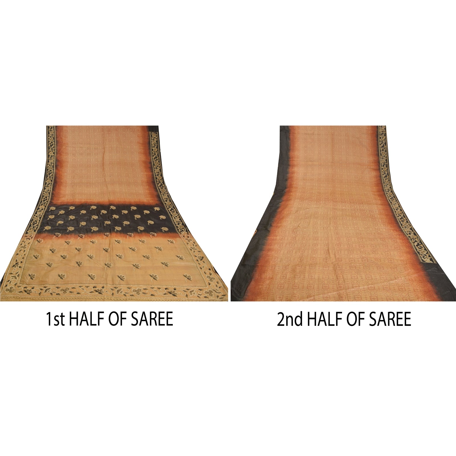 Sanskriti Vintage Golden/Black Sarees Pure Silk Hand Beaded Premium Sari Sustainable Fabric