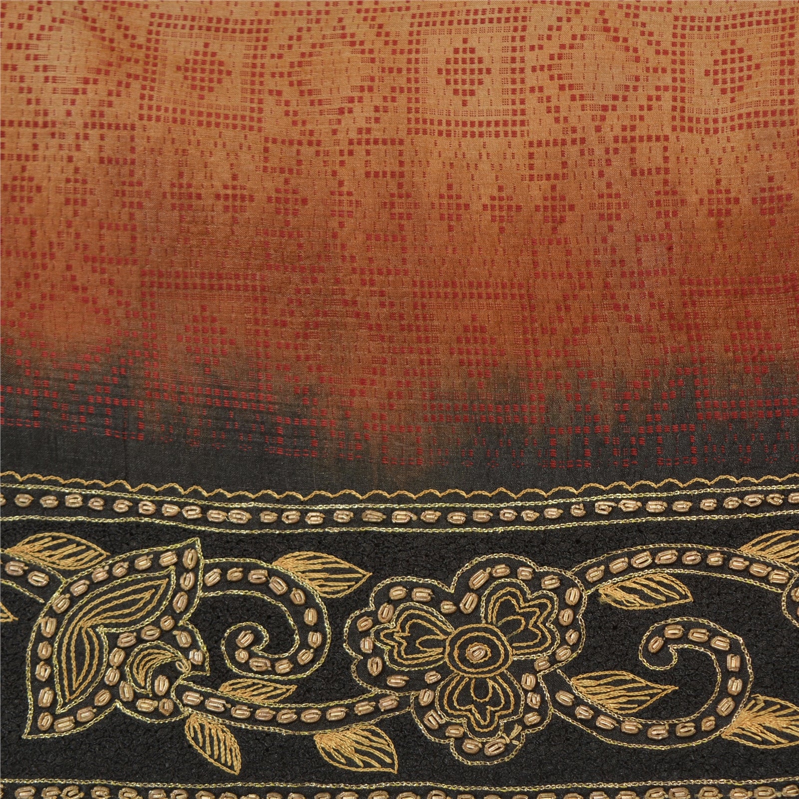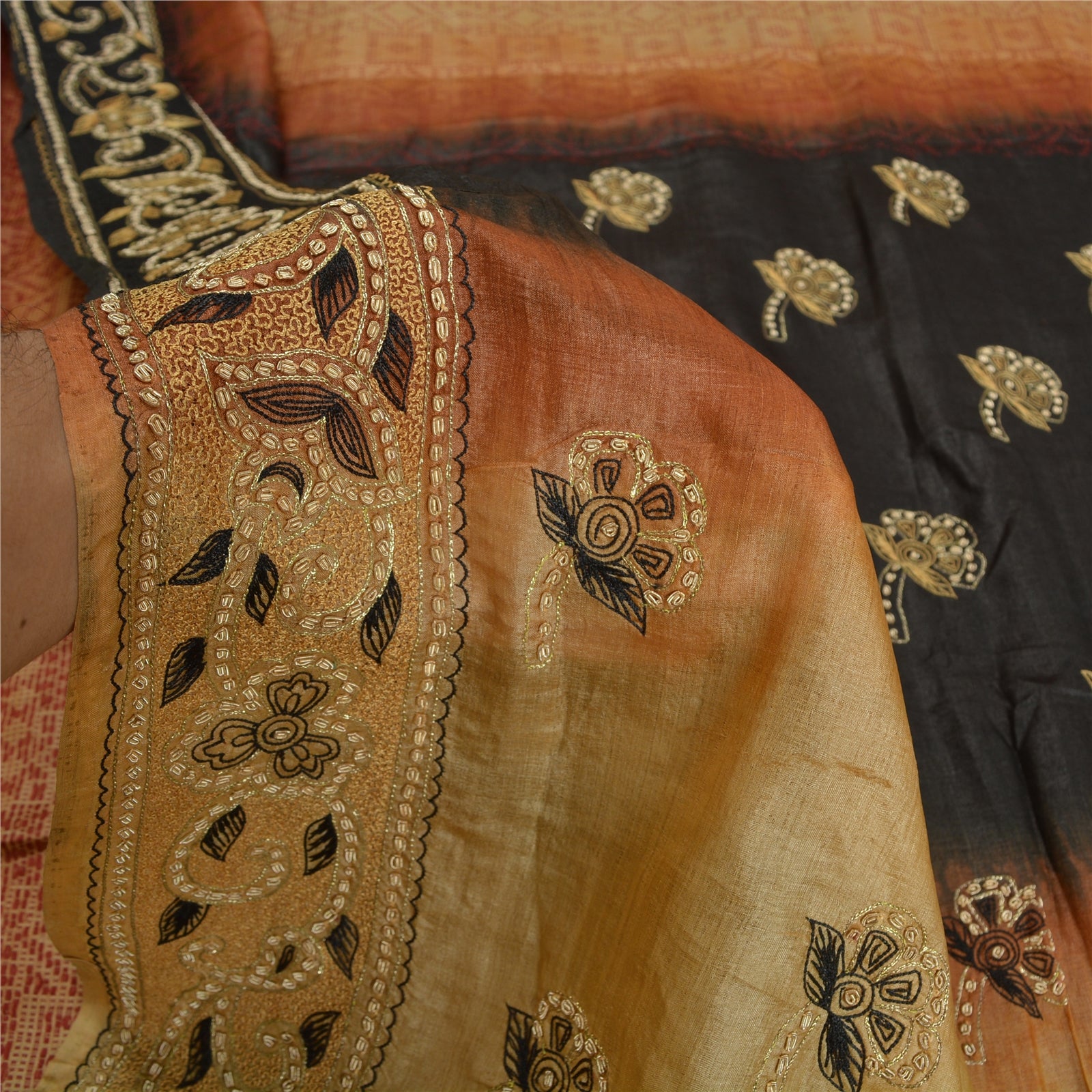 'THE ITEM COLOR OR SHADE MAY BE DARKER OR LIGHTER THAN THE PICTURE.' Beautiful shade of golden & black colored pure silk hand embroidered woven sari. Pallu & border features floral design embroidered brown/red thread work, golden metallic zari/zardozi work. The center of the saree has red woven thread work. As the item is Vintage, some minor stains and defects are expected. This saree can be used for various crafting ideas too. Use it for dress designing, as a throw, as window dressing, upholstery, table linen and much more. Let your creative juices flow. 'International buyers please note: Import duties, taxes, and charges are not included in the item price or postage cost. These charges are the buyer's responsibility. Please check with your country's customs office to determine what these additional costs will be prior to bidding or buying. Buyer will pay custom duty/tax. It is calculated and charged differently by every country. As a seller I do not have any control over it. VAT or sales tax is calculated by the platform at the time of checkout. Customs charge is payable at the time of delivery.'