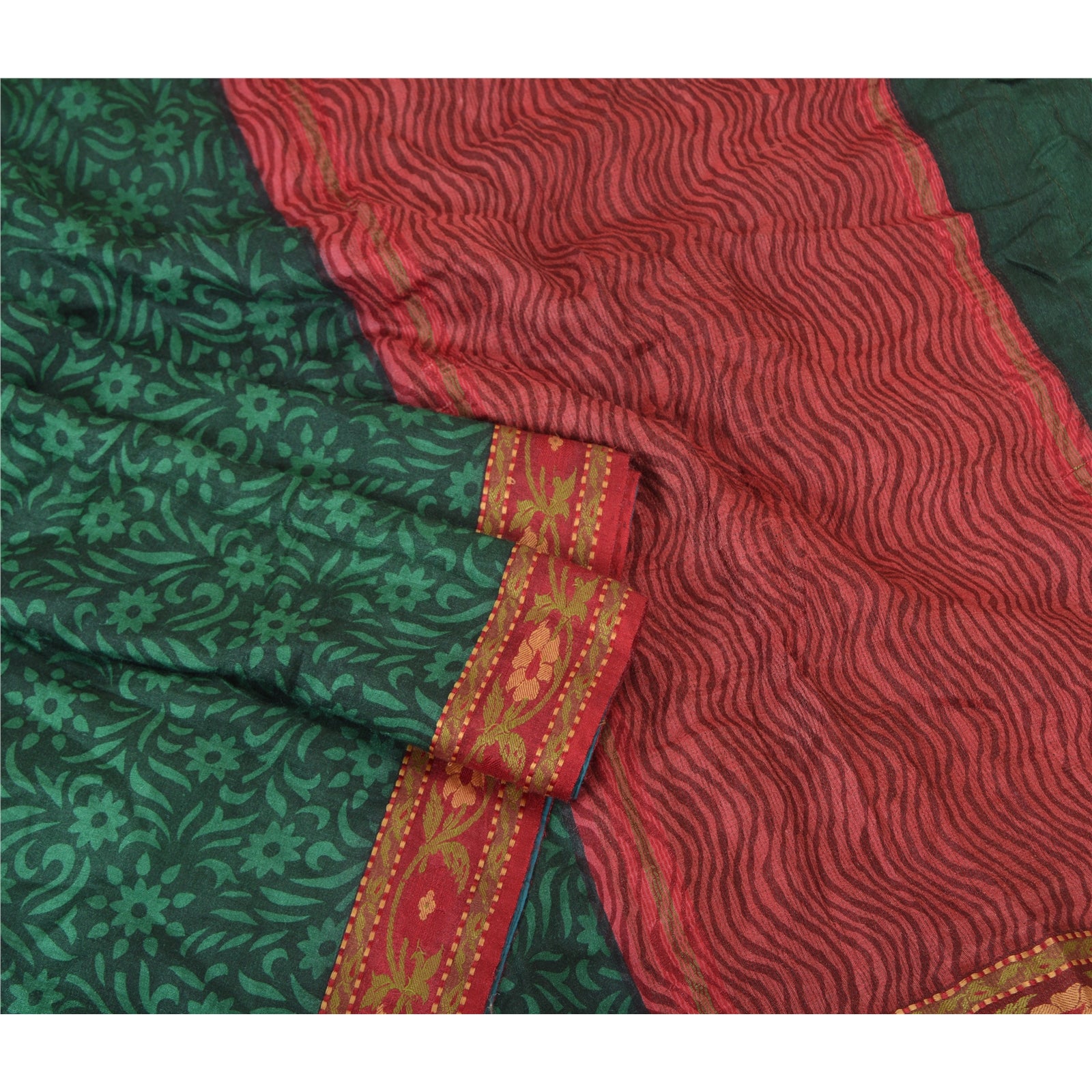 Sanskriti Vintage Green Heavy Indian Sarees 100% Pure Silk Printed Sari Sustainable Fabric