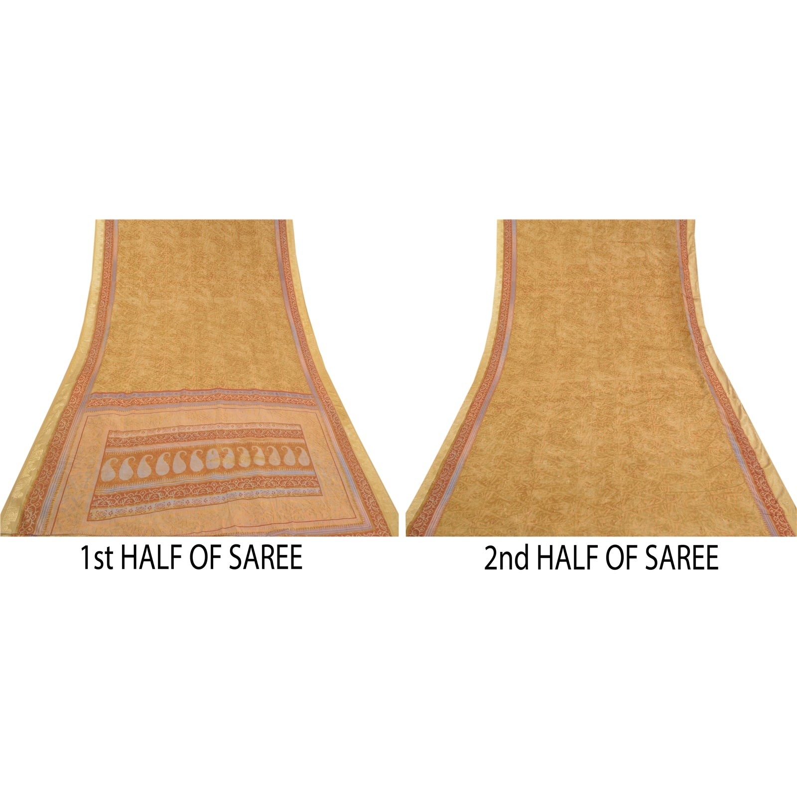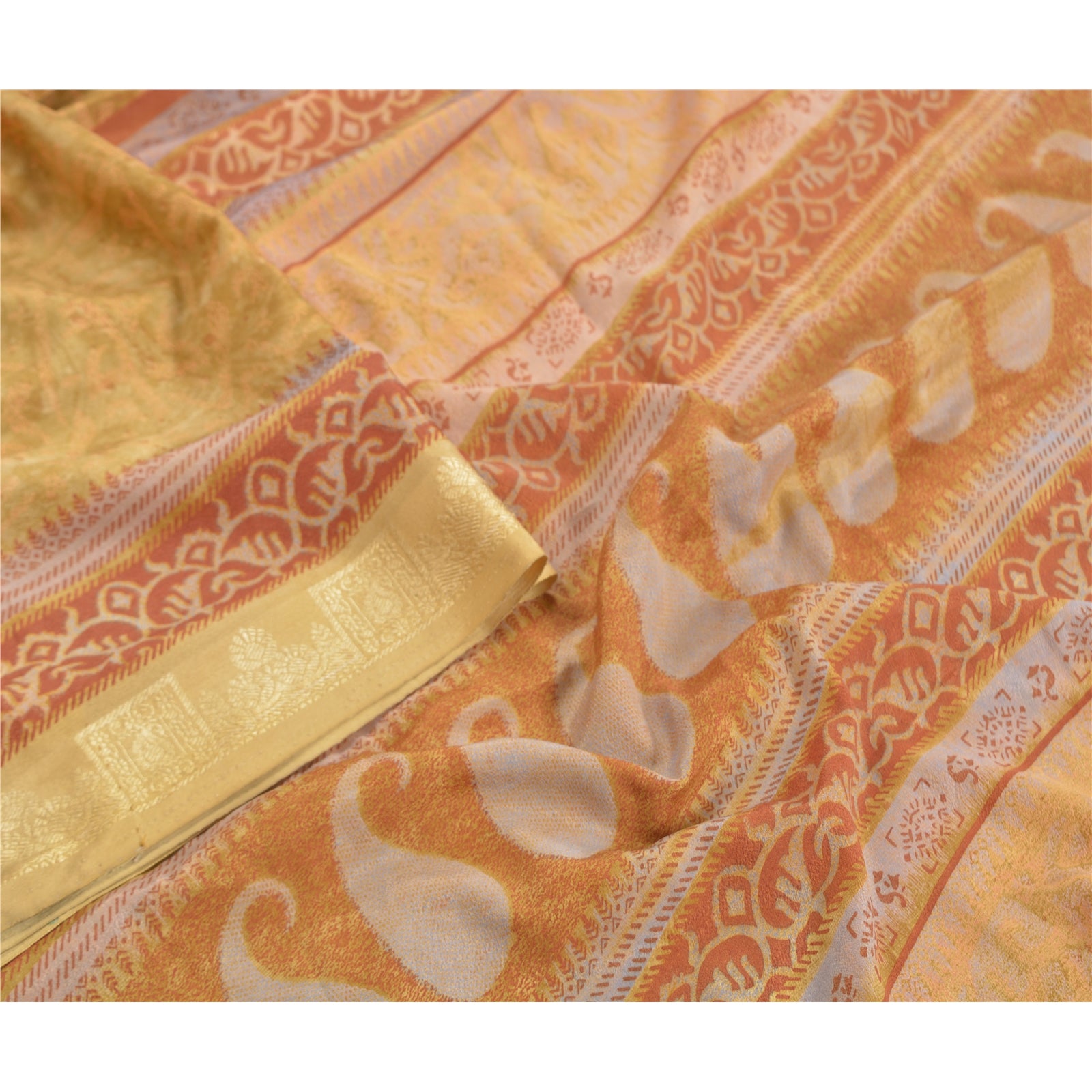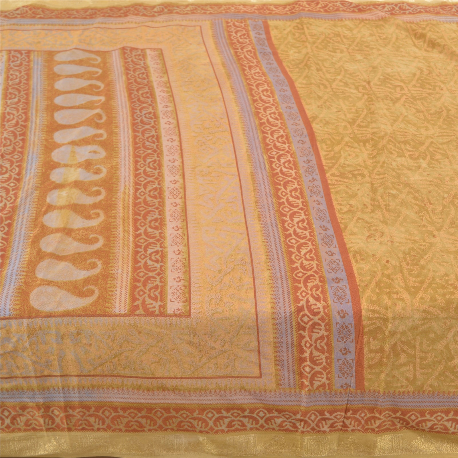 Sanskriti Vintage Green Indian Sarees Moss Crepe Printed Sari Soft Craft Sustainable Fabric