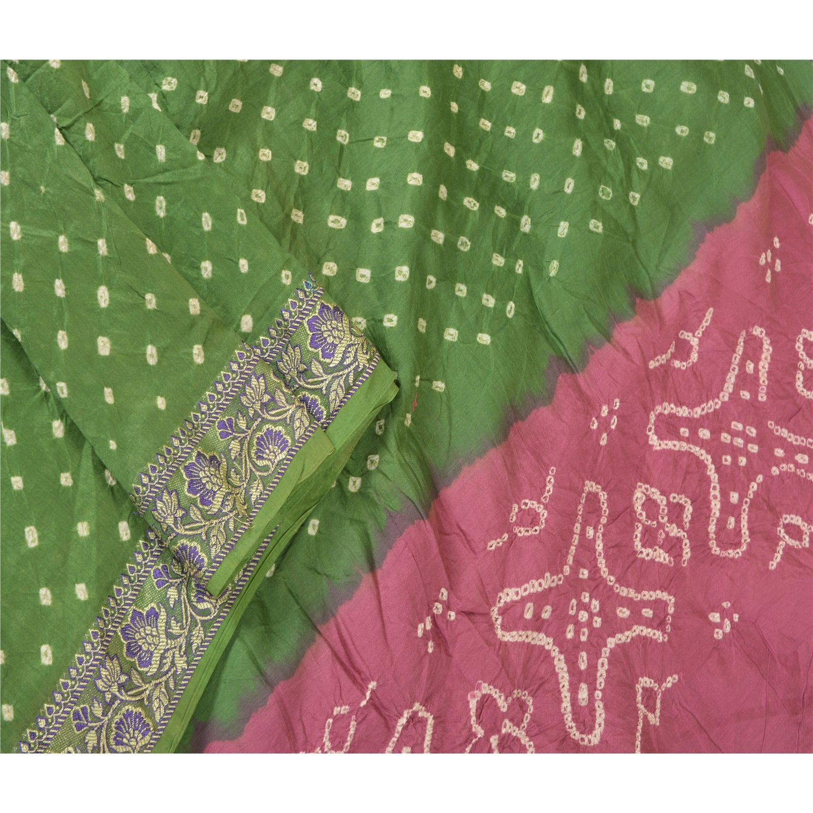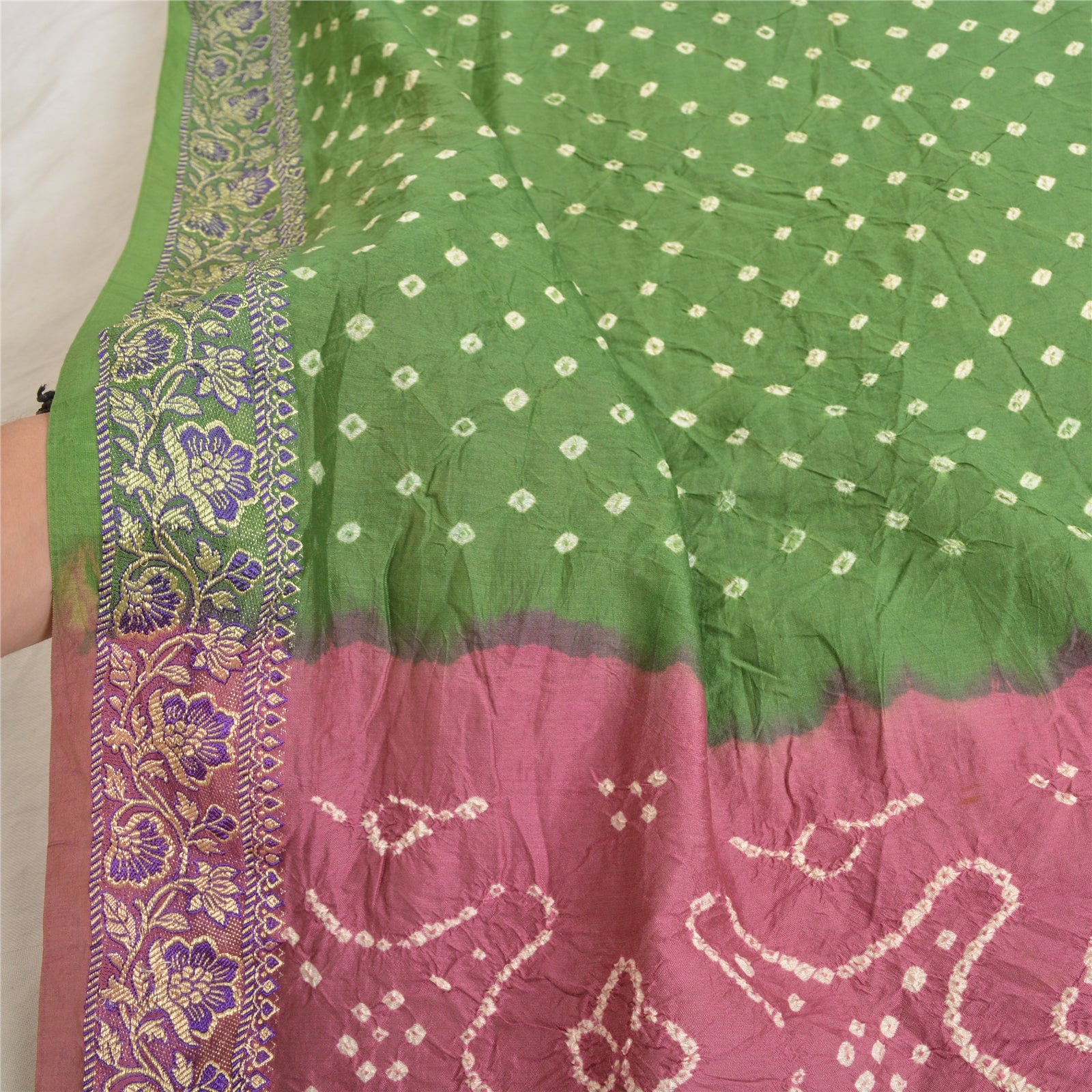Sanskriti Vintage Green/Mauve Long Dupatta Stole Pure Silk Woven Bandhani Hijab