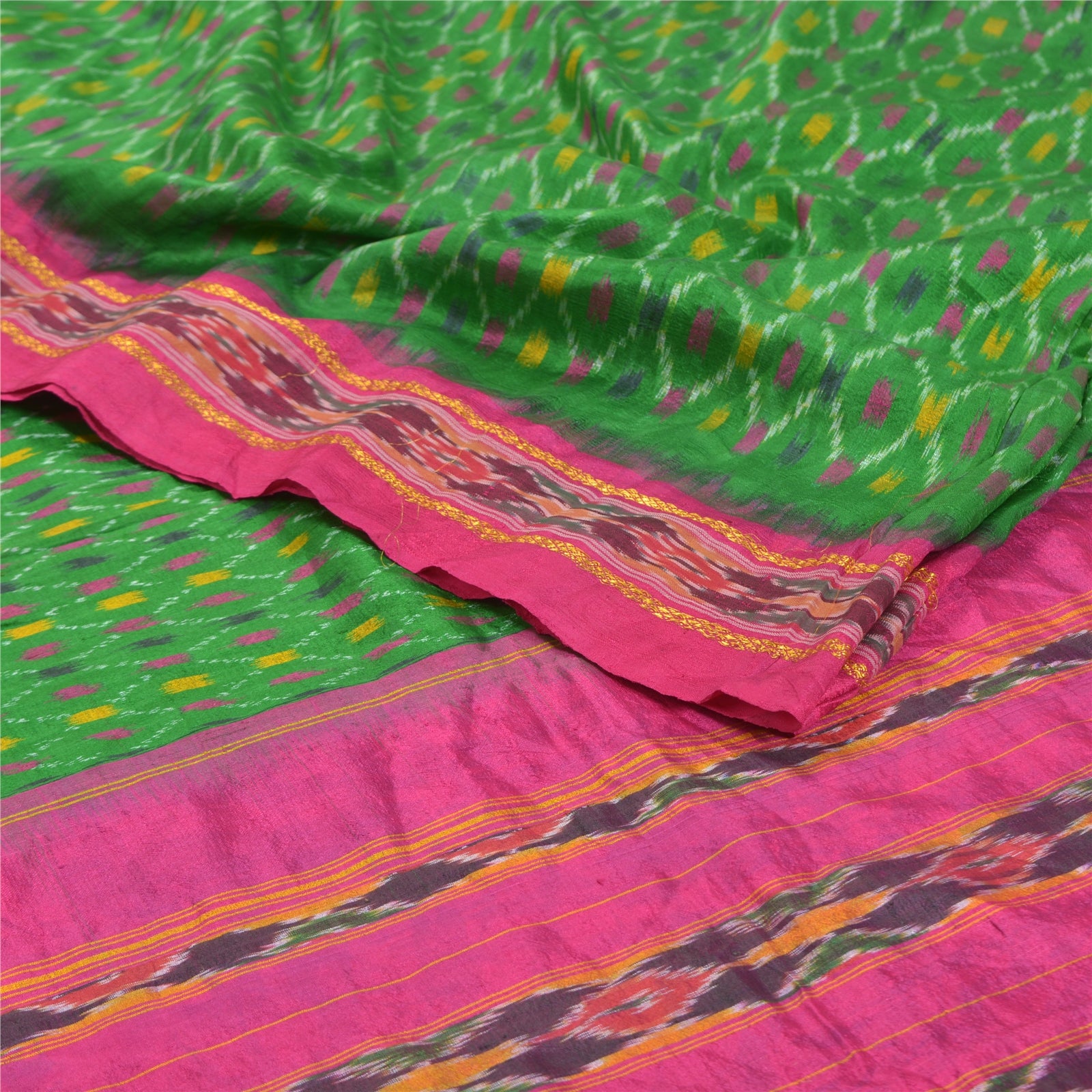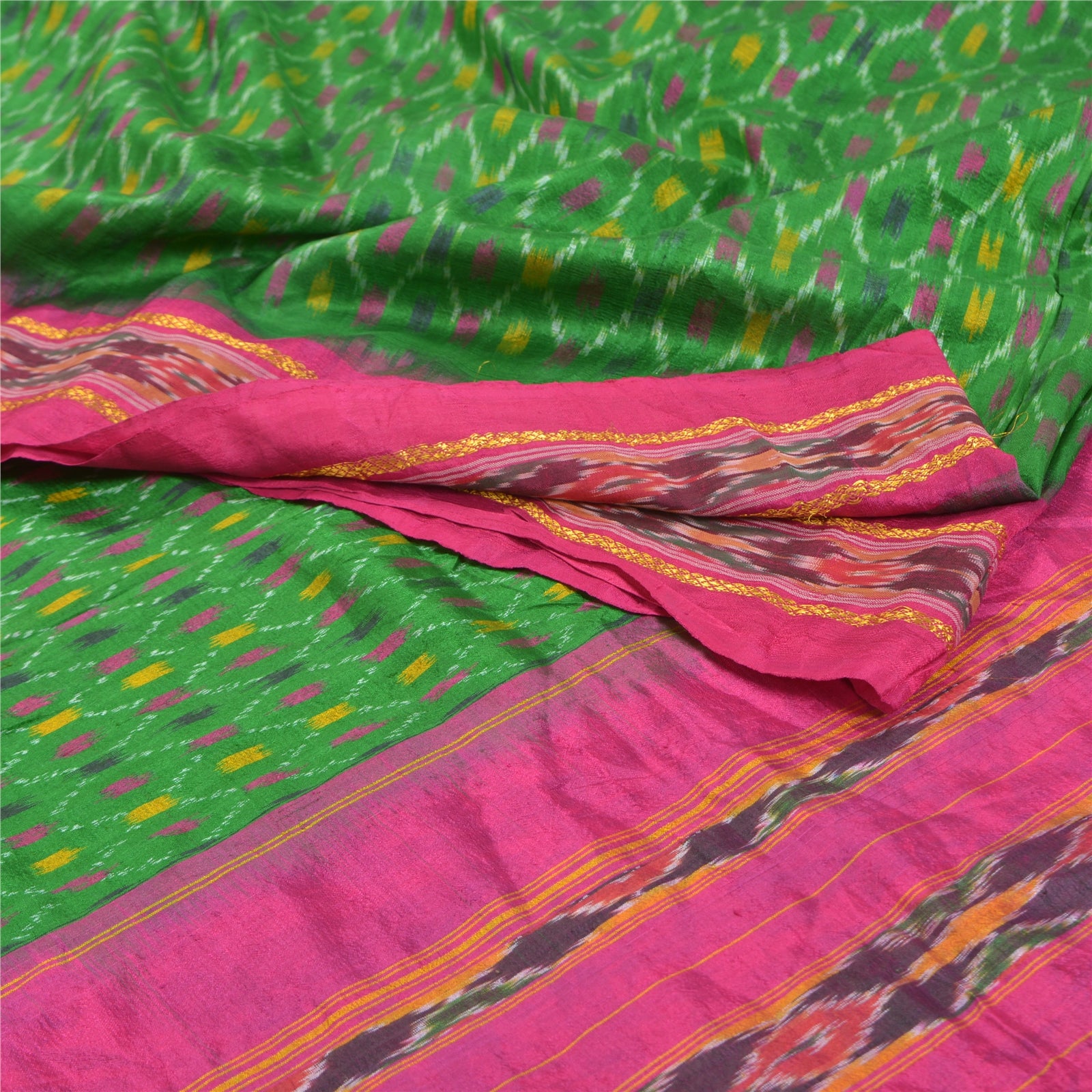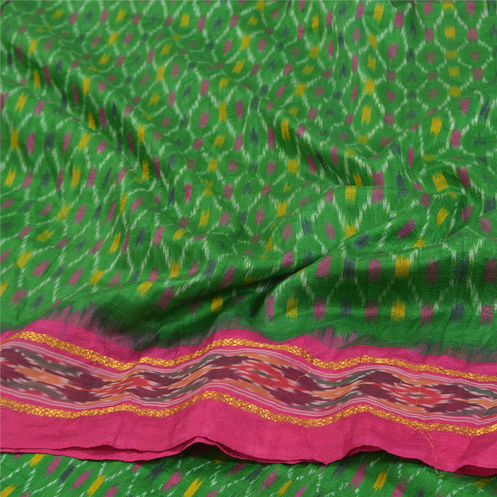 Sanskriti Vintage Green Pochampally Hand Woven Ikat Sarees Pure Silk Sari Sustainable Fabric