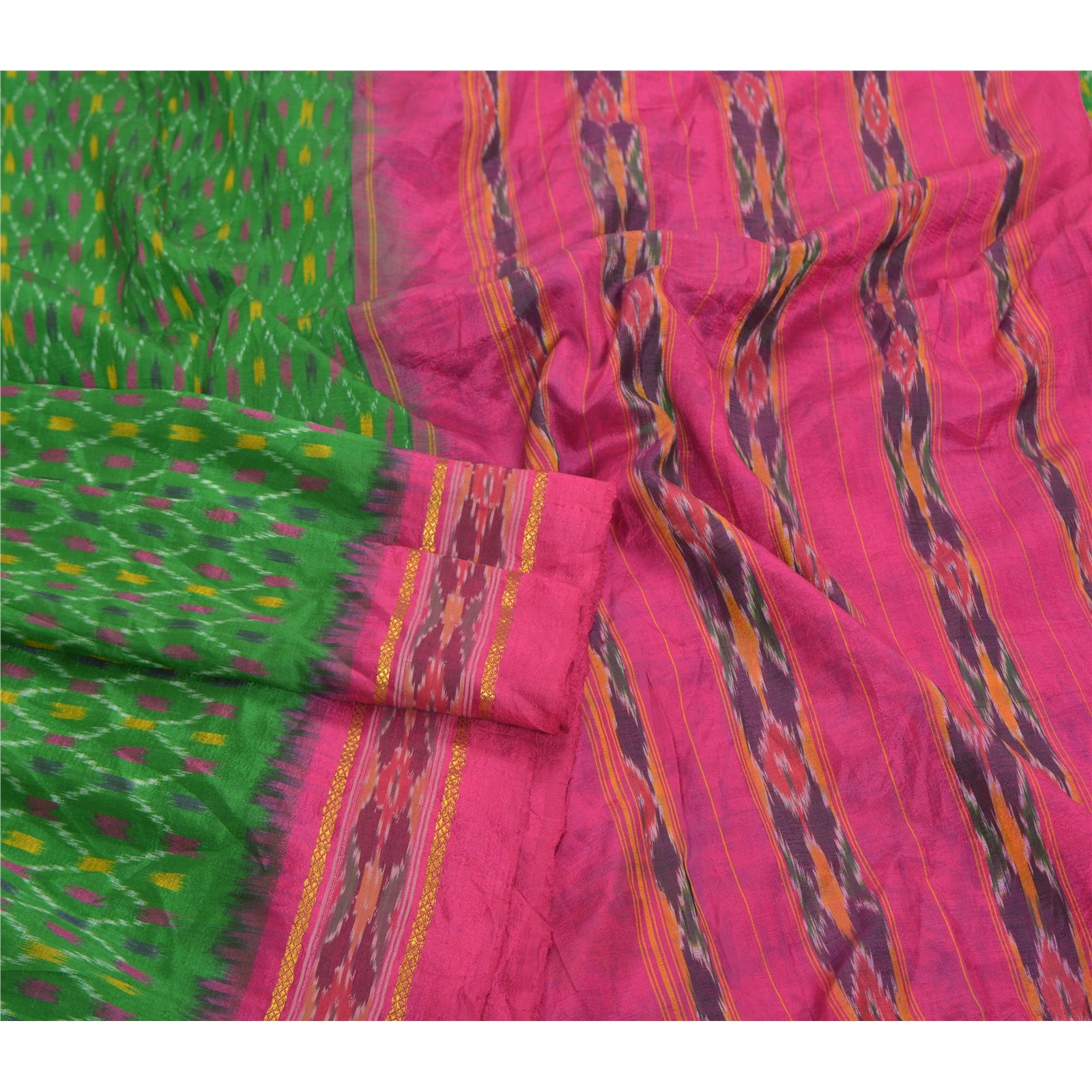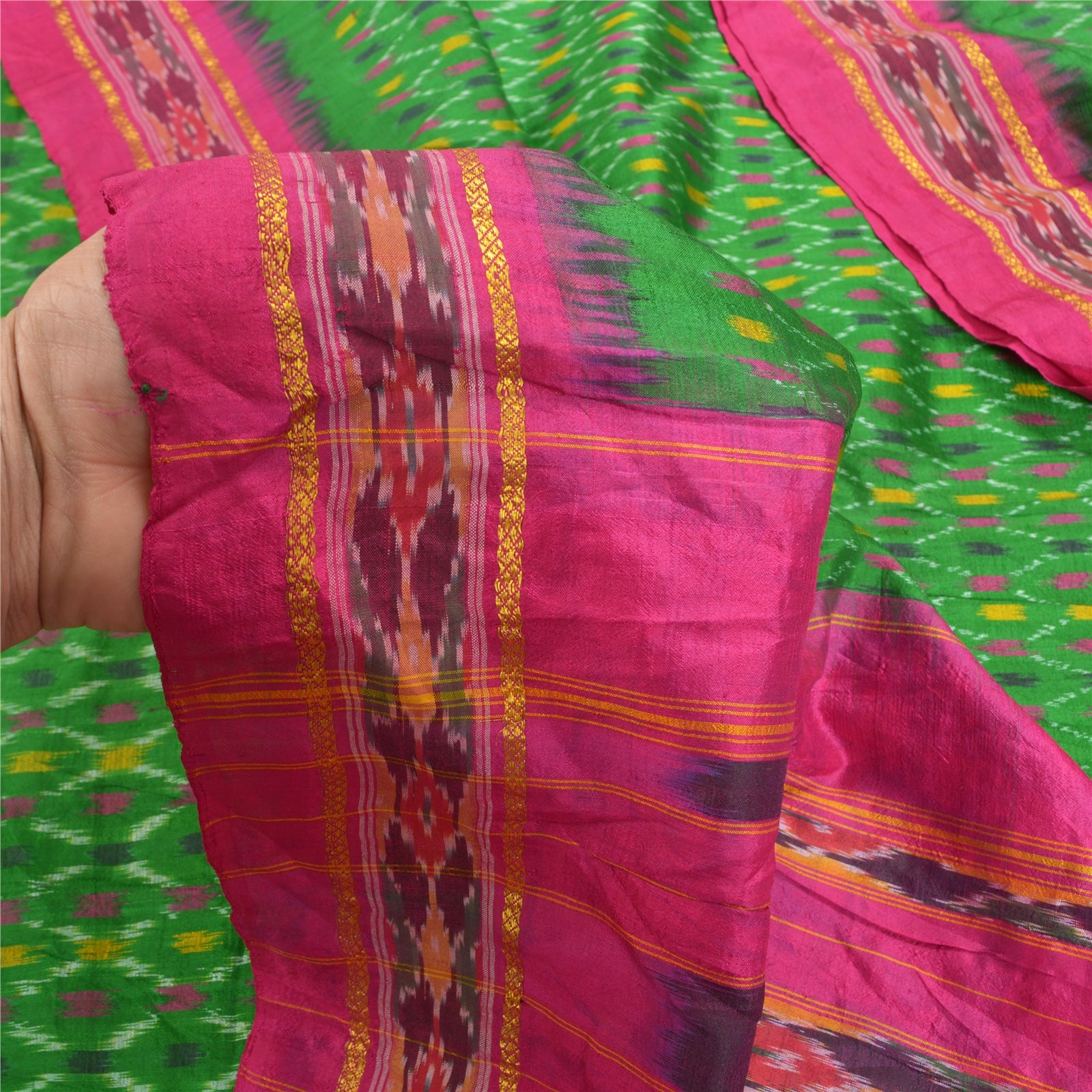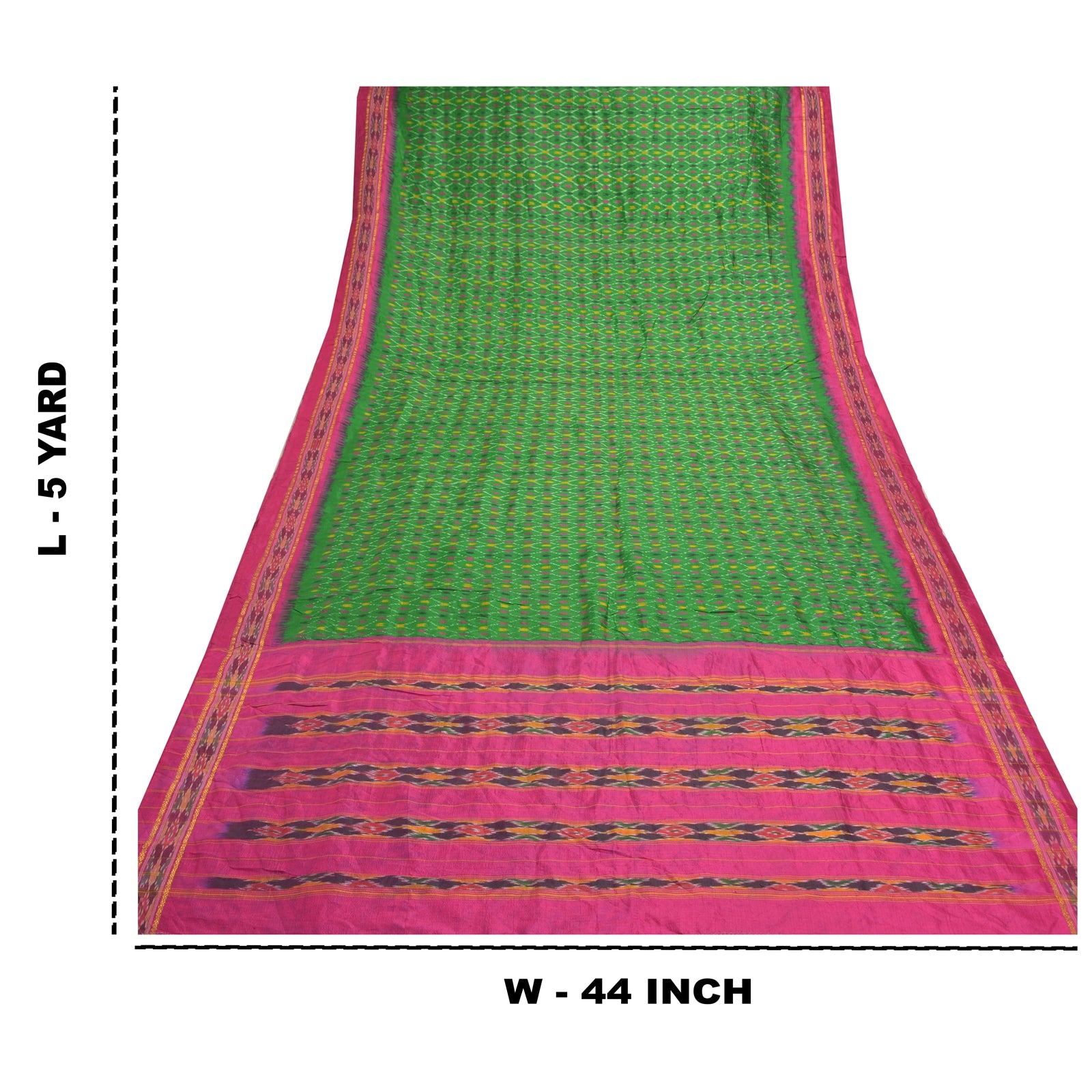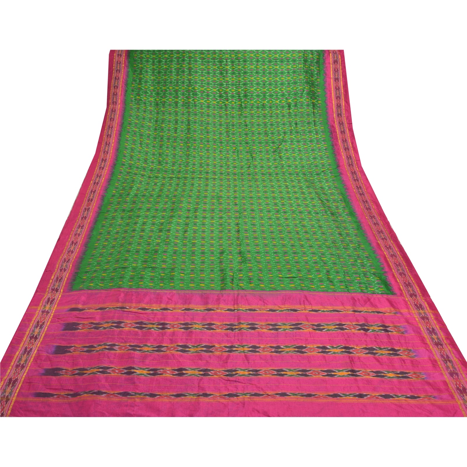 Sanskriti Vintage Green Pochampally Hand Woven Ikat Sarees Pure Silk Sari Sustainable Fabric