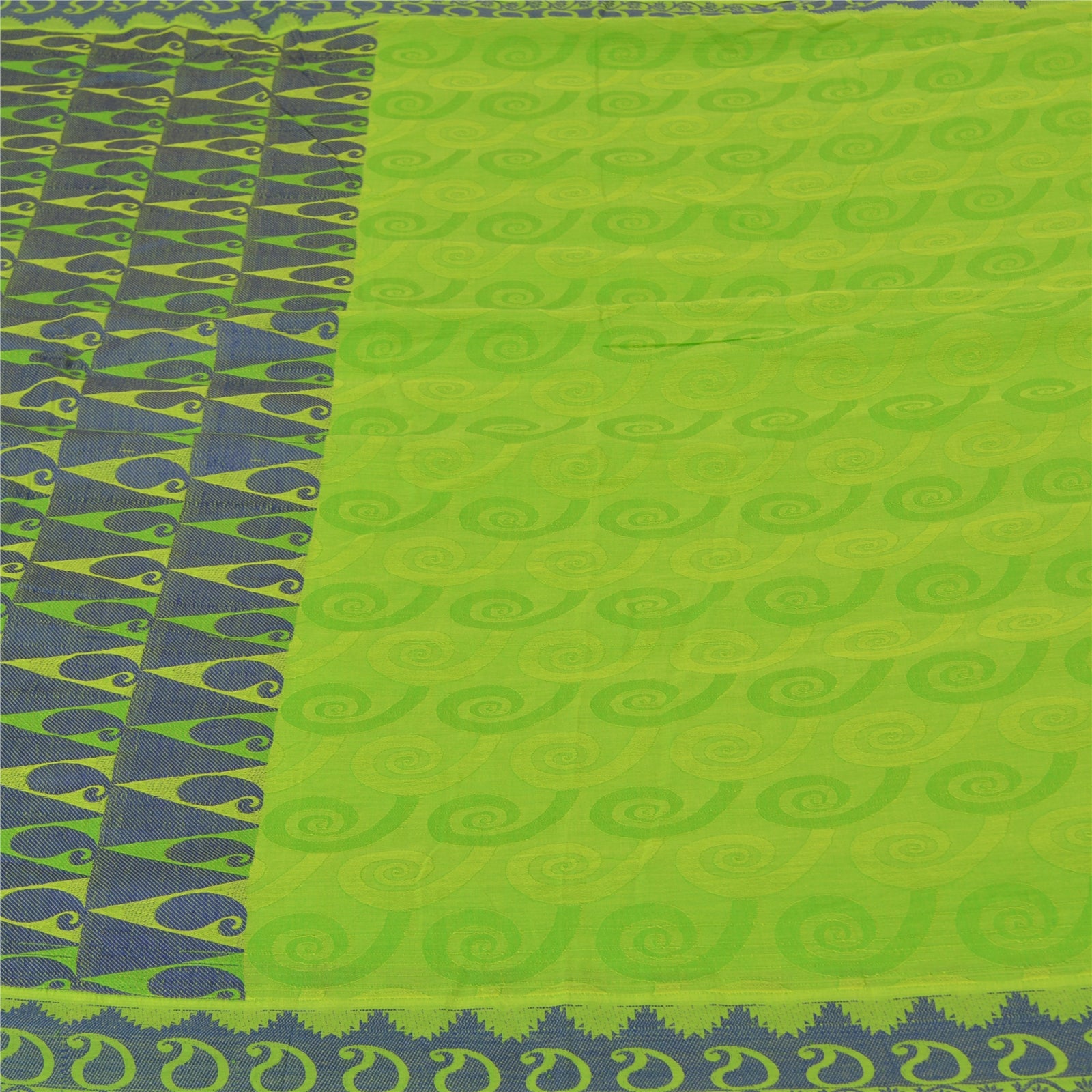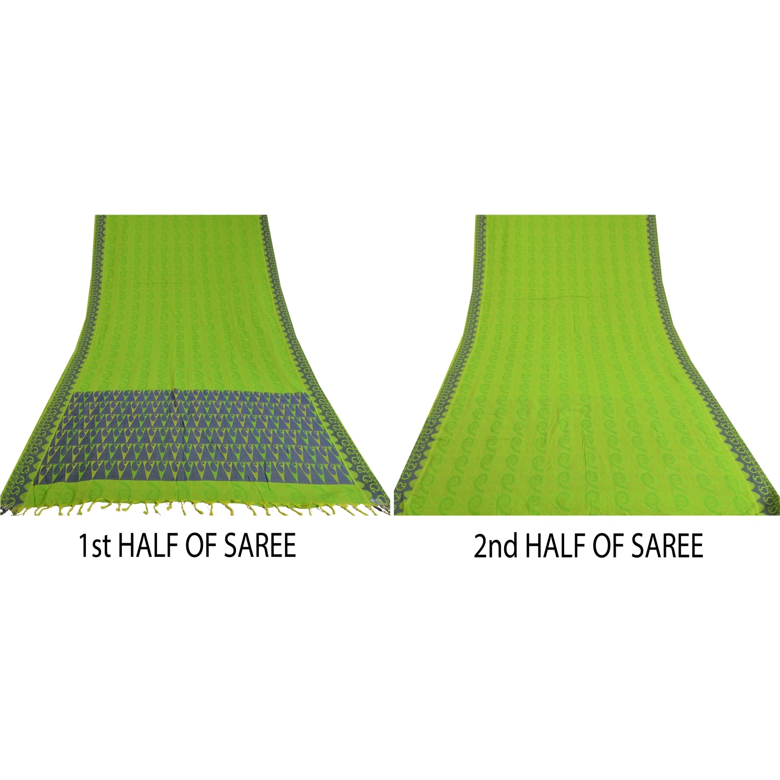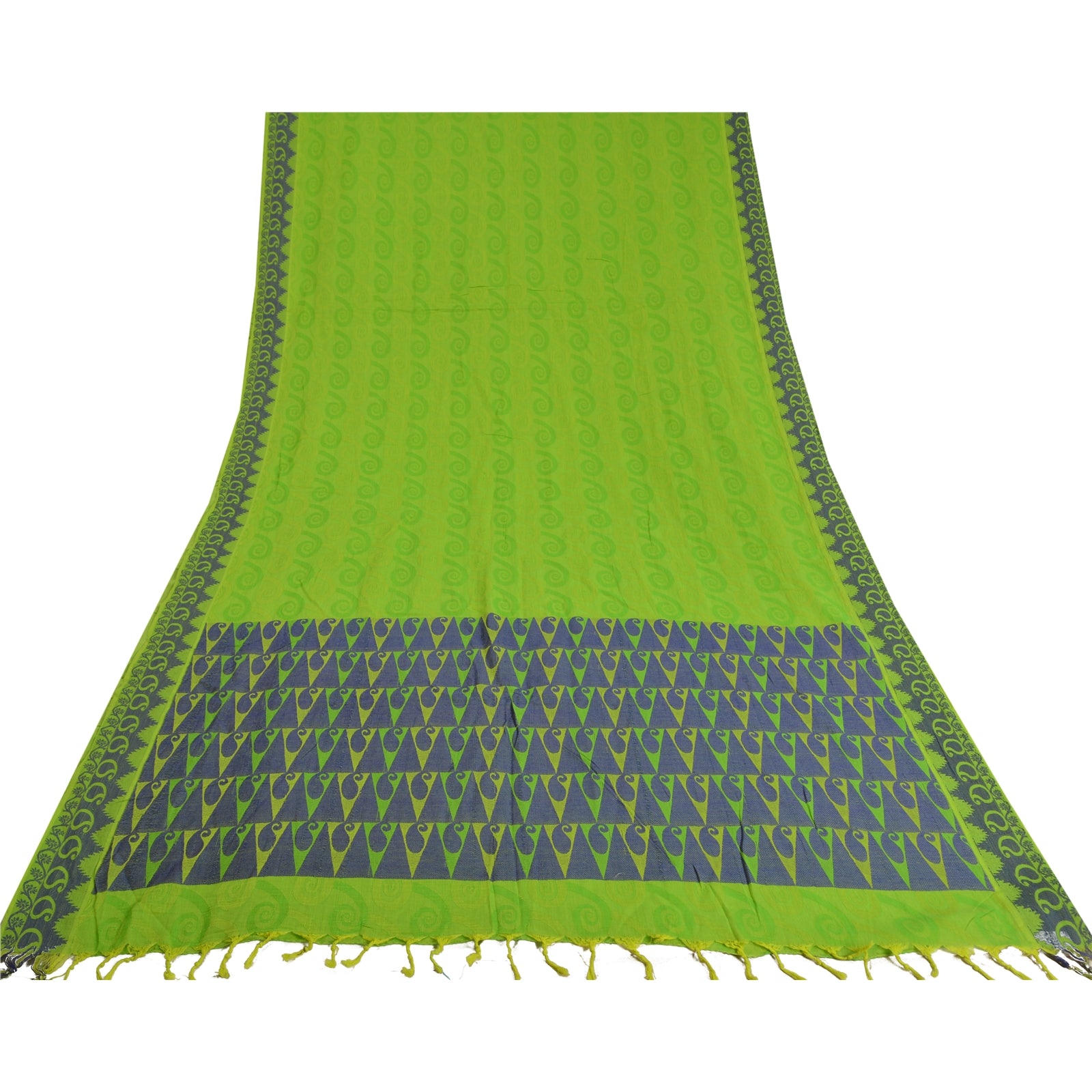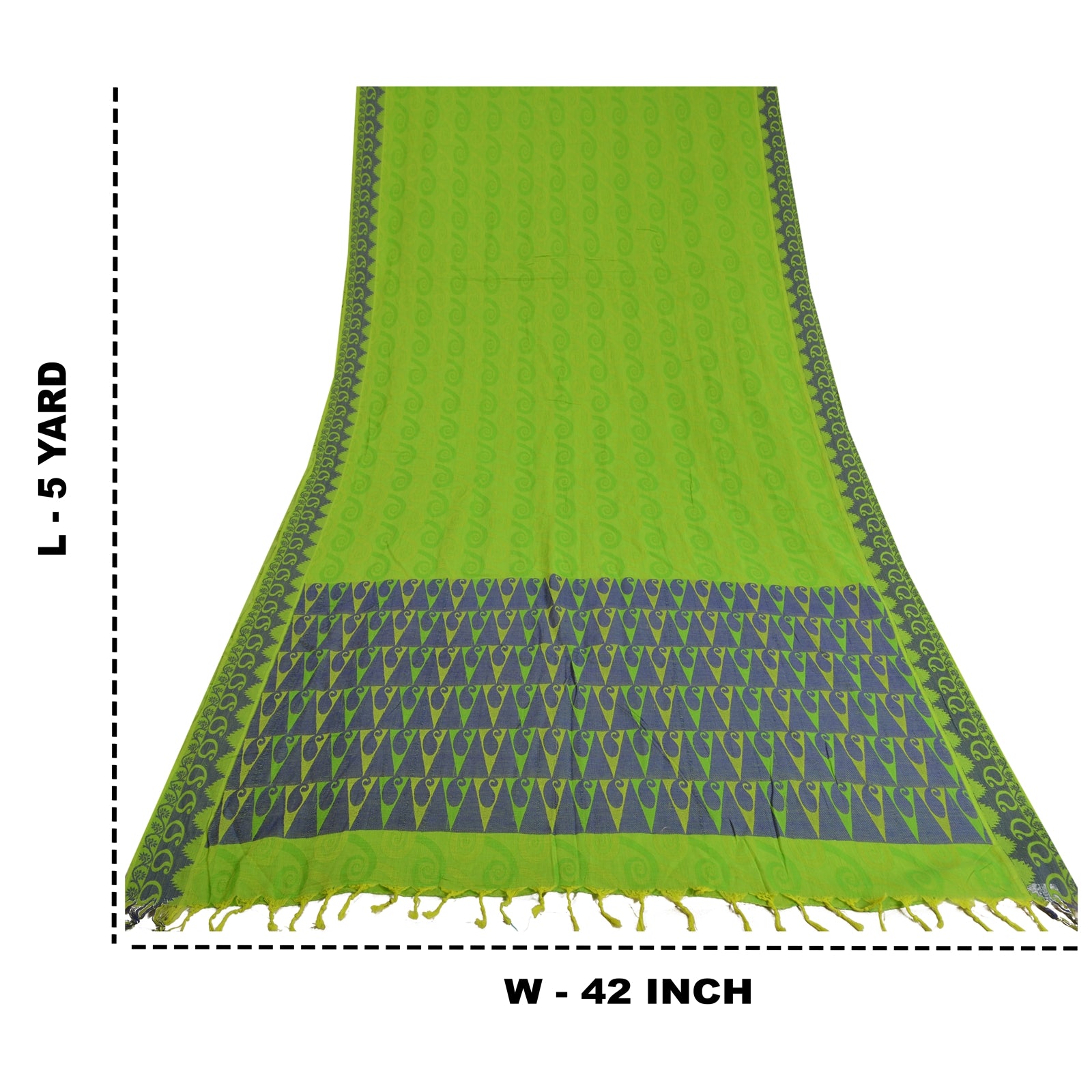 Sanskriti Vintage Green Sarees 100% Pure Cotton Woven Premium Sari Craft Sustainable Fabric