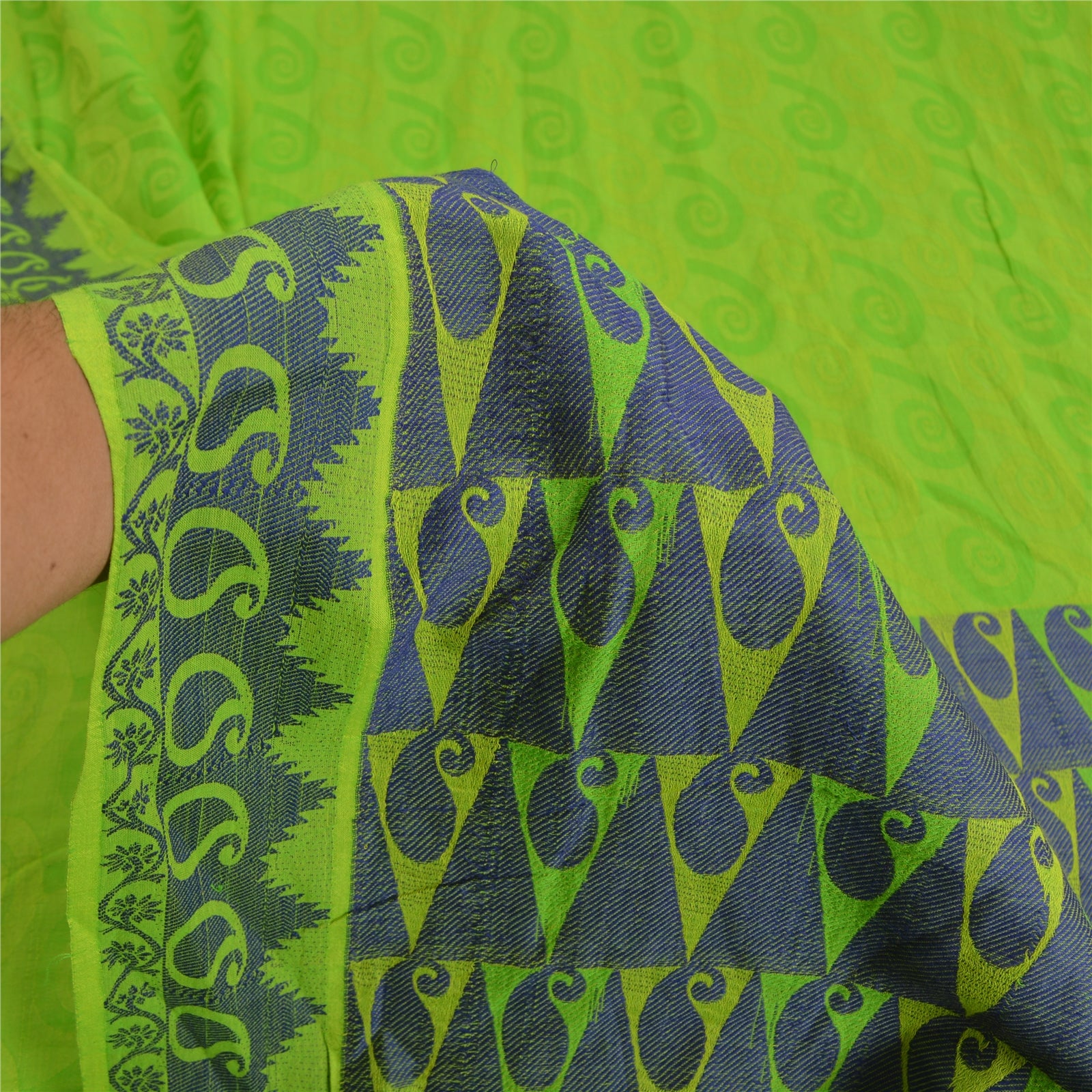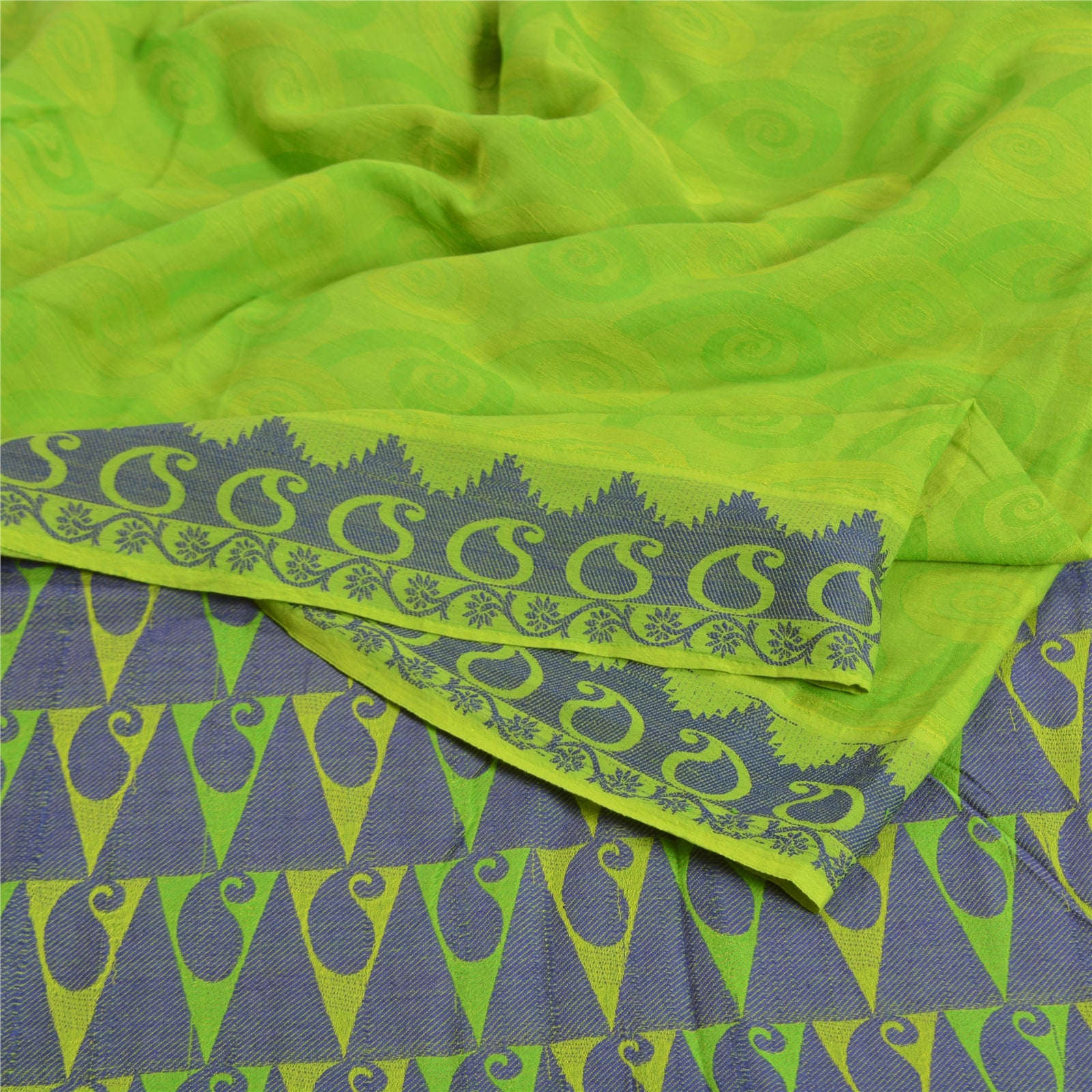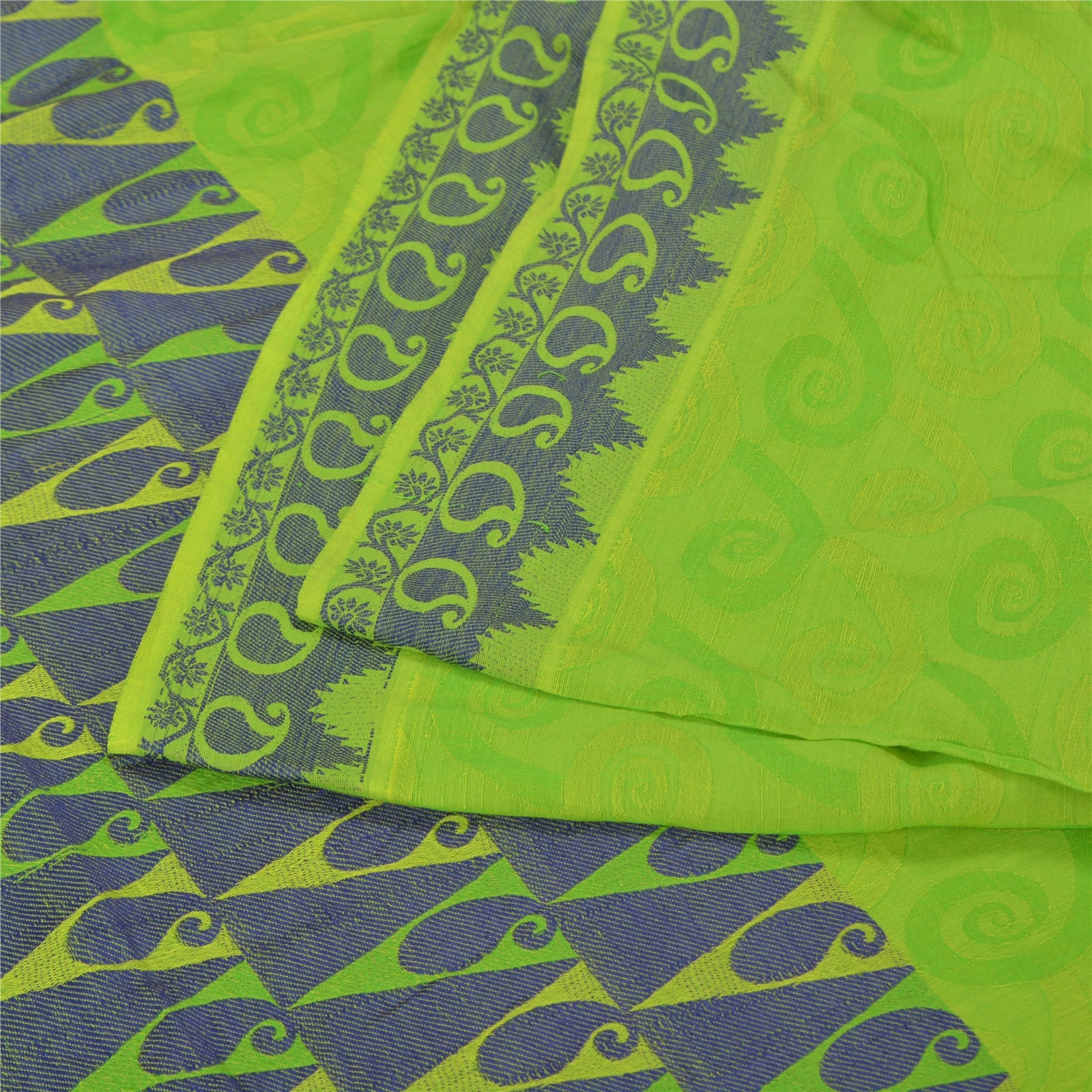 'THE ITEM COLOR OR SHADE MAY BE DARKER OR LIGHTER THAN THE PICTURE.' Beautiful green colored pure cotton woven sari/Sustainable Fabric. Pallu & border has blue/green woven thread work with paisley & geometric pattern. Also you can see matching fringes on pallu. The center of the saree has similar woven pattern. This saree can be used for various crafting ideas too. Use it for dress designing, as a throw, as window dressing, upholstery, table linen and much more. Let your creative juices flow. 'International buyers please note: Import duties, taxes, and charges are not included in the item price or postage cost. These charges are the buyer's responsibility. Please check with your country's customs office to determine what these additional costs will be prior to bidding or buying. Buyer will pay custom duty/tax. It is calculated and charged differently by every country. As a seller I do not have any control over it. VAT or sales tax is calculated by the platform at the time of checkout. Customs charge is payable at the time of delivery.'