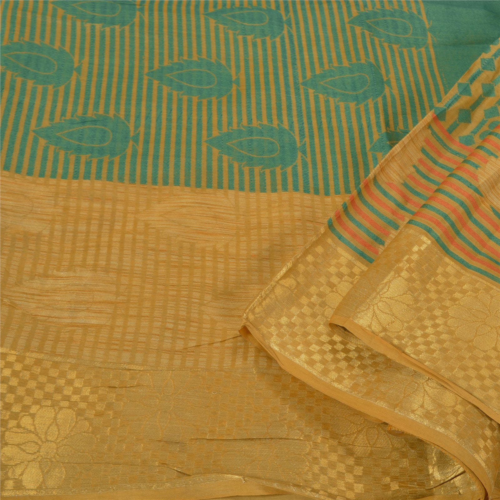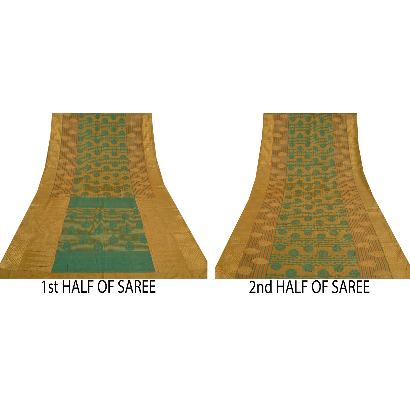 Sanskriti Vintage Green Sarees 100% Pure Silk Woven Premium Sari Craft Sustainable Fabric