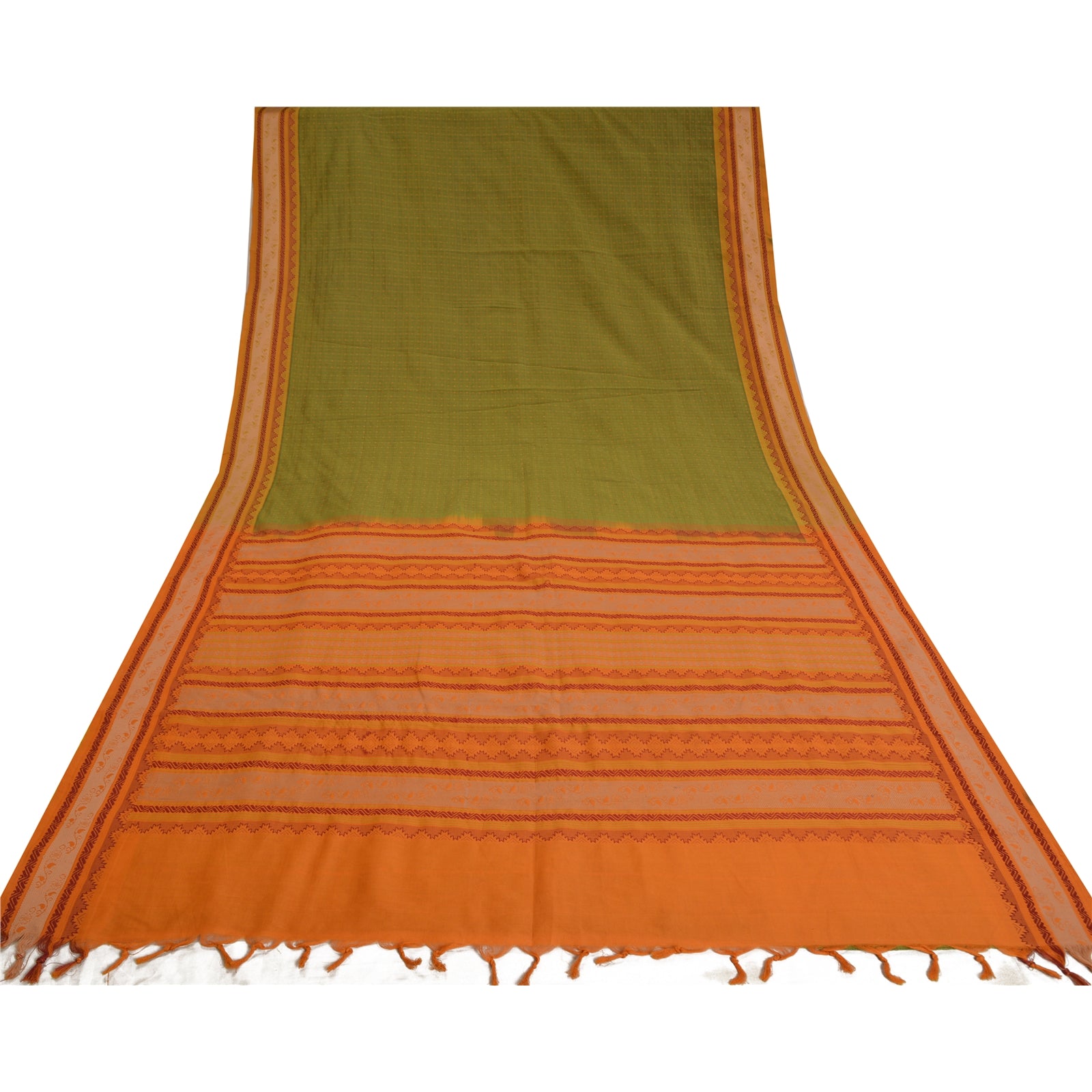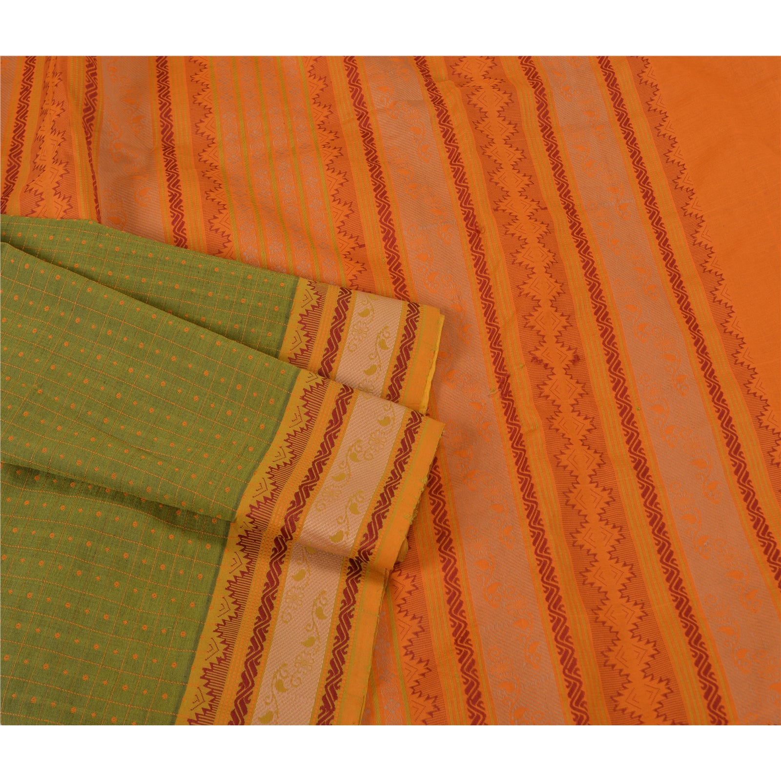Sanskriti Vintage Green Sarees Blend Cotton Premium Sari Craft 5 Yard Sustainable Fabric