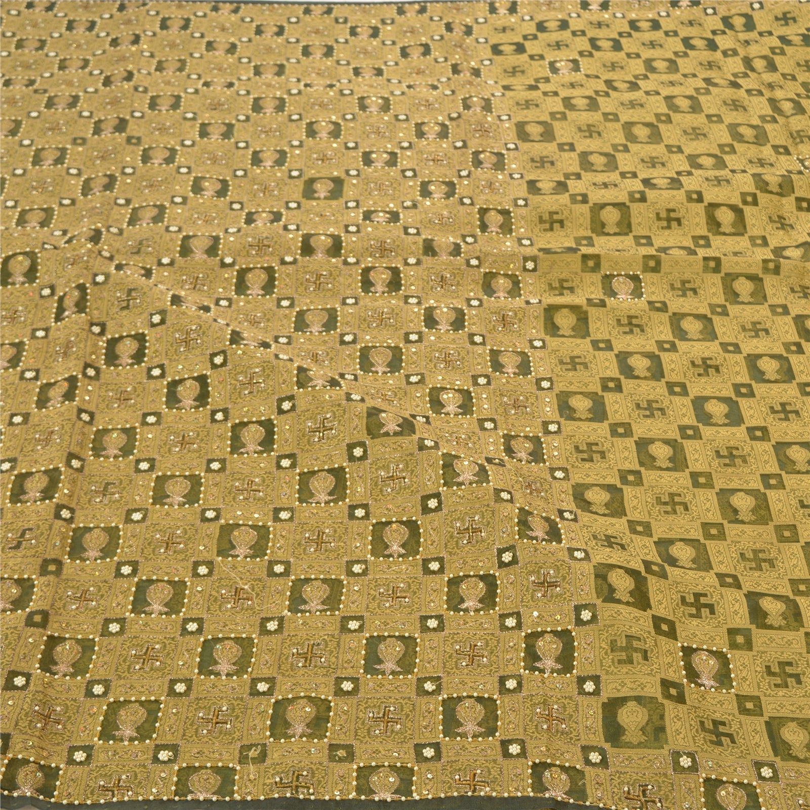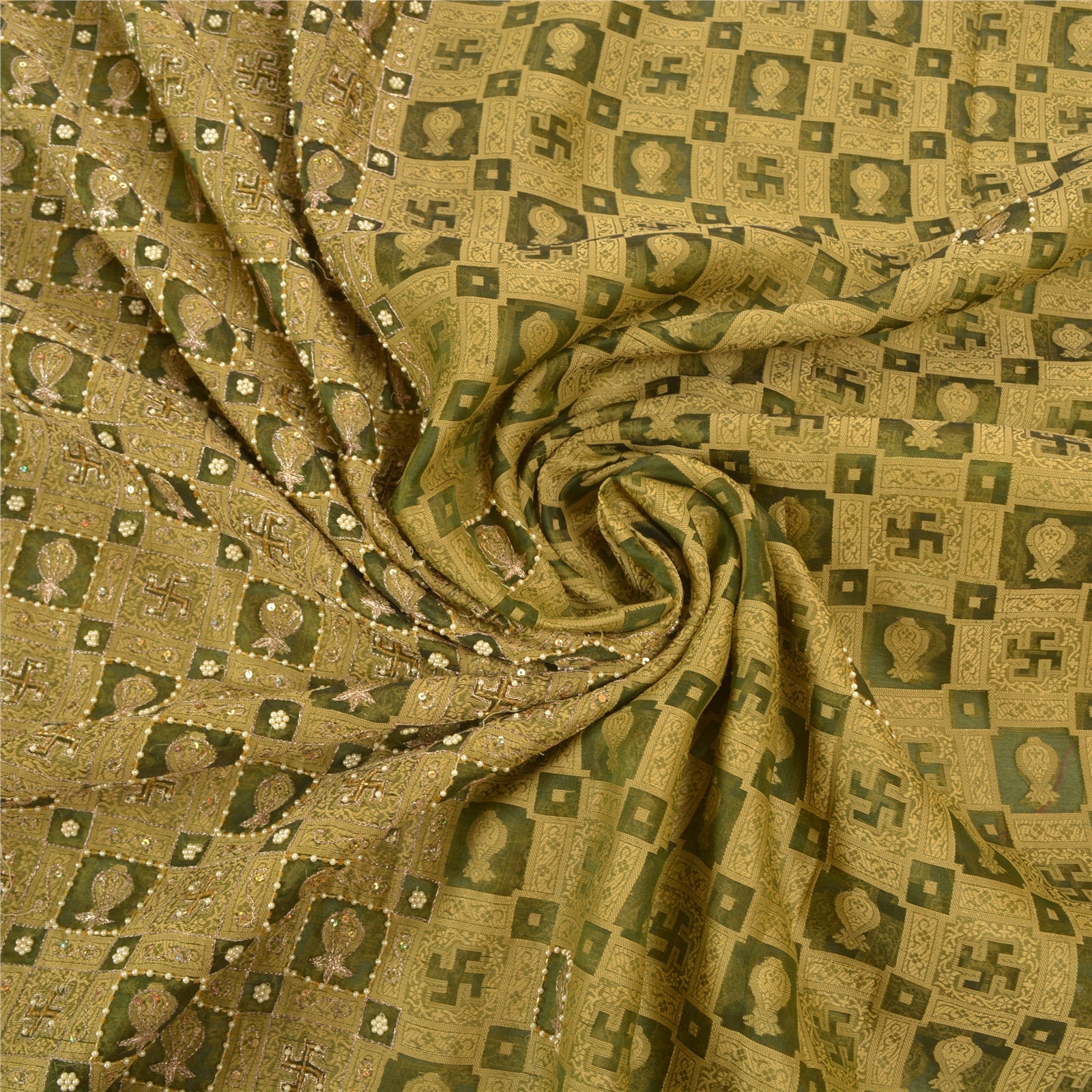 Sanskriti Vintage Green Sarees Pure Organza Silk Beaded Premium Sari Sustainable Fabric