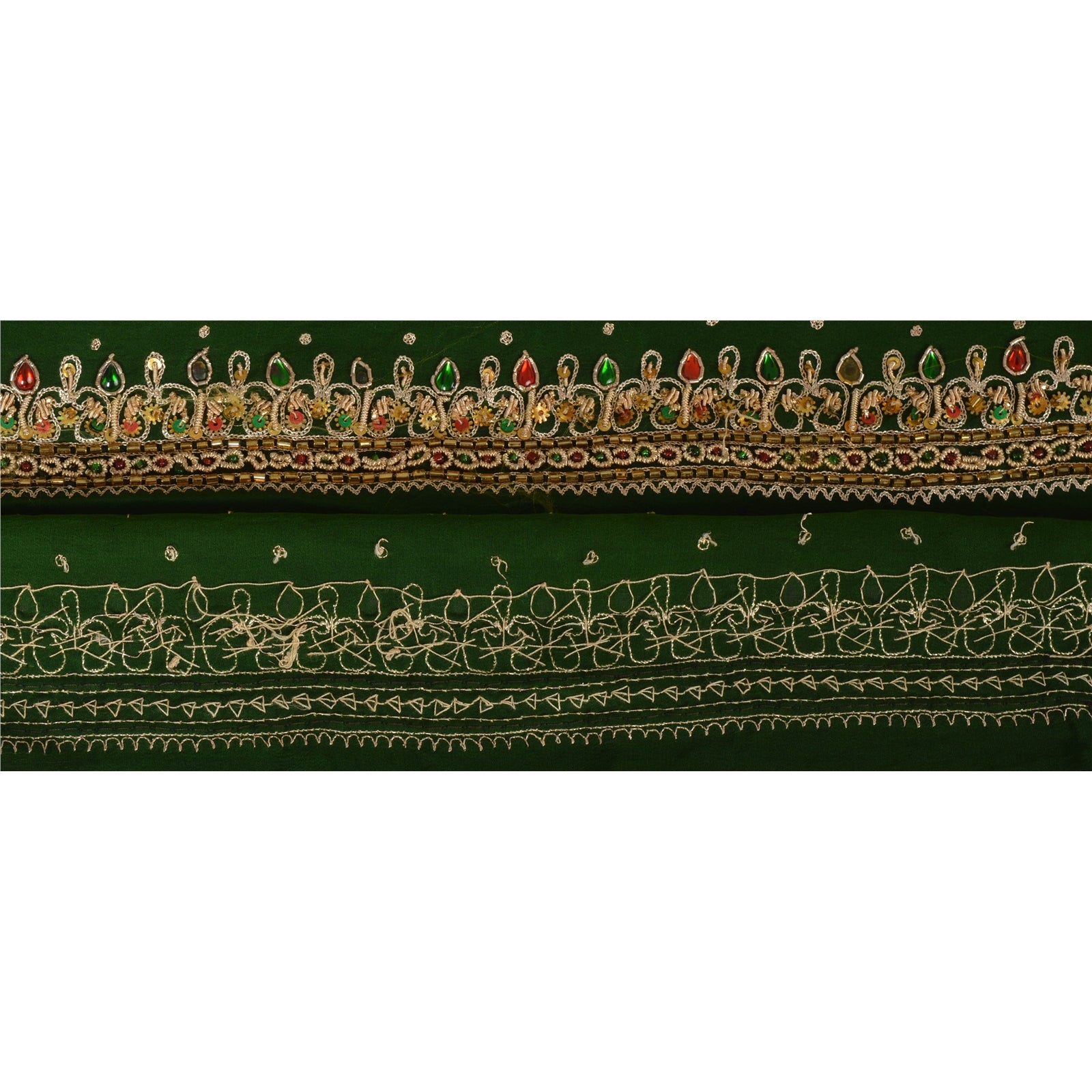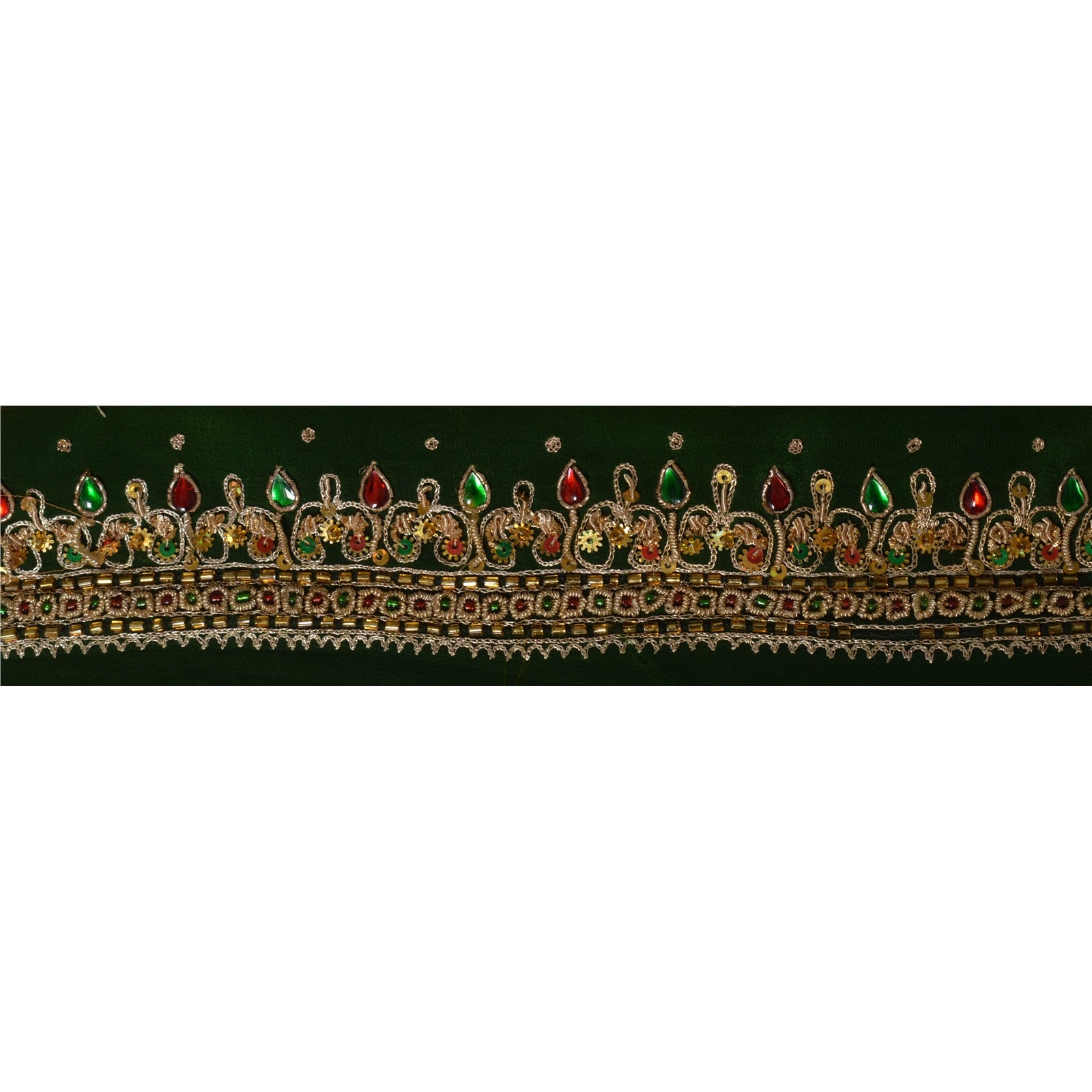 Sanskriti Vintage Green Sari Border Hand Beaded Craft Trim 1 Yd Kundan Lace
