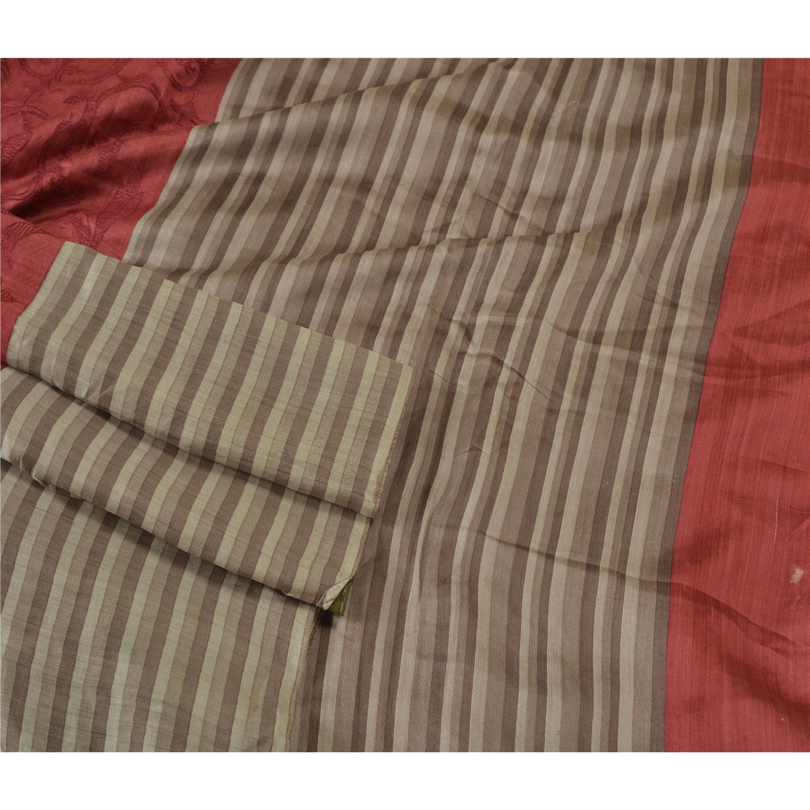 Sanskriti Vintage Grey/Dark Red Sarees Pure Silk Printed Premium Sari Sustainable Fabric