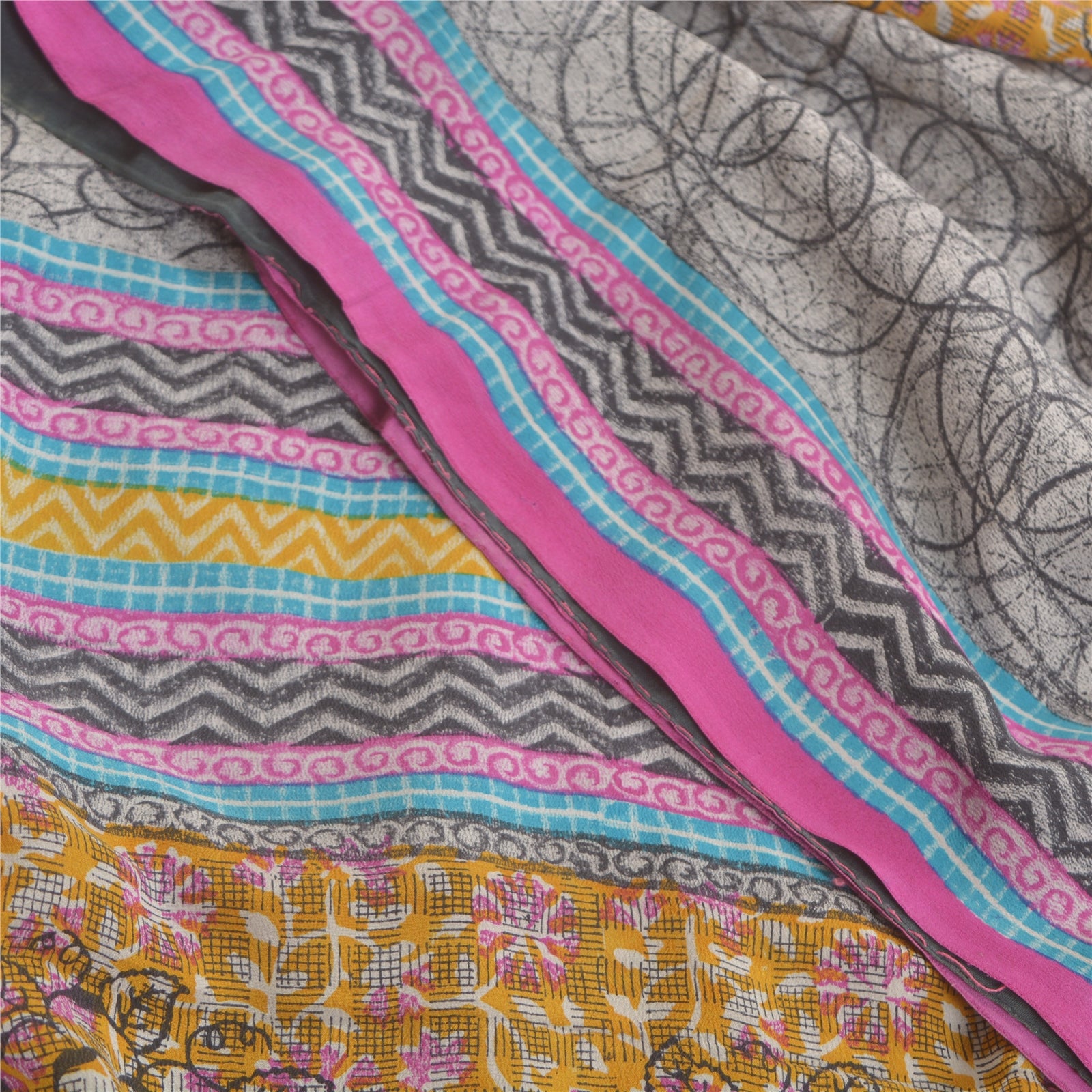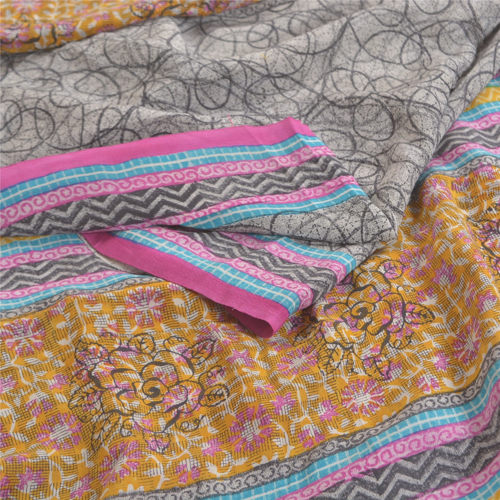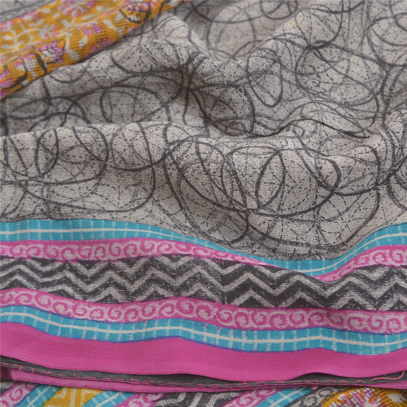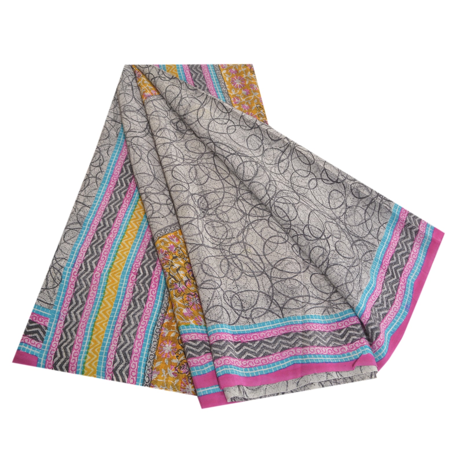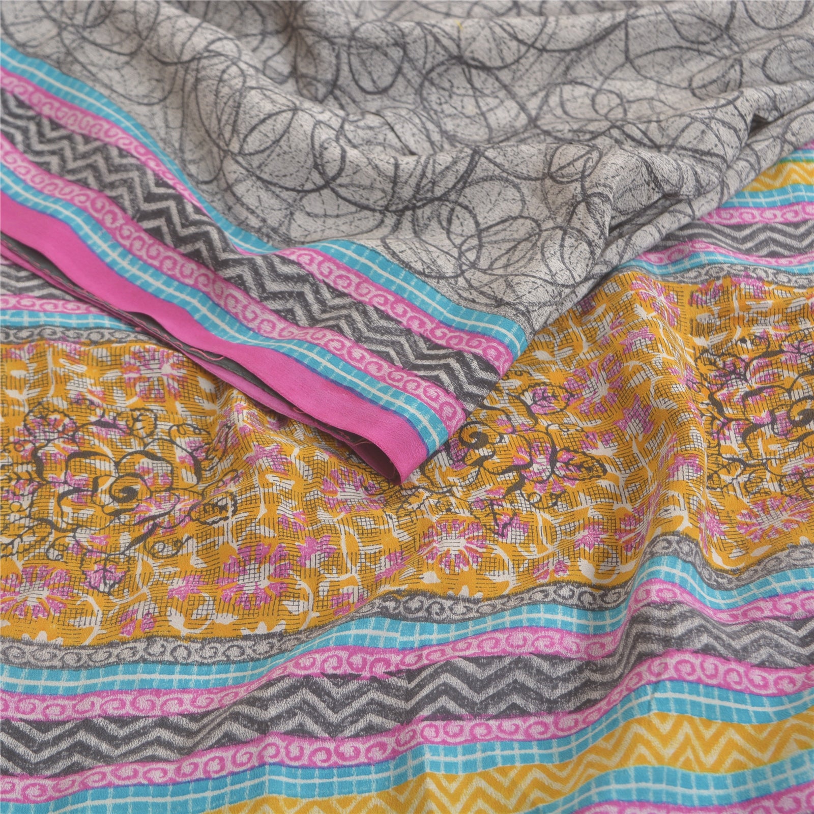 Sanskriti Vintage Grey Sarees 100% Pure Crepe Silk Printed Sari Craft Sustainable Fabric