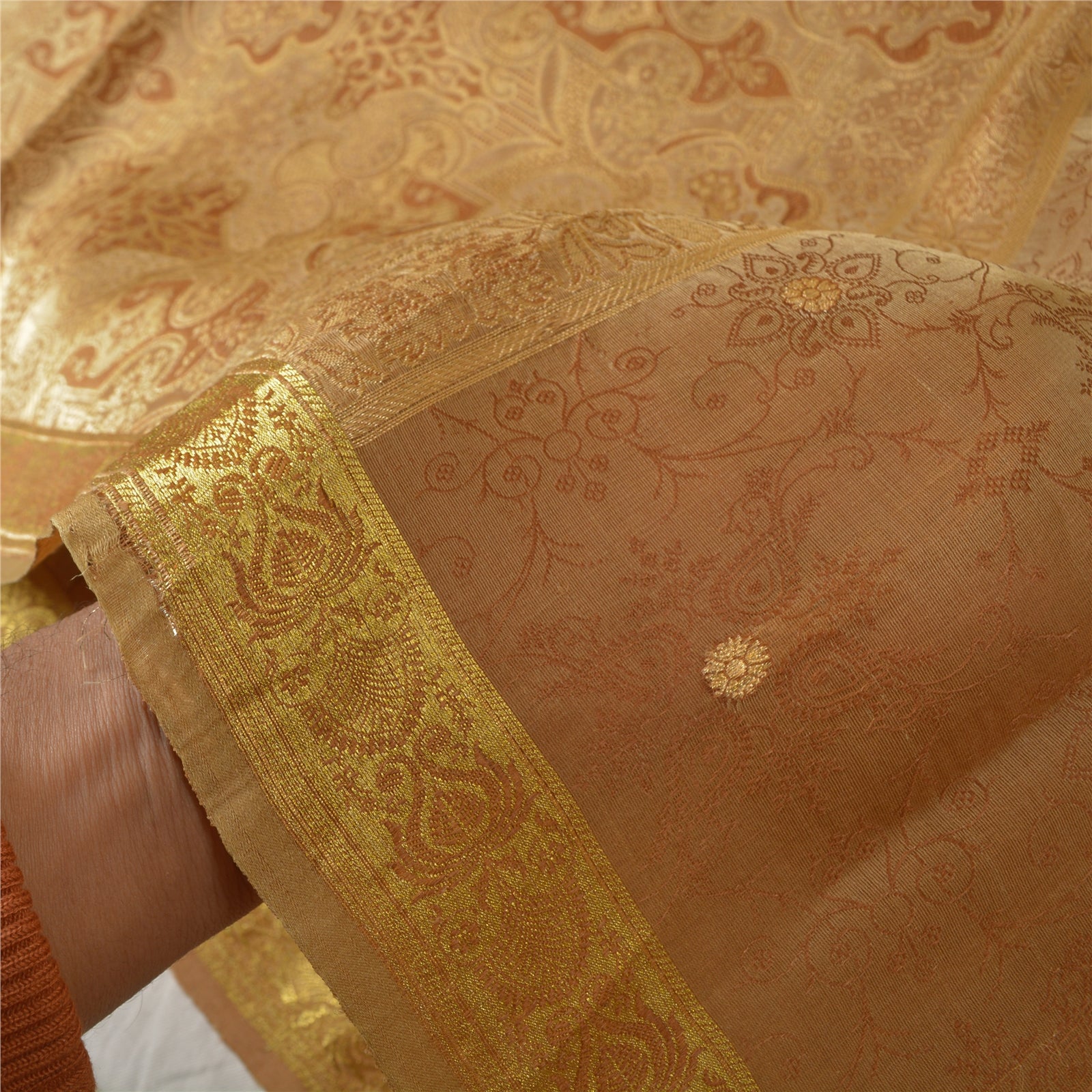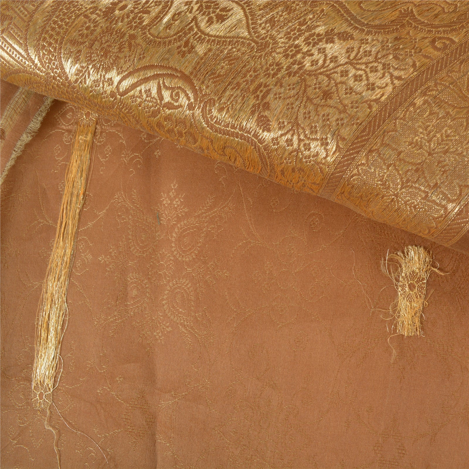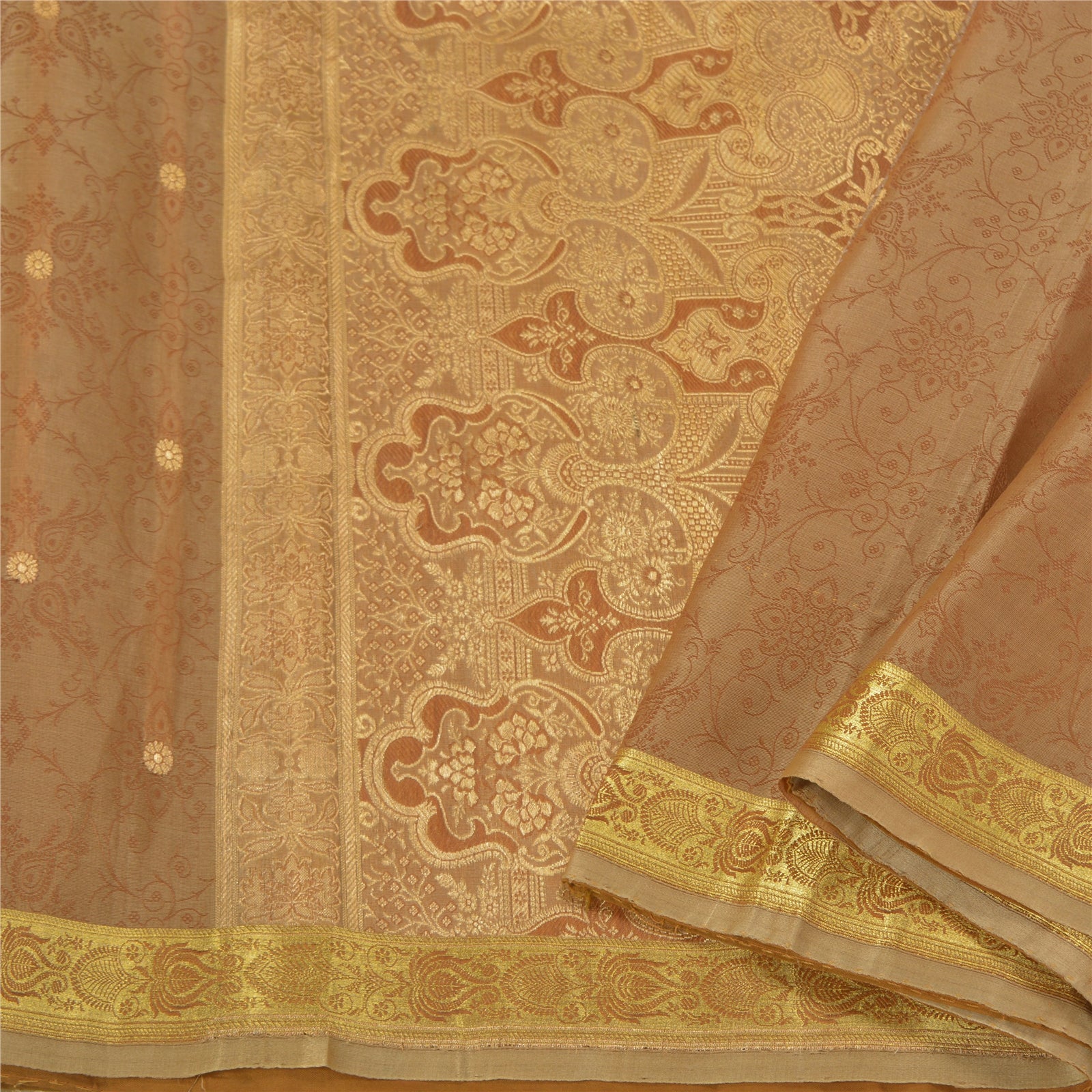 Sanskriti Vintage Heavy Brown Sarees Pure Organza Silk Woven Brocade Sari Sustainable Fabric