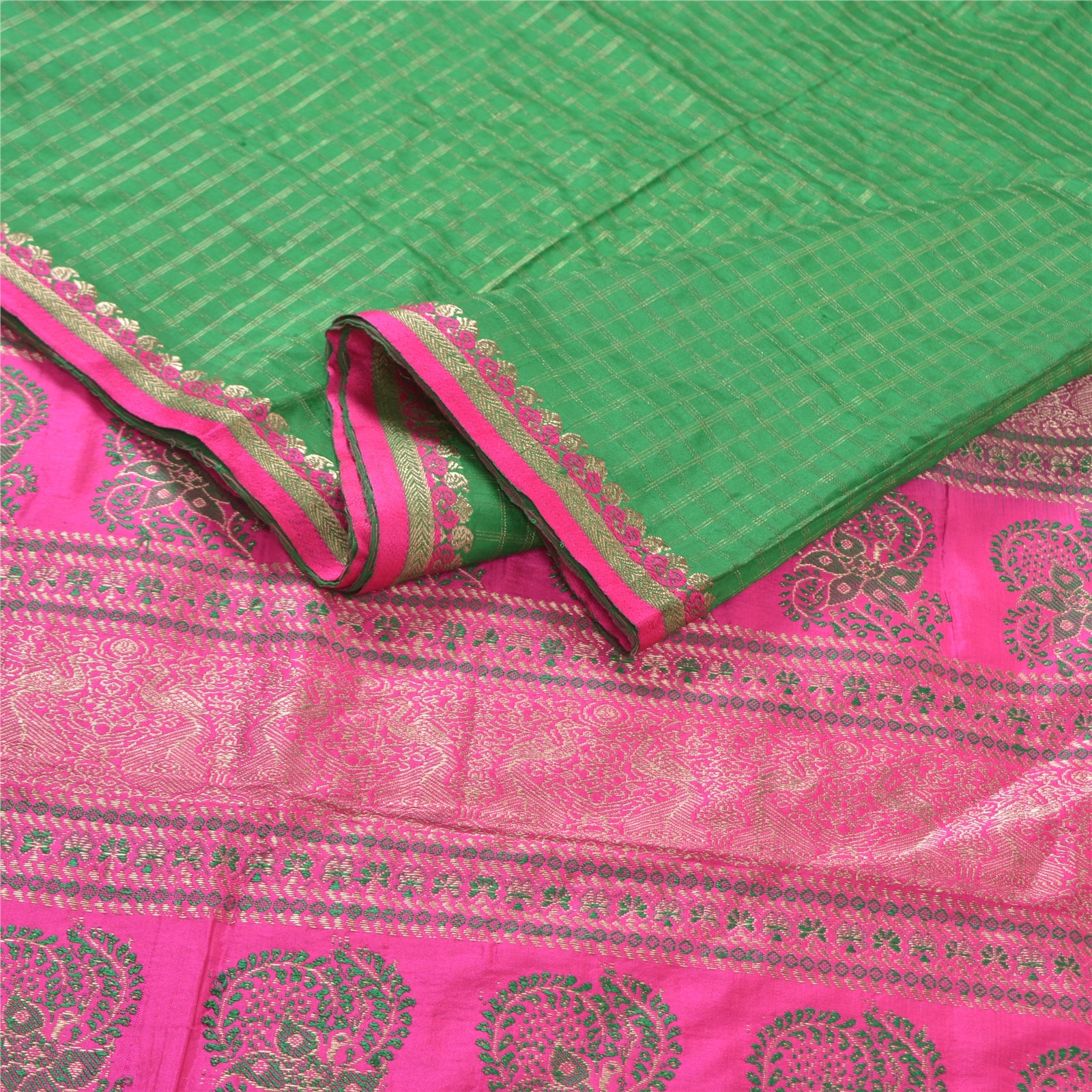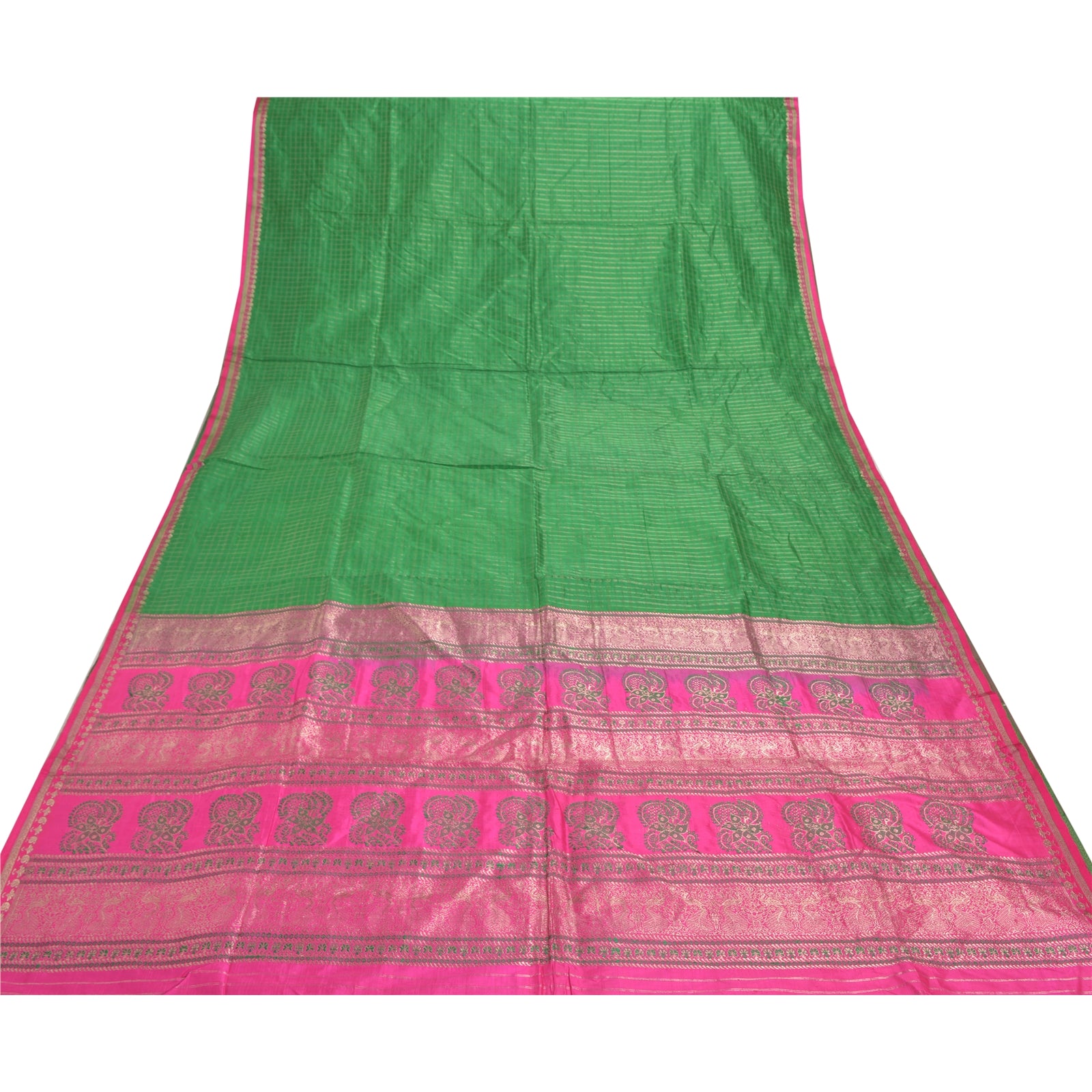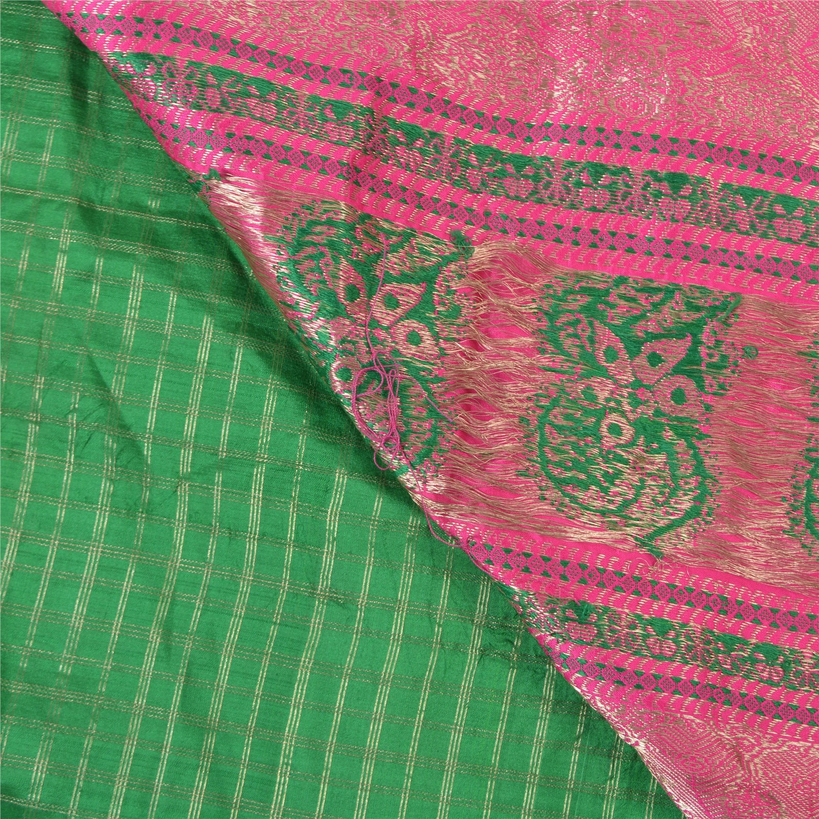 Sanskriti Vintage Heavy Green Sari 100% Pure Silk Woven Brocade Sarees Sustainable Fabric