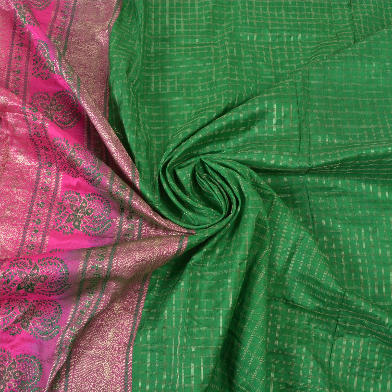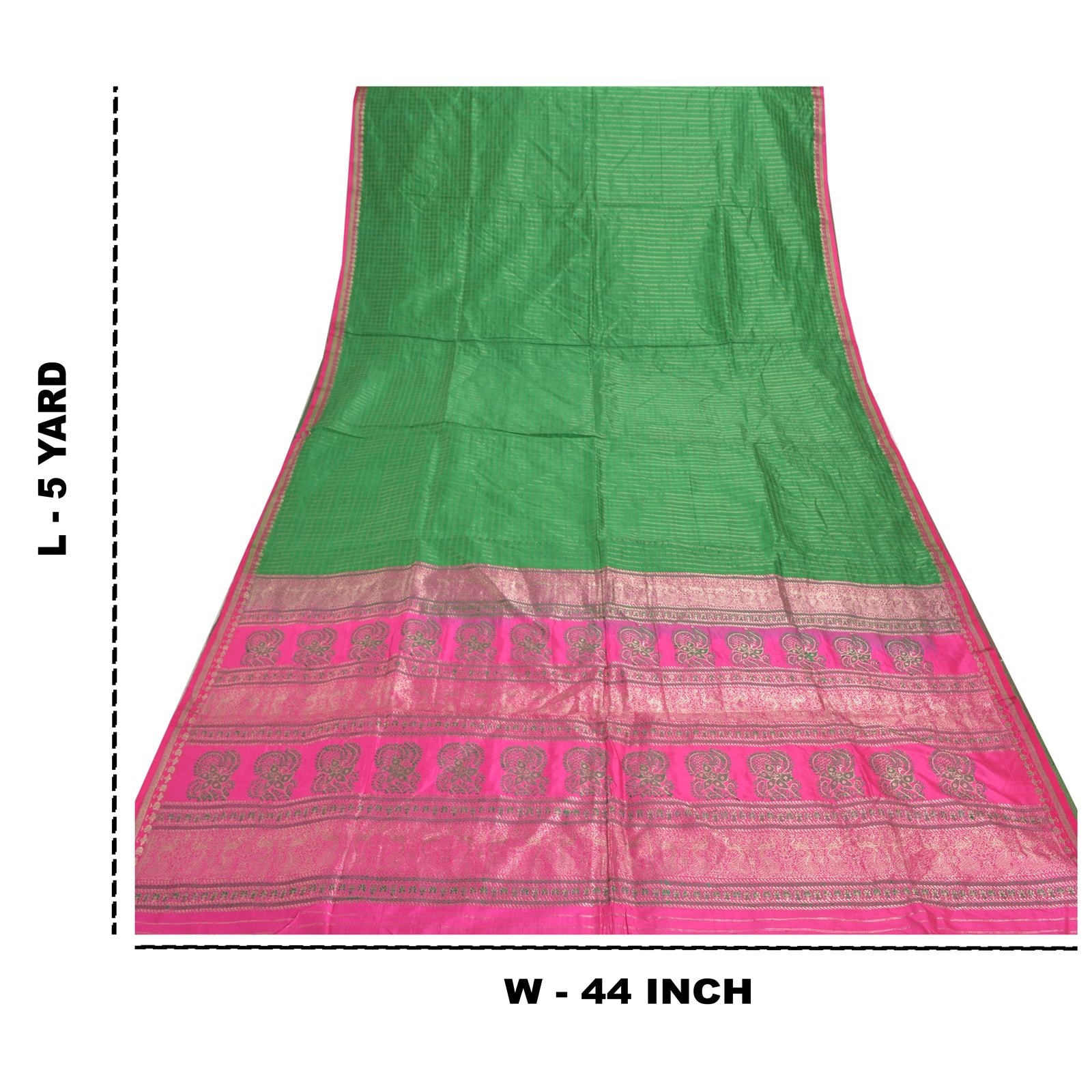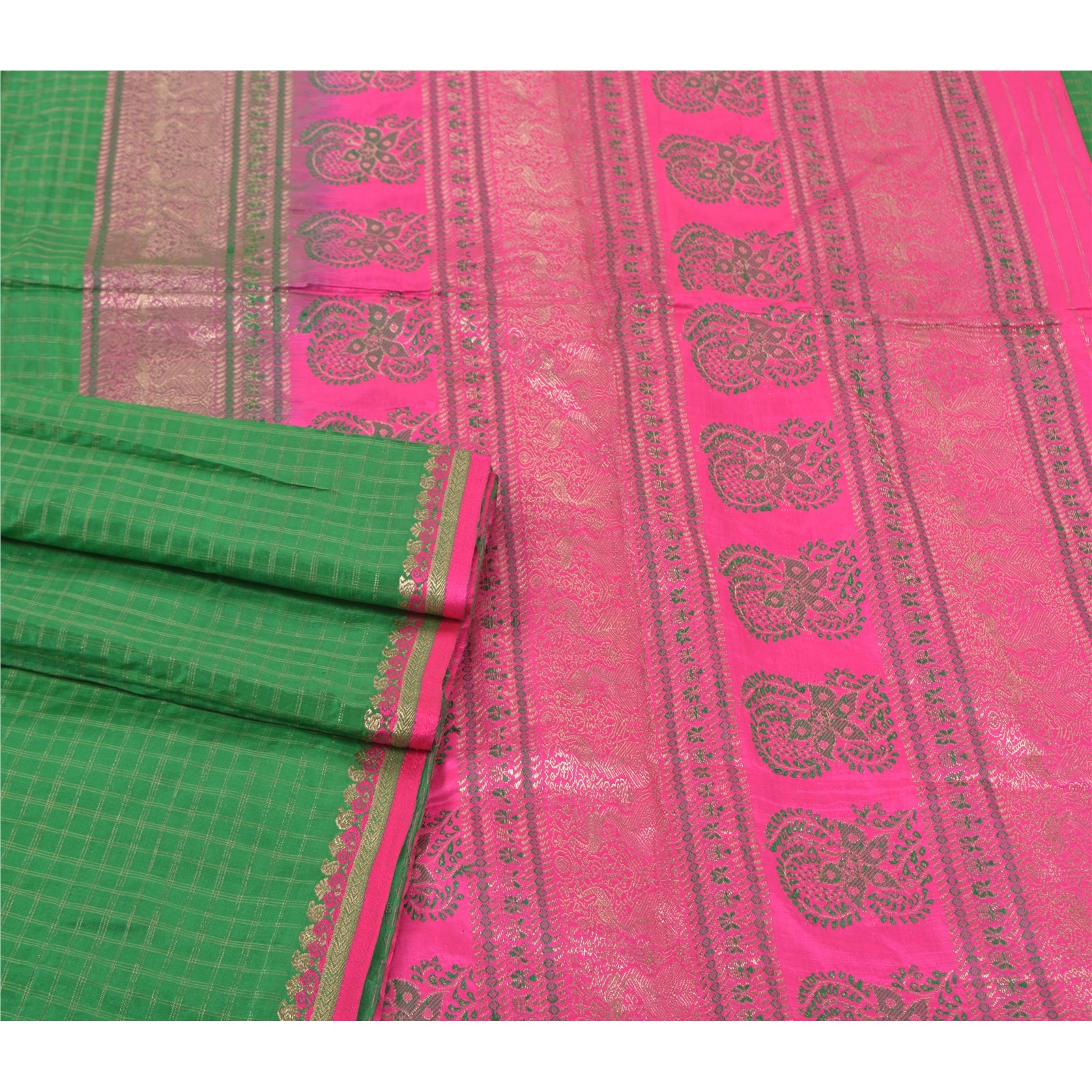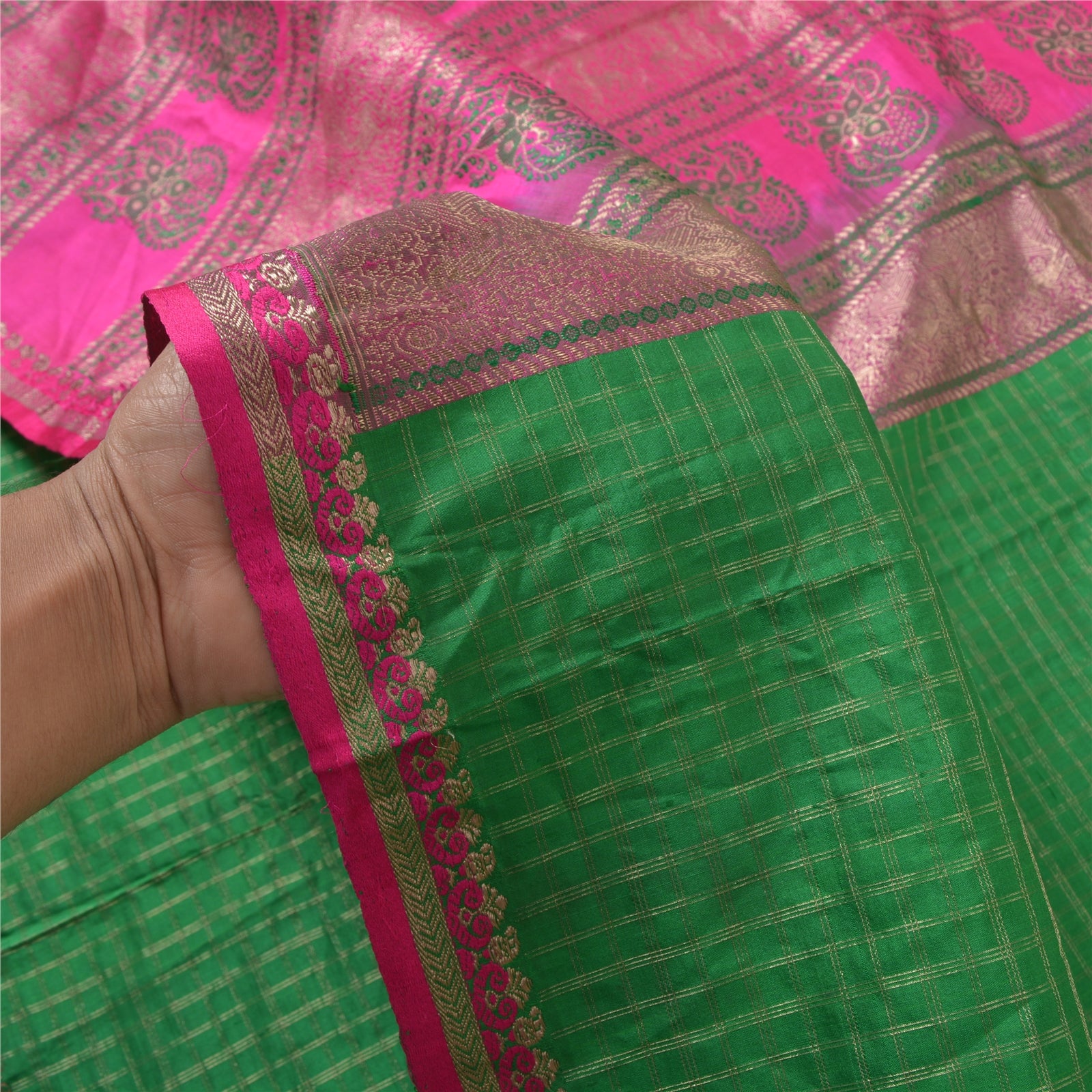 Sanskriti Vintage Heavy Green Sari 100% Pure Silk Woven Brocade Sarees Sustainable Fabric