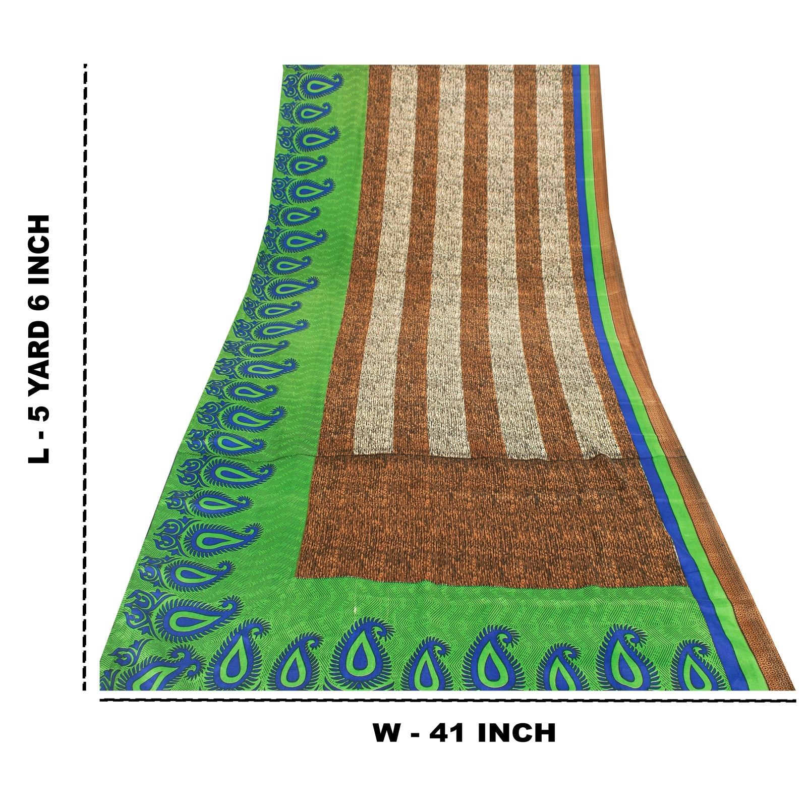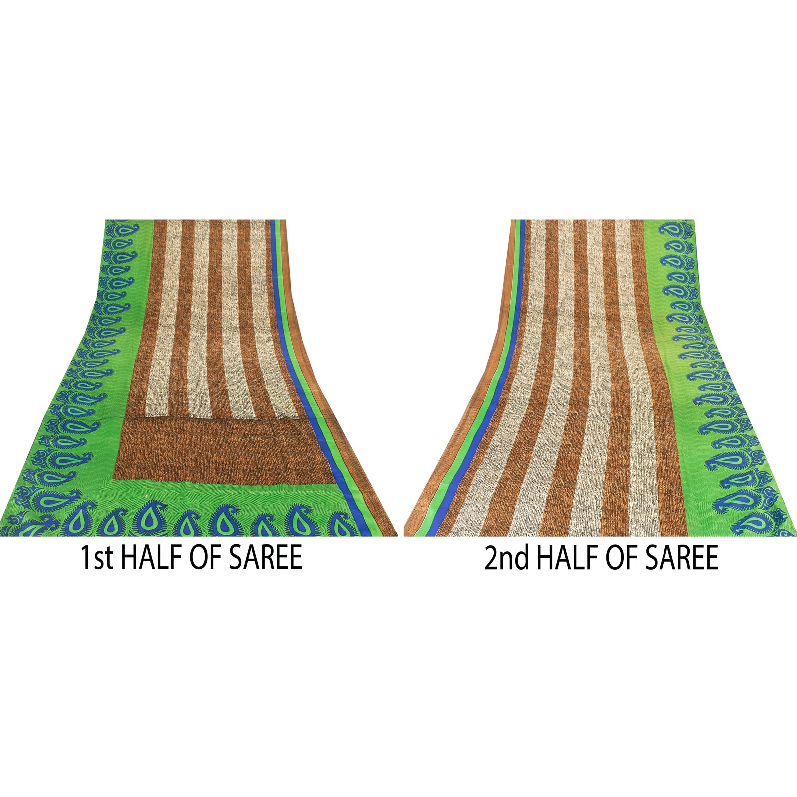 THE ITEM COLOR OR SHADE MAY BE DARKER OR LIGHTER THAN THE PICTURE. Beautiful green and brown colored printed moss crepe saree. Pallu & Border has printed paisley and circular design. Abstract design in center part of sari. What is special about this saree? Nice floral design with extremely smooth moss crepe base fabric is really enhancing the beauty of the saree. This unique vintage saree can be used for various crafting ideas even if you don't want to use it as a sari. Design a dress, use it as a throw, as window dressing, upholstery, sarongs, table linen and much more. Let your creative juices flow and use this decorated fabric in multiple fashion. Shipping Note: 'International buyers please note: Import duties, taxes, and charges are not included in the item price or postage cost. These charges are the buyer's responsibility. Please check with your country's customs office to determine what these additional costs will be prior to bidding or buying. Buyer will pay custom duty/tax. It is calculated and charged differently by every country. As a seller I do not have any control over it. VAT or sales tax is calculated by the platform at the time of checkout. Customs charge is payable at the time of delivery.' PAS-1207