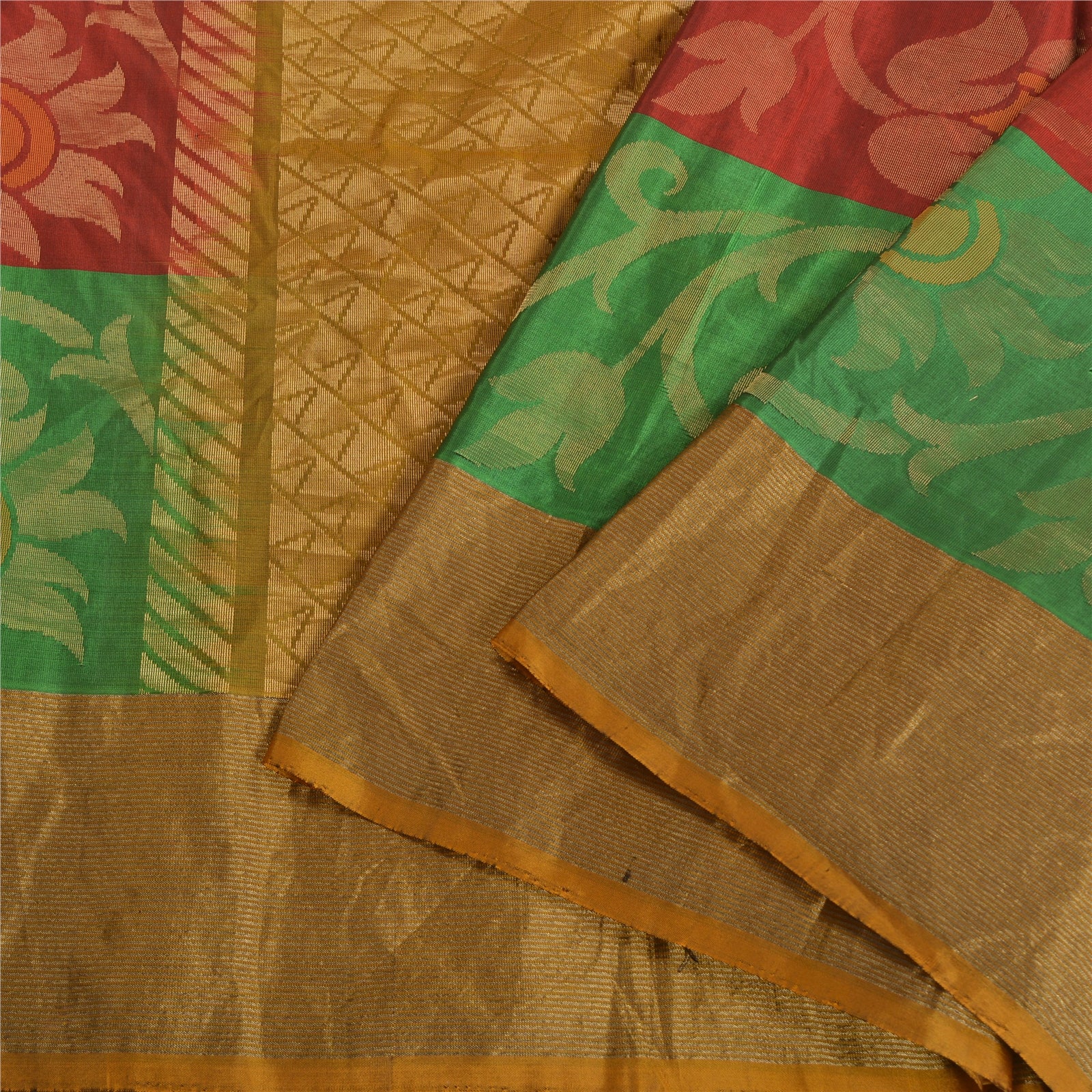 'THE ITEM COLOR OR SHADE MAY BE DARKER OR LIGHTER THAN THE PICTURE.' Beautiful multi colored pure silk woven sari. Pallu & border features floral design with golden zari & woven thread work. The center of the saree has similar woven floral design. This saree can be used for various crafting ideas too. Use it for dress designing, as a throw, as window dressing, upholstery, table linen and much more. Let your creative juices flow. 'International buyers please note: Import duties, taxes, and charges are not included in the item price or postage cost. These charges are the buyer's responsibility. Please check with your country's customs office to determine what these additional costs will be prior to bidding or buying. Buyer will pay custom duty/tax. It is calculated and charged differently by every country. As a seller I do not have any control over it. VAT or sales tax is calculated by the platform at the time of checkout. Customs charge is payable at the time of delivery.'