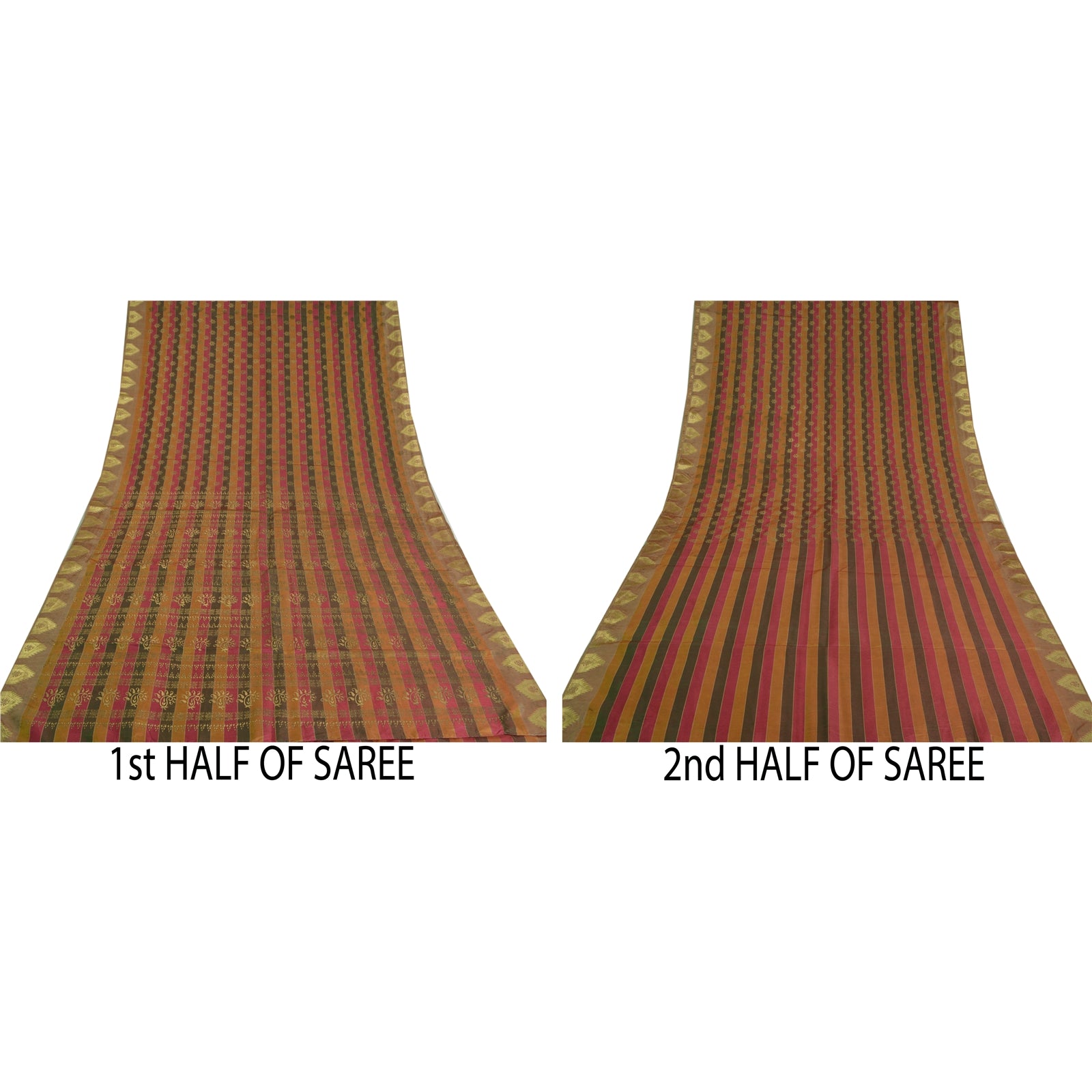 Sanskriti Vintage Indian Sarees Art Silk Woven Painted Premium Sari Craft Sustainable Fabric