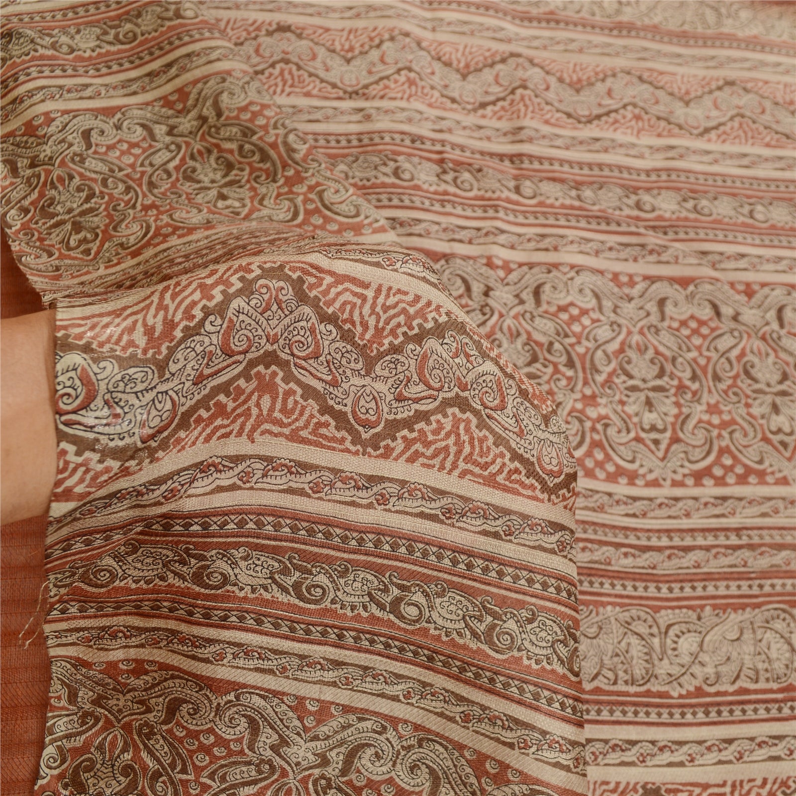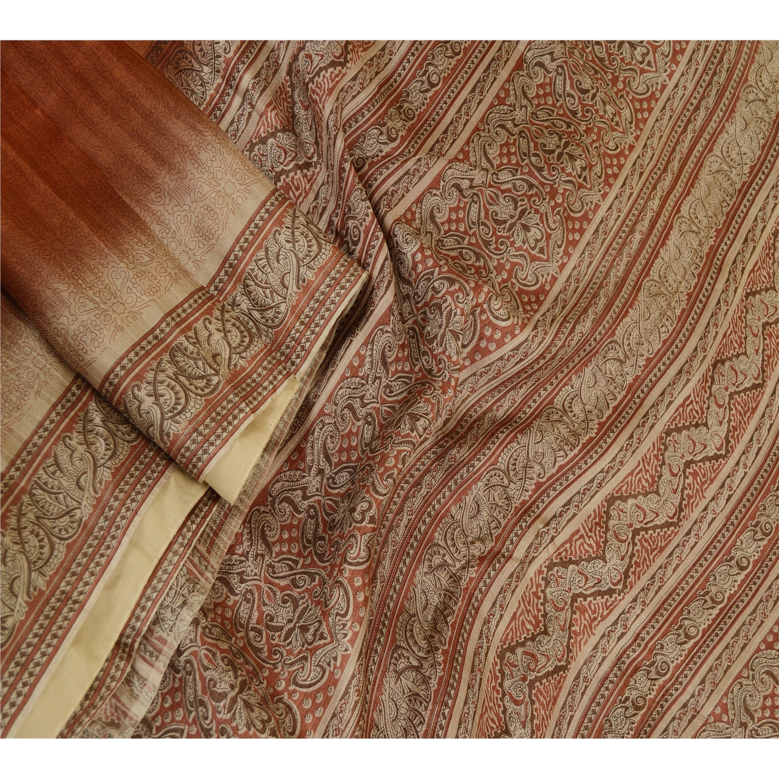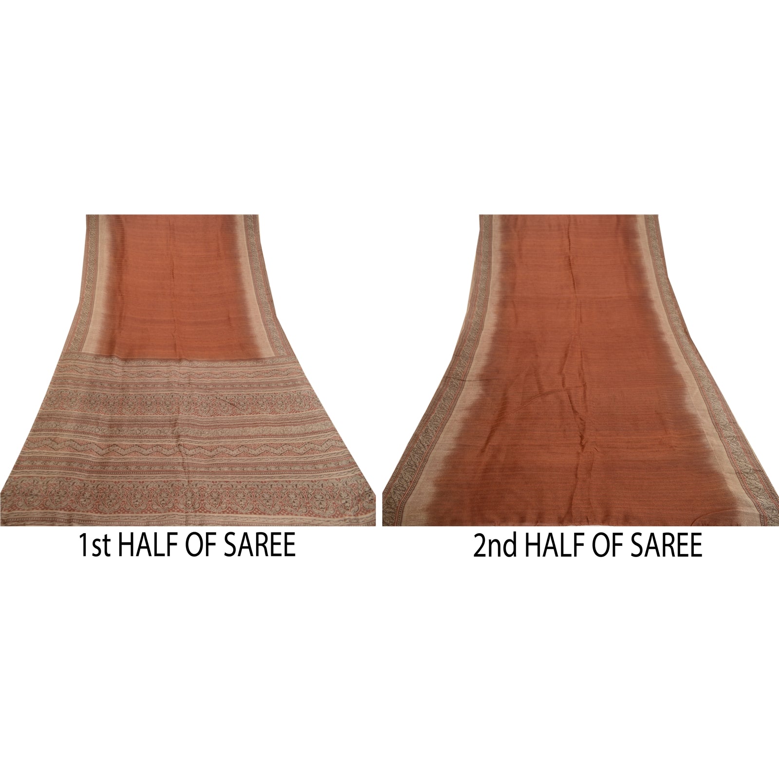 Sanskriti Vintage Indian Sarees Brown Pure Silk Printed Sari Floral Craft Sustainable Fabric