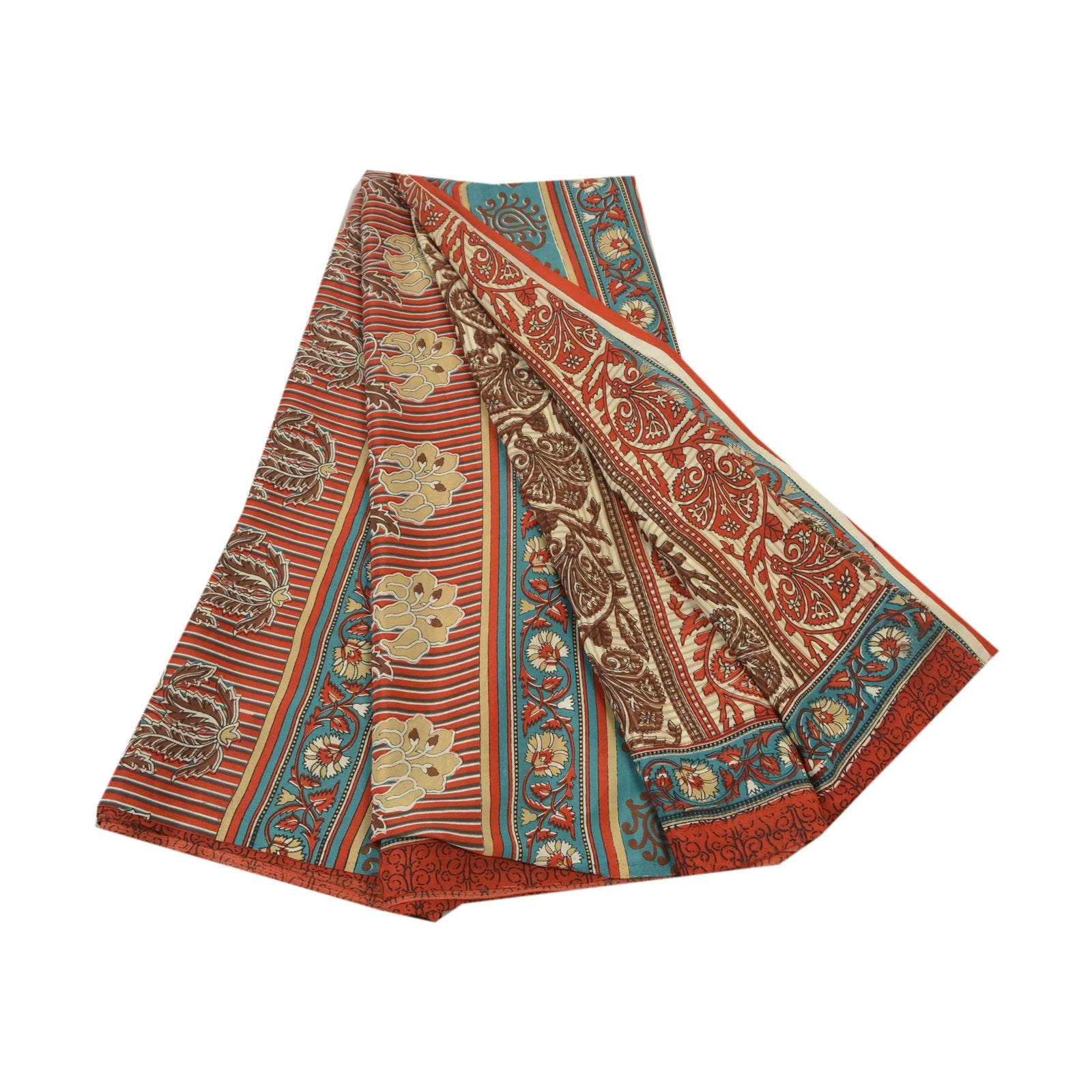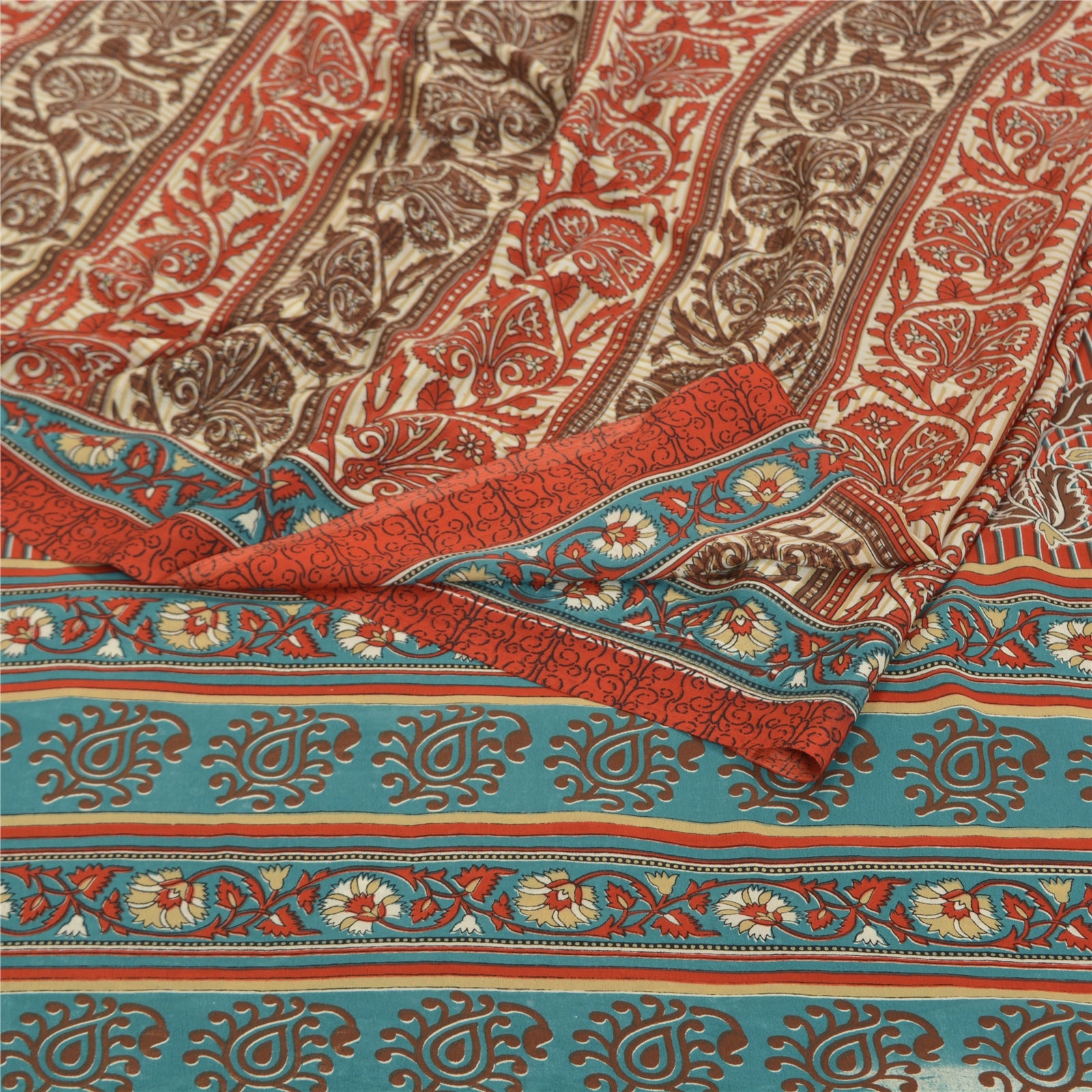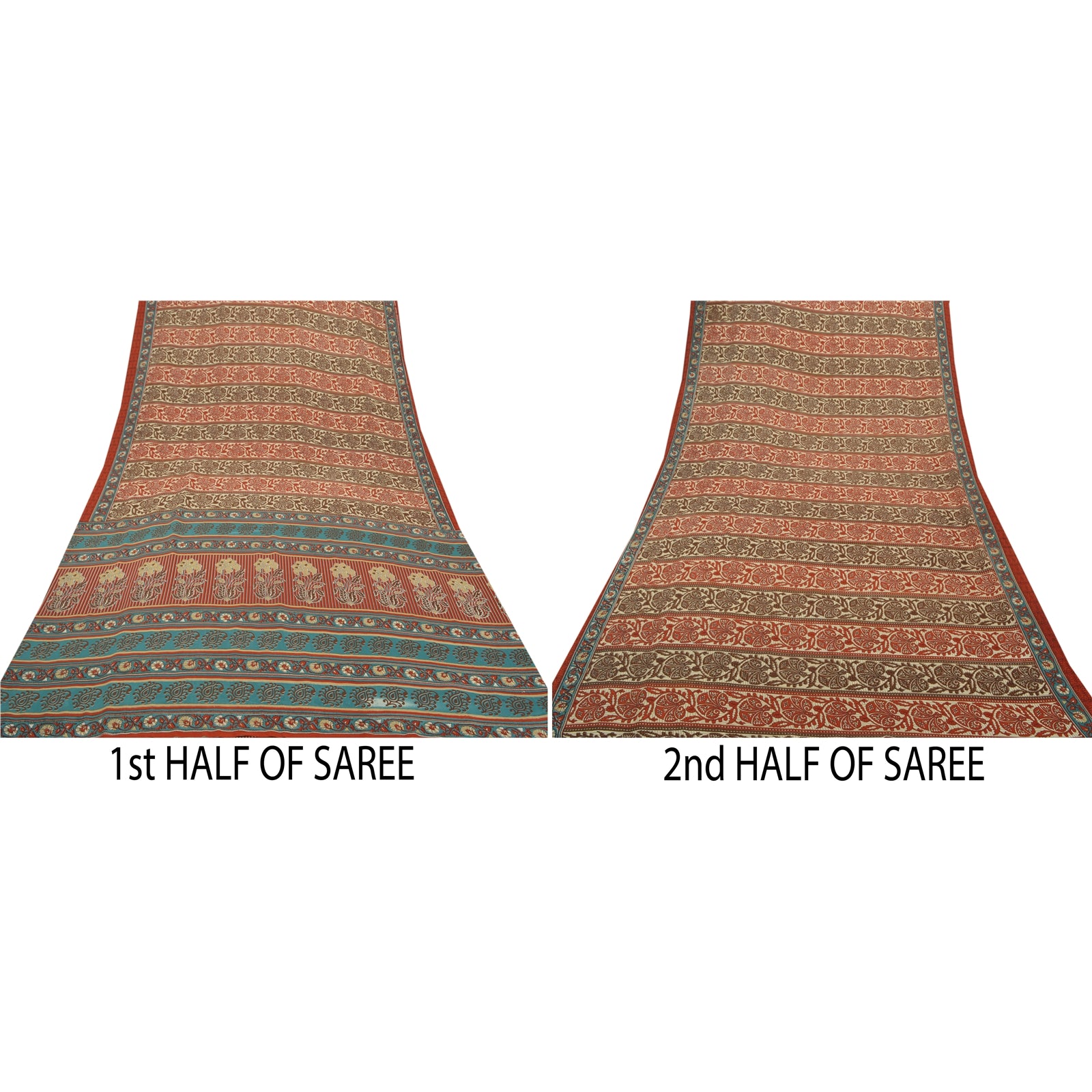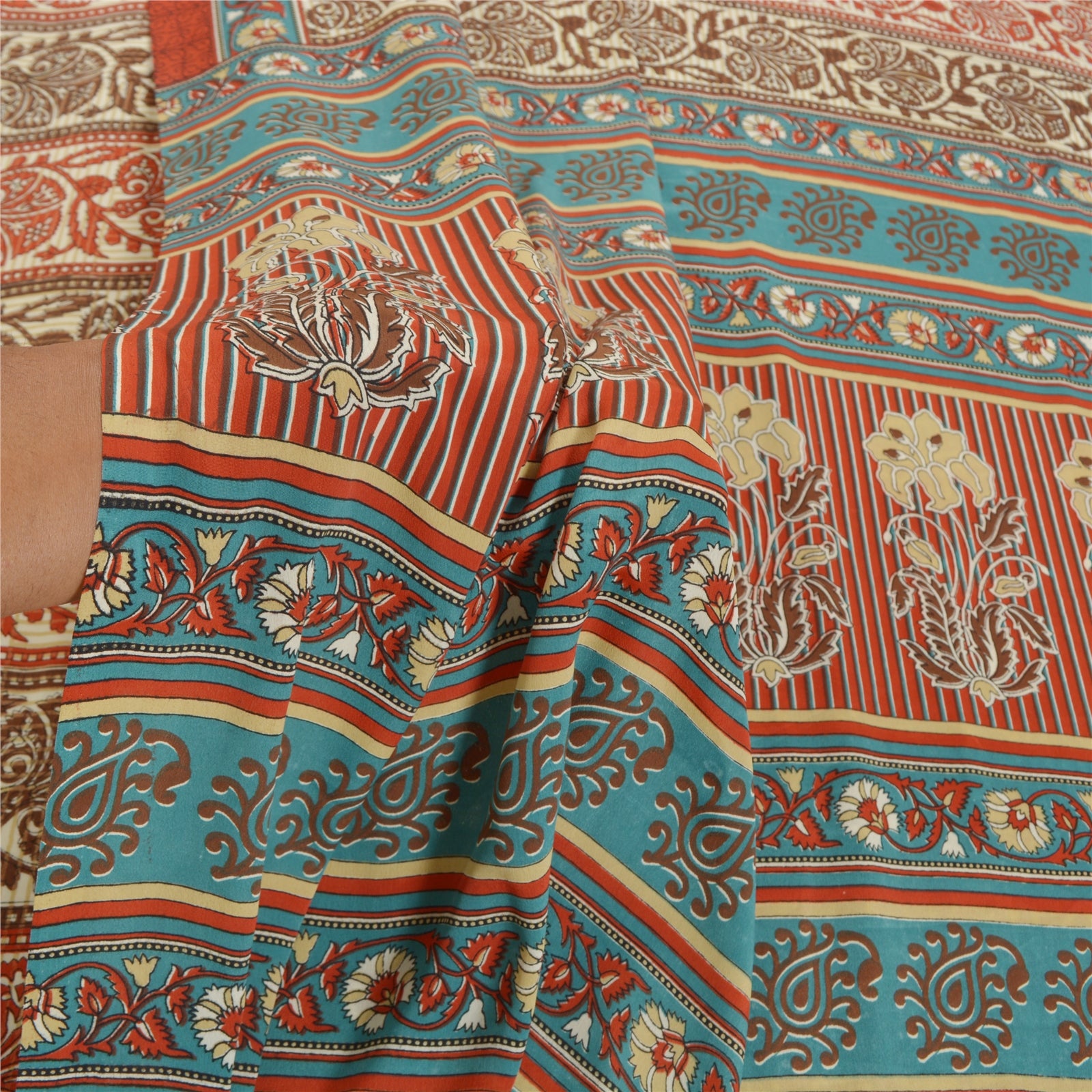 Sanskriti Vintage Indian Sarees Moss Crepe Printed Sari 5YD Soft Craft Sustainable Fabric