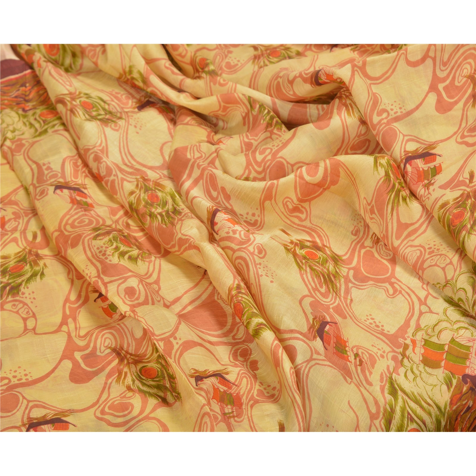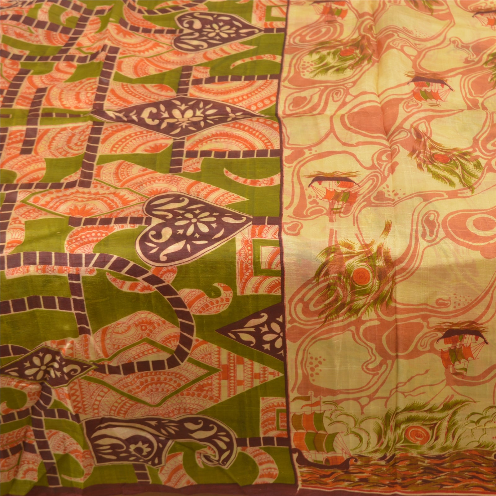 Sanskriti Vintage Indian Sarees Pure Silk Floral Printed Sari Craft 5YD Sustainable Fabric
