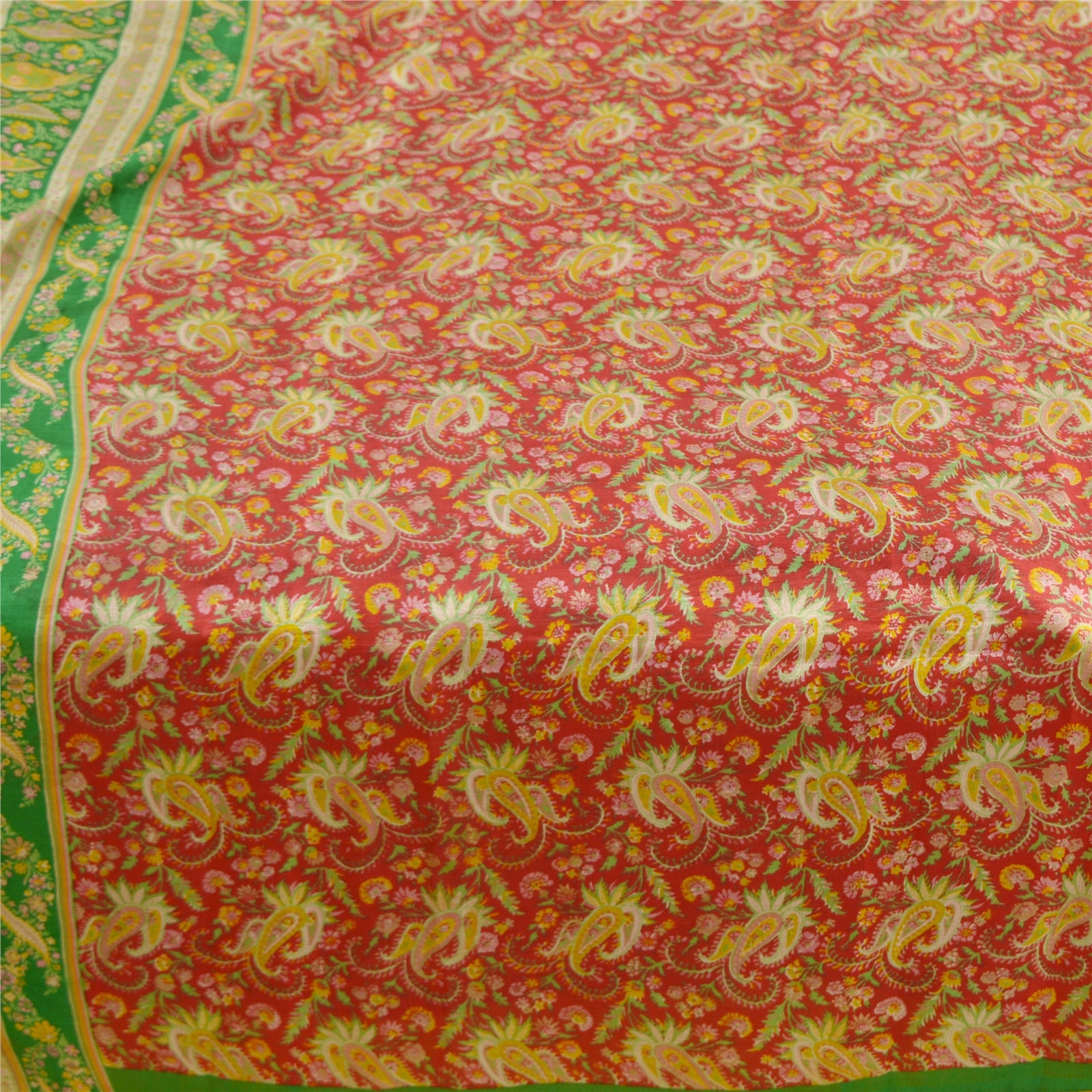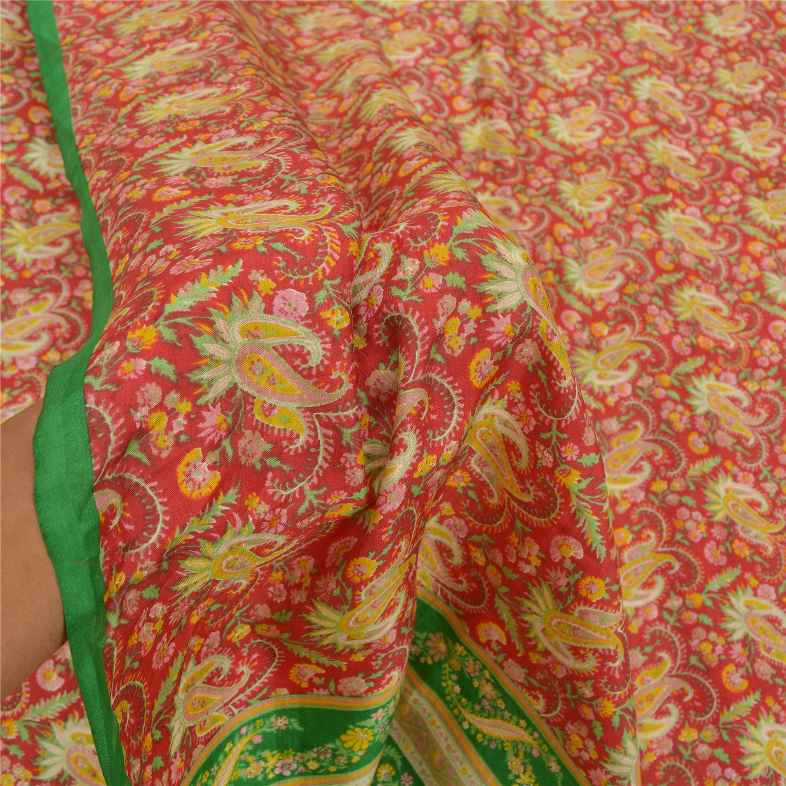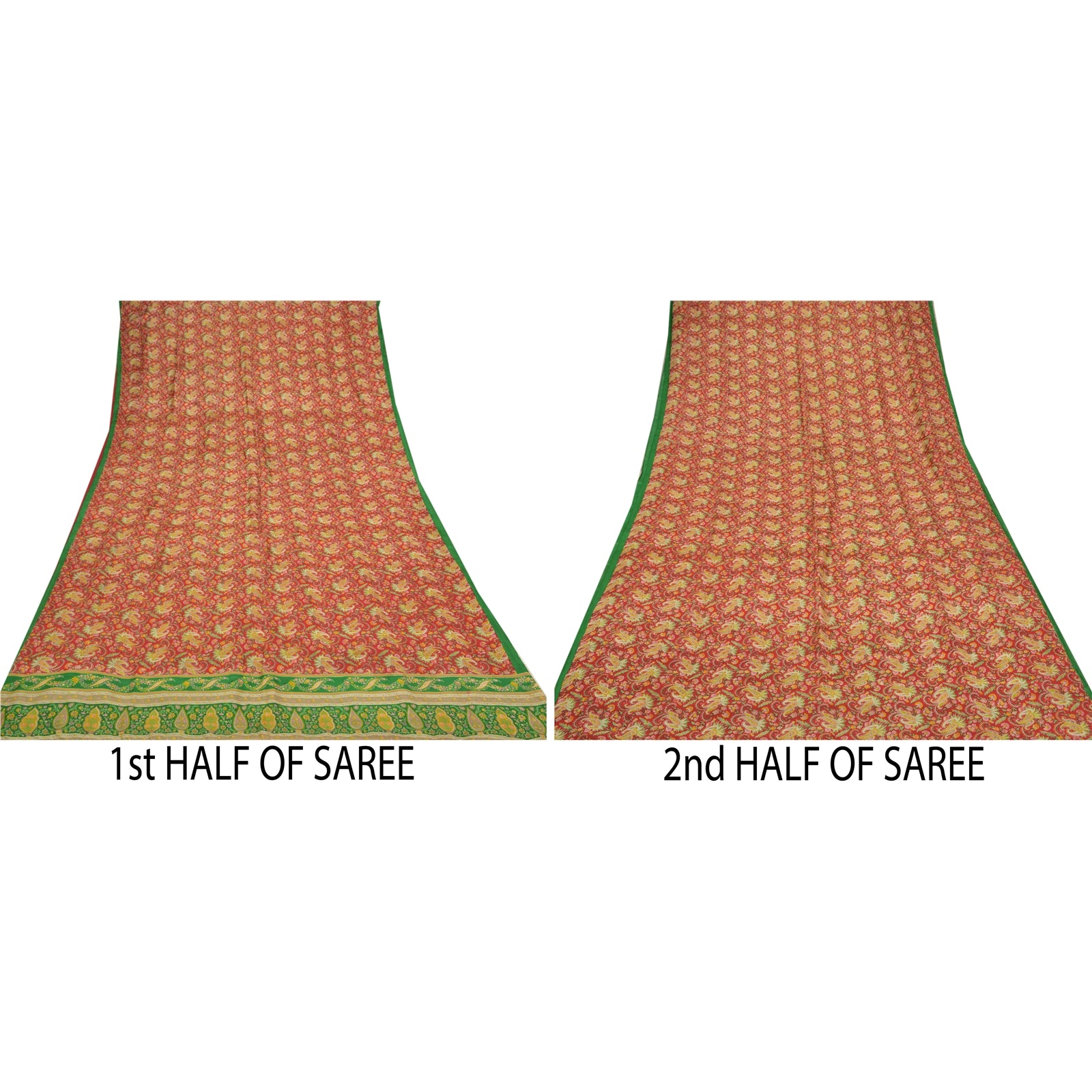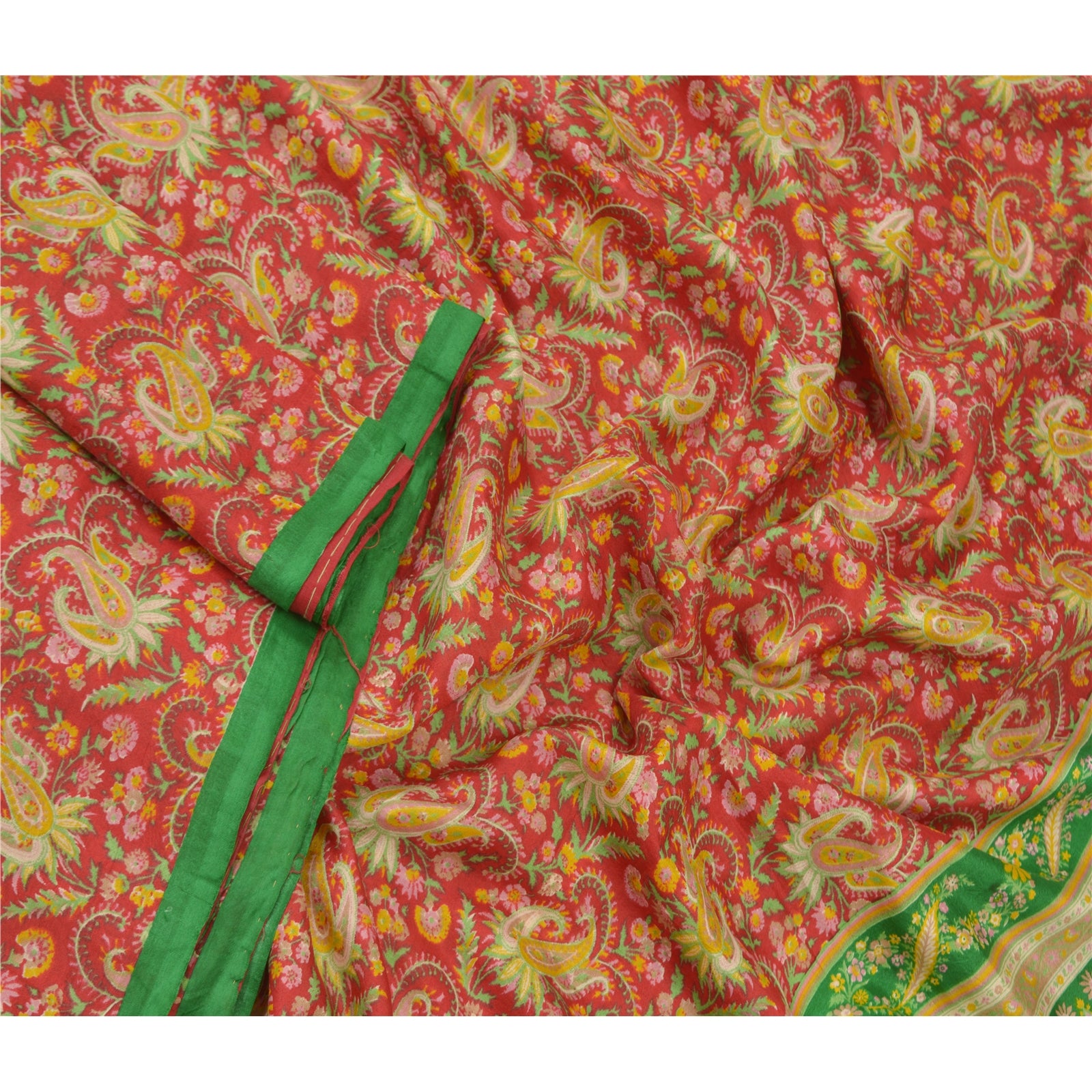 Beautiful Red & Green Colored Saree 100% Pure Silk Printed Base Sustainable Fabric. Pallu & Border has printed work with floral & paisley design. The center part of sari boasts similar printed floral design. This unique vintage saree can be used for various crafting ideas even if you don't want to use it as a sari. Design a dress, use it as a throw, as window dressing, upholstery, sarongs, table linen and much more. Let your creative juices flow and use this decorated Sustainable Fabric in multiple fashion. Please note - Buyers from Australia are required to pay postage. Registered air mail to Australia is temporarily suspended due to the pandemic. Once it goes back to normal we'll revert to free shipping. For now, we are using Aramex and DHL to ship orders. These services are expensive but faster compared to regular mail. Thank you for your support. If you are buying in bulk we will refund whatever excess is left. Contact us after that purchase. For USA buyers - Single item ships via registered air mail, buy 1 more to get FedEx.