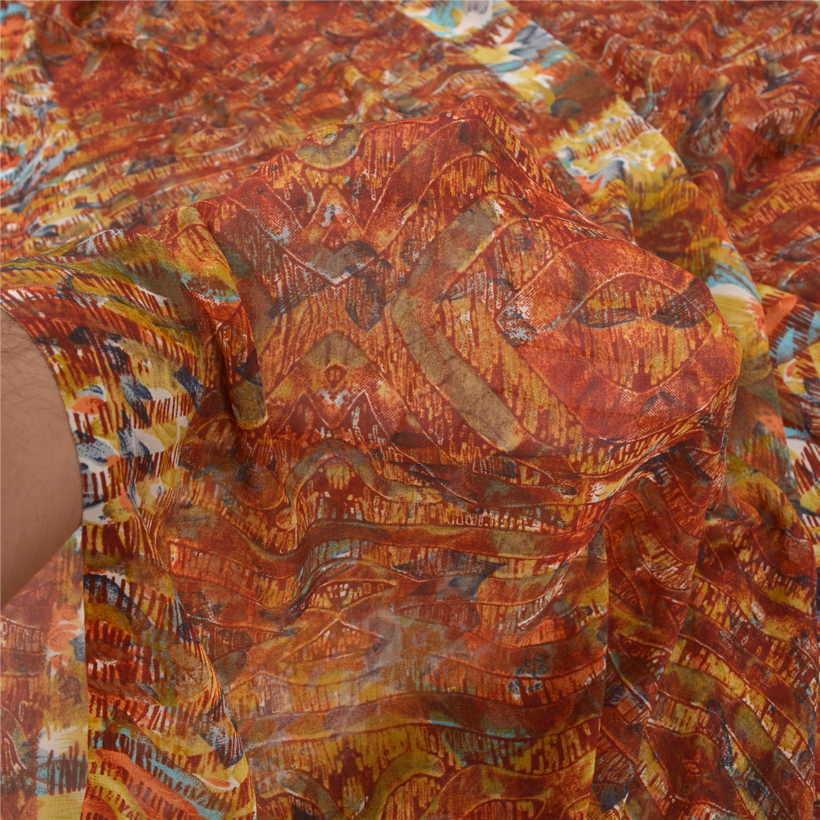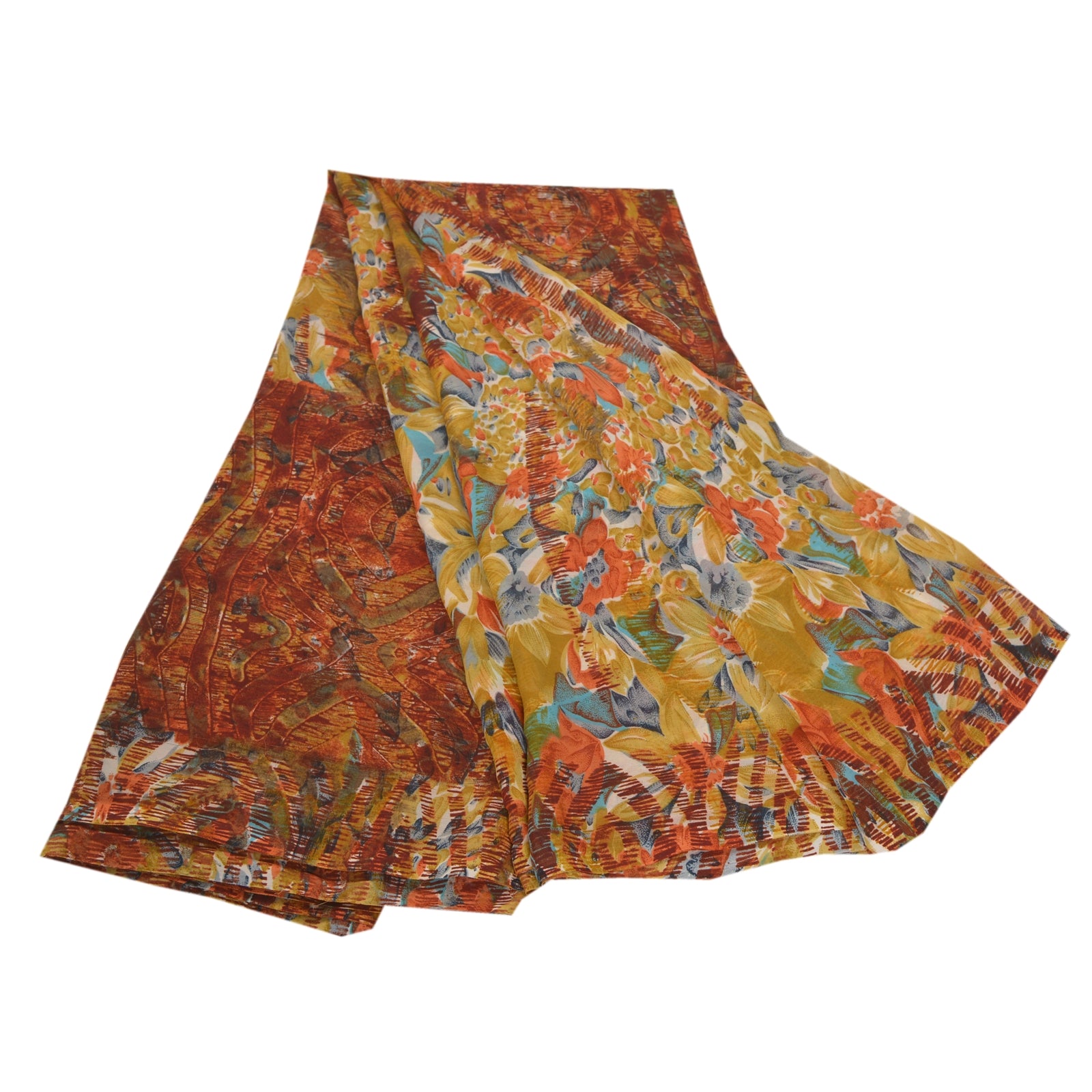 Sanskriti Vintage Indian Sari Printed Georgette Sarees Craft Bollywood Sustainable Fabric