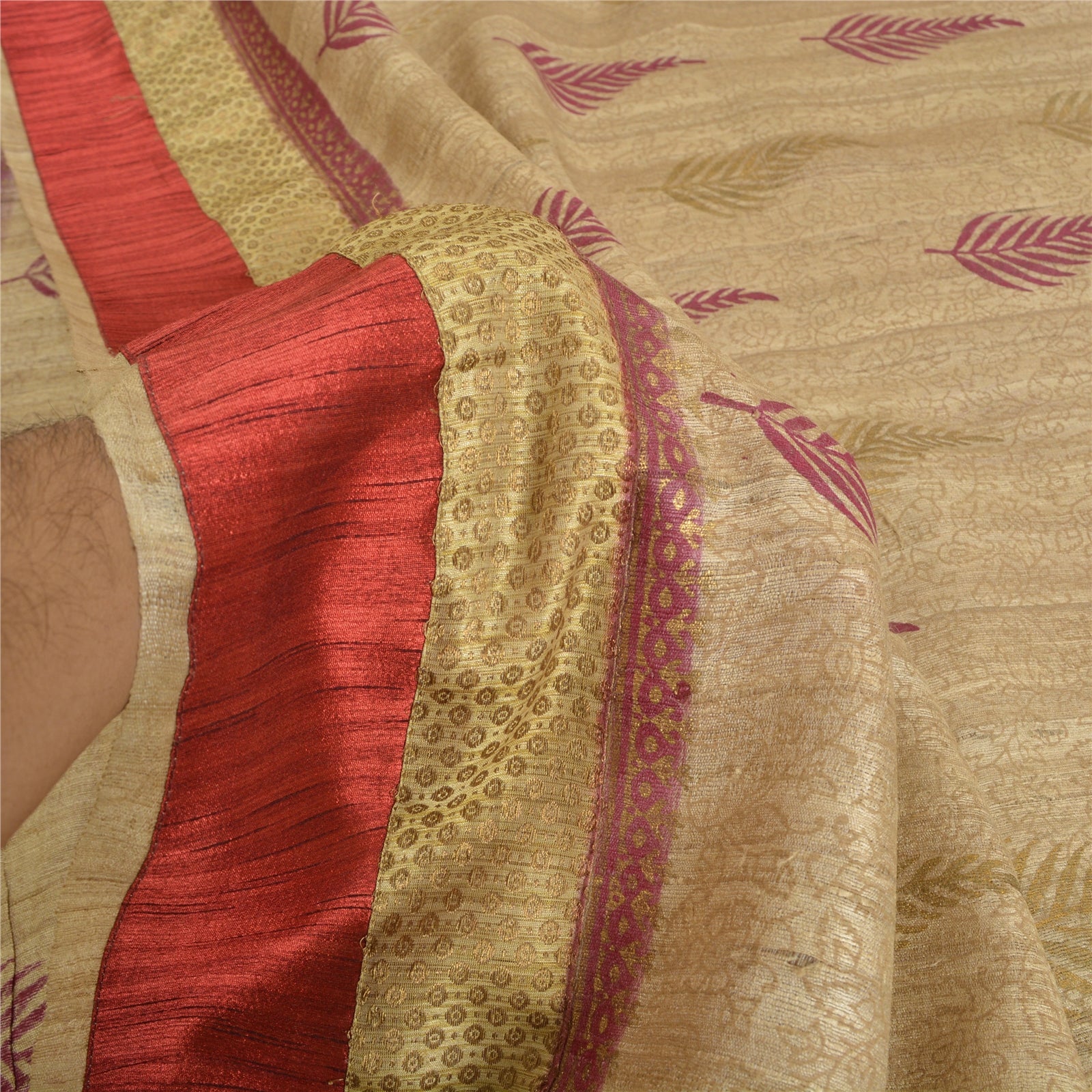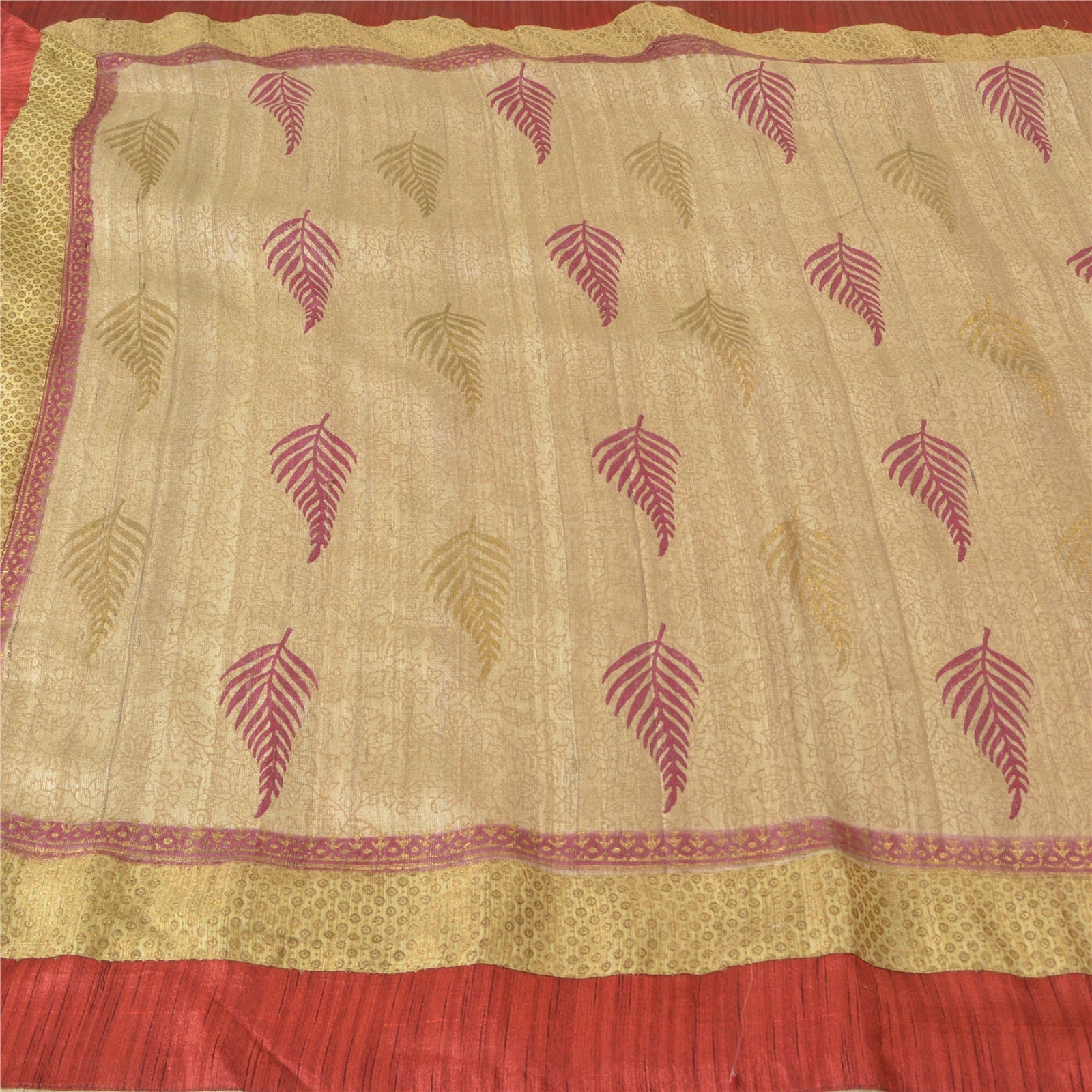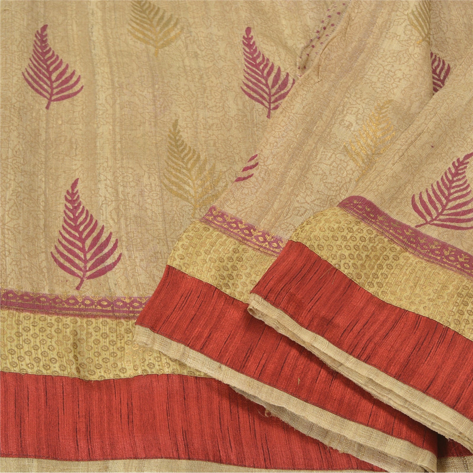 'THE ITEM COLOR OR SHADE MAY BE DARKER OR LIGHTER THAN THE PICTURE.' Sanskriti offers this vintage ivory saree crafted with 100% Pure Handloom Silk having Handloom Woven Work. The sari features leaf design with cream and red Sustainable Fabric patch work along the borders. The patch work itself adorns woven and painted floral design. This saree can be used for various crafting ideas too. Use it for dress designing, as a throw, as window dressing, upholstery, table linen and much more! 'International buyers please note: Import duties, taxes, and charges are not included in the item price or postage cost. These charges are the buyer's responsibility. Please check with your country's customs office to determine what these additional costs will be prior to bidding or buying. Buyer will pay custom duty/tax. It is calculated and charged differently by every country. As a seller I do not have any control over it. VAT or sales tax is calculated by the platform at the time of checkout. Customs charge is payable at the time of delivery.'