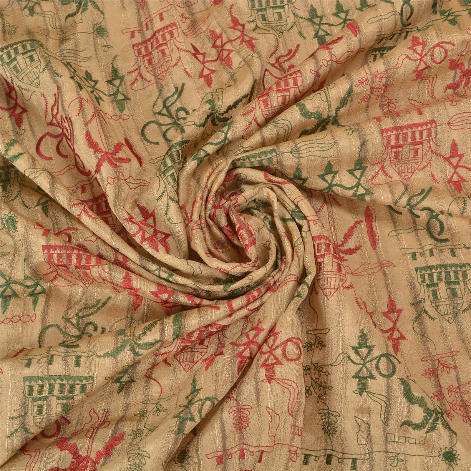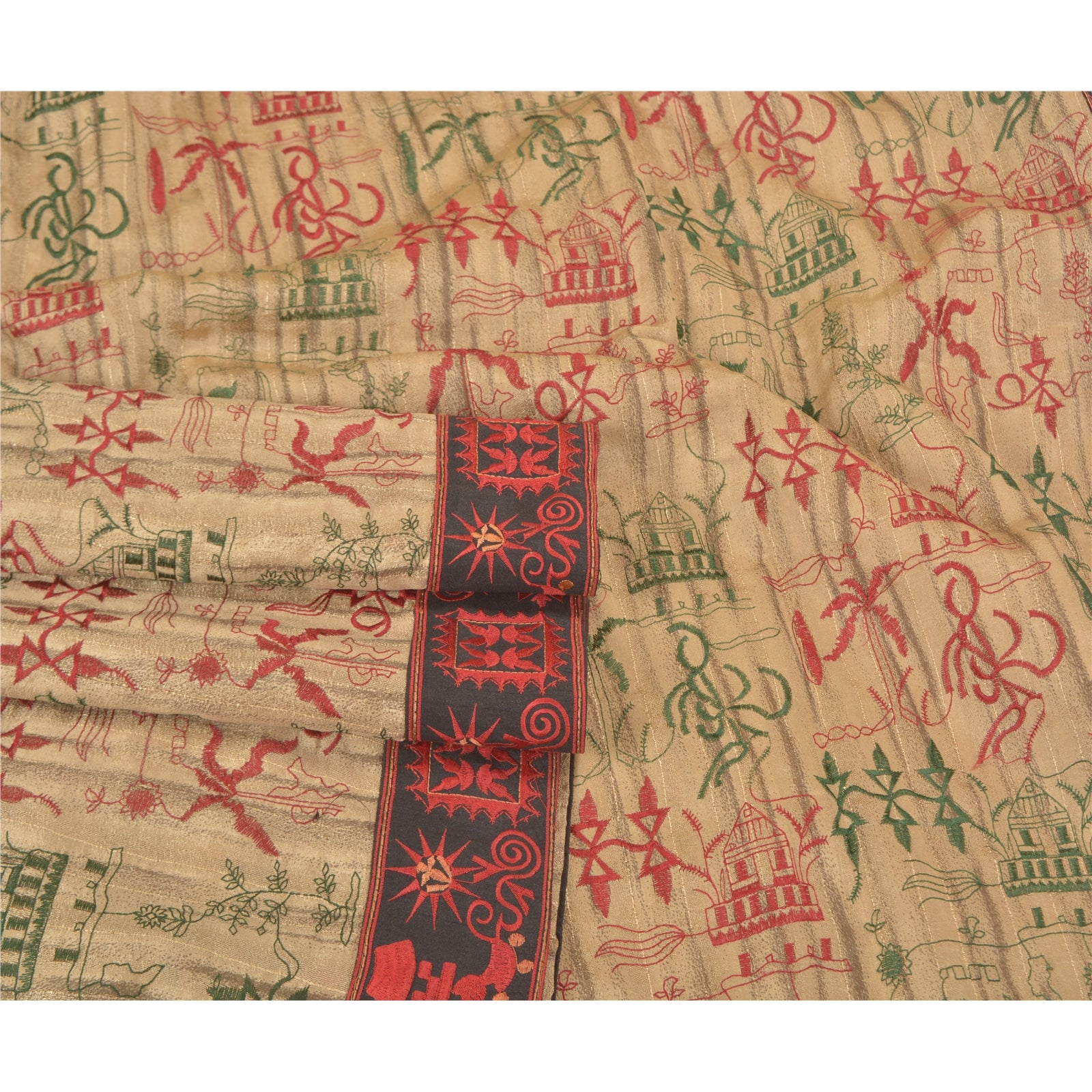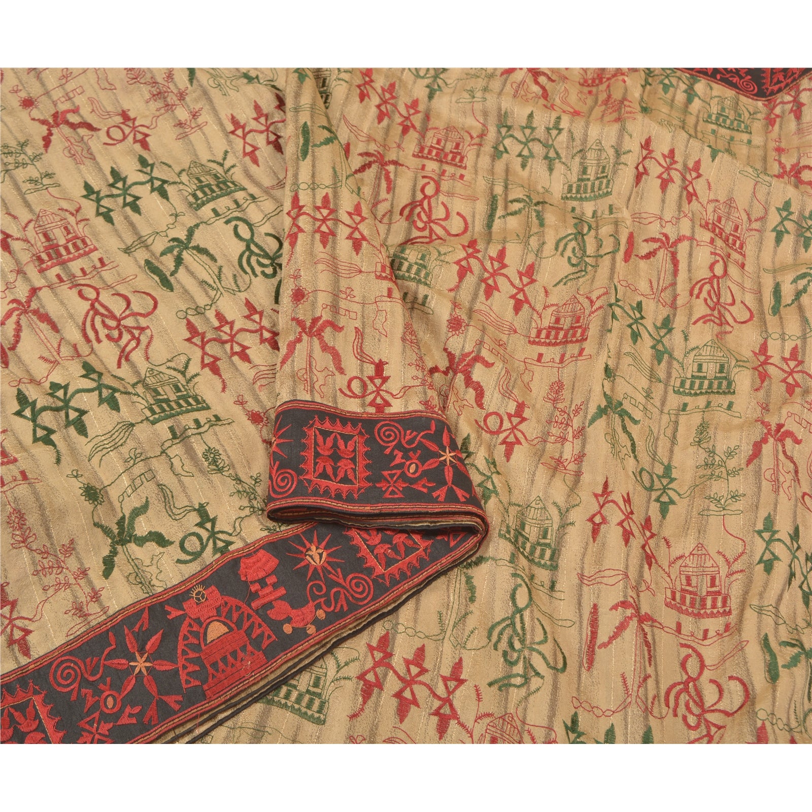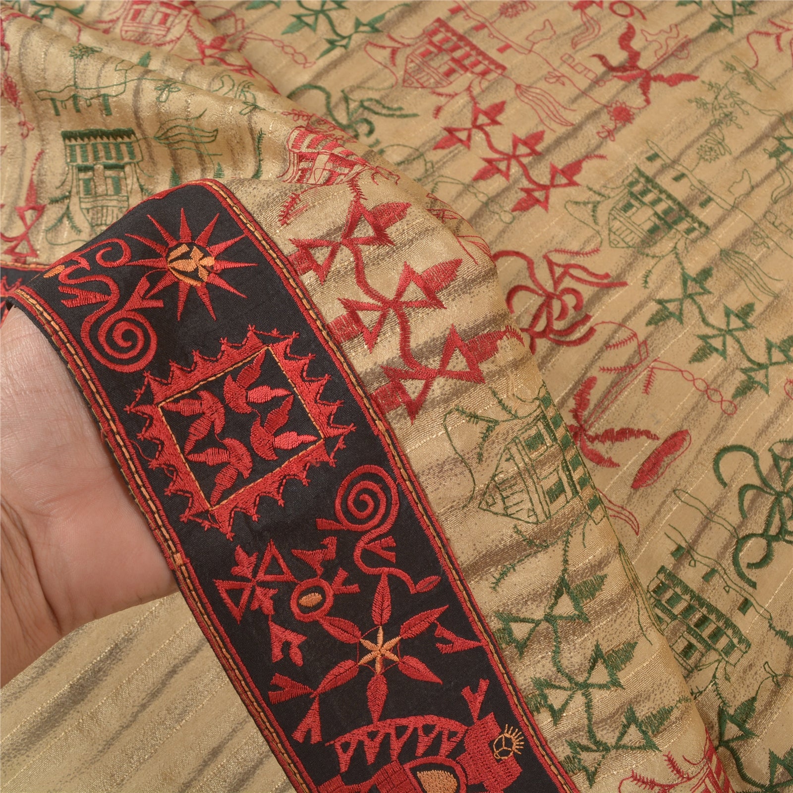 Sanskriti Vintage Ivory Sarees Art Silk Embroidered Warli Premium Sari Sustainable Fabric