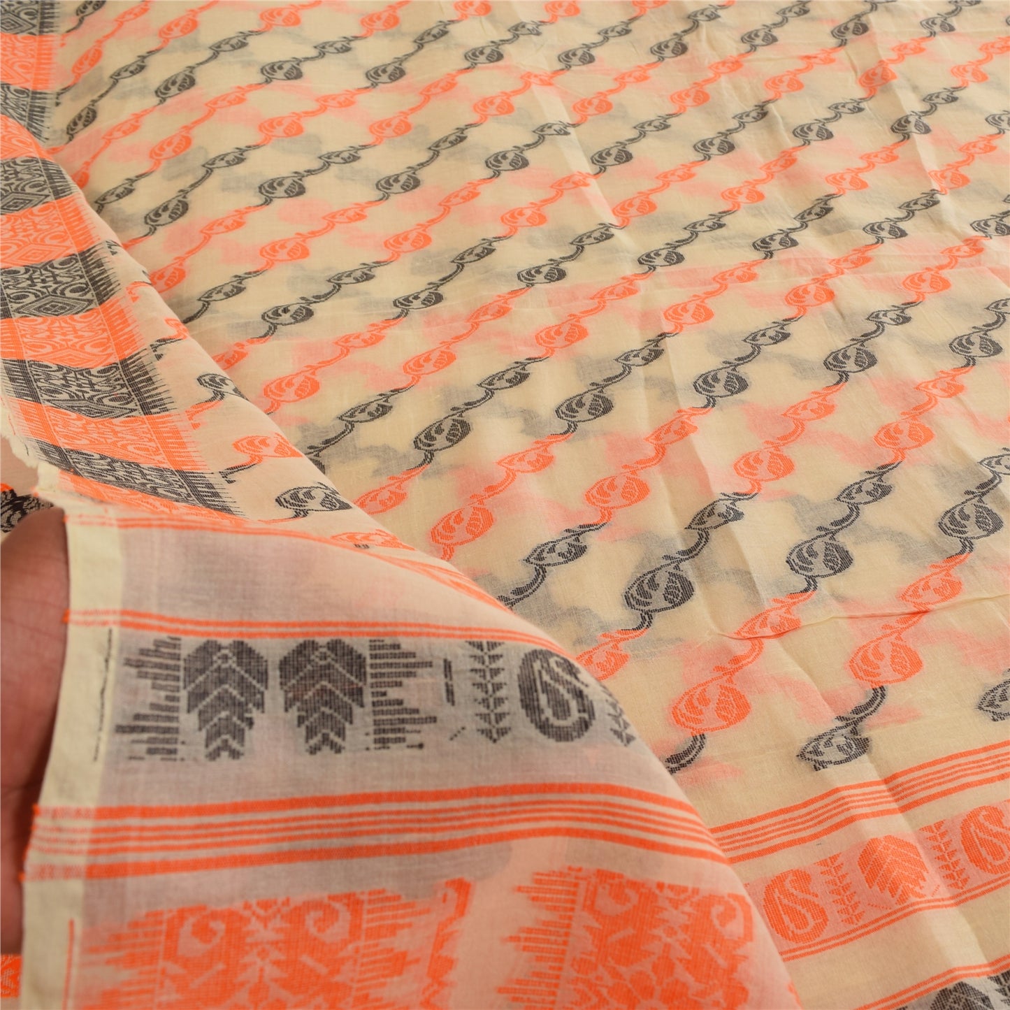 THE ITEM COLOR OR SHADE MAY BE DARKER OR LIGHTER THAN THE PICTURE.' An Awesome Sari In 100% Pure Cotton Ivory Colored Woven Sari/Sustainable Fabric. Pallu & Border Features floral/paisley design embellished with orange & black color woven work. You Can See Center Portion Of The Sari Has Similar Woven Work With Floral/Paisley design This unique vintage saree can be used for various crafting ideas for example design a dress, use it as a throw, as window dressing, upholstery, table linen and much more. Let your creative juices flow and use this decorated Sustainable Fabric in multiple fashion Shipping note: International buyers please note: Import duties, taxes, and charges are not included in the item price or postage cost. These charges are the buyer's responsibility. Please check with your country's customs office to determine what these additional costs will be prior to bidding or buying. Buyer will pay custom duty/tax. It is calculated and charged differently by every country. As a seller I do not have any control over it. VAT or sales tax is calculated by the platform at the time of checkout. Customs charge is payable at the time of delivery. SKU: PS-64327