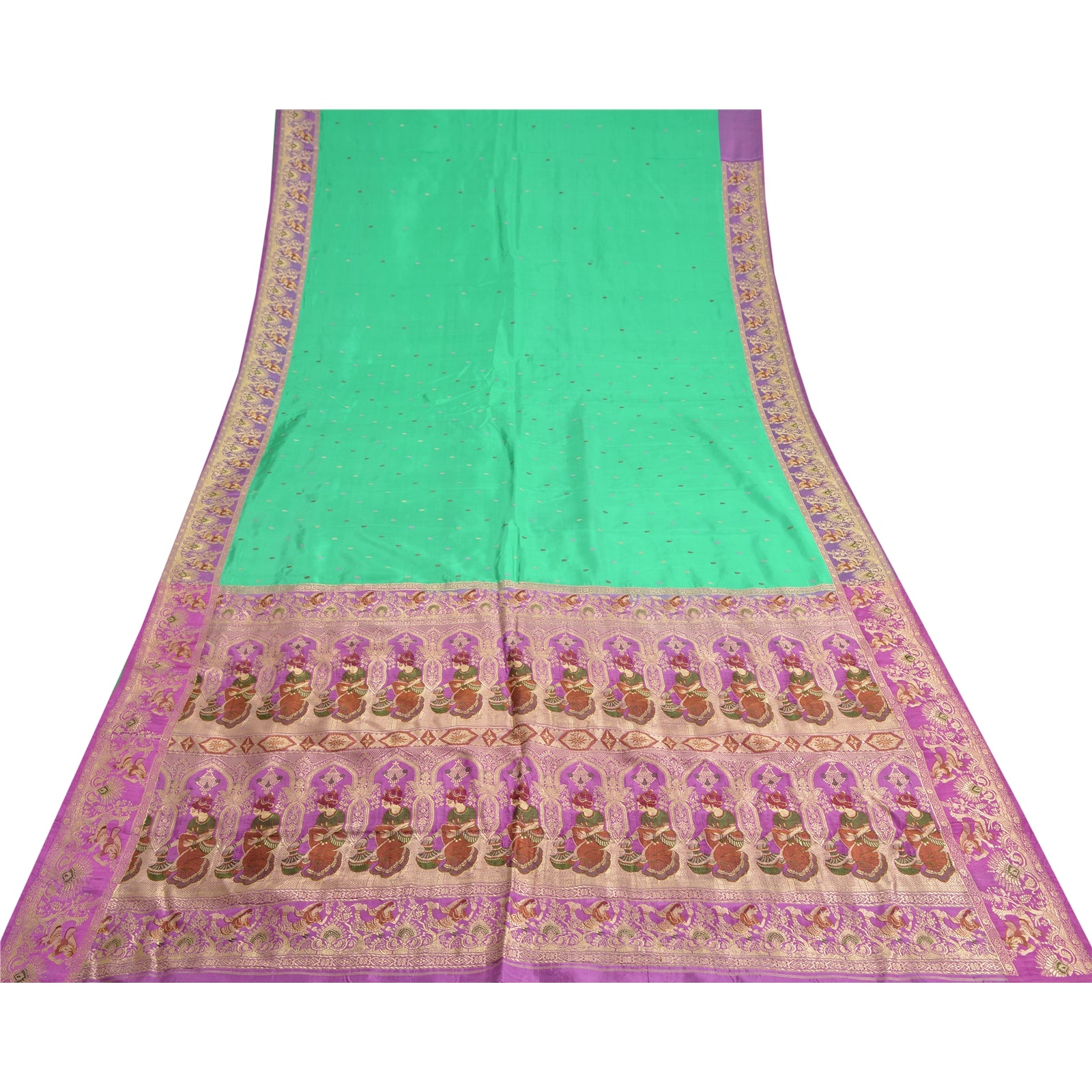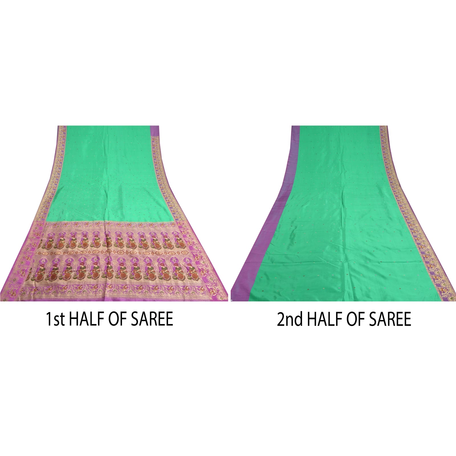 Sanskriti Offers This Vintage Lavender & Green Colored Woven Baluchari Saree Which Is Crafted With 100% Pure Satin (Silk) Base Sustainable Fabric. The pallu & border sari features multi color woven thread work with human & floral design. You can see similar woven work with floral motifs in center part of the sari.. This saree can be used for various crafting ideas too. Use it for dress designing, as a throw, as window dressing, upholstery, table linen and much more. Let your creative juices flow! International buyers please note: Import duties, taxes, and charges are not included in the item price or postage cost. These charges are the buyer's responsibility. Please check with your country's customs office to determine what these additional costs will be prior to bidding or buying. Buyer will pay custom duty/tax. It is calculated and charged differently by every country. As a seller I do not have any control over it.VAT or sales tax is calculated by the platform at the time of checkout. Customs charge is payable at the time of delivery.