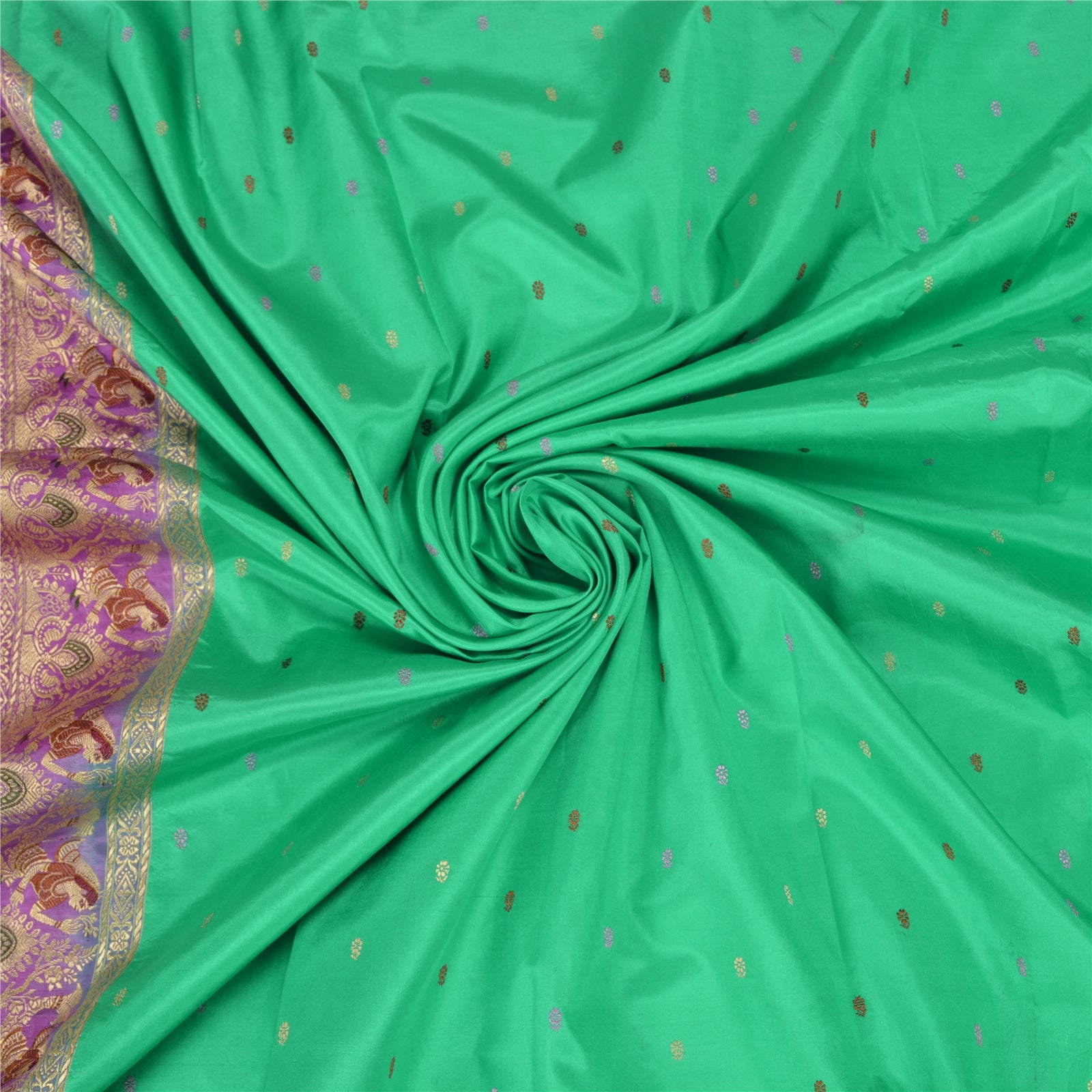 Sanskriti Vintage Lavender/Green Sarees Pure Satin Woven Baluchari Sari Sustainable Fabric