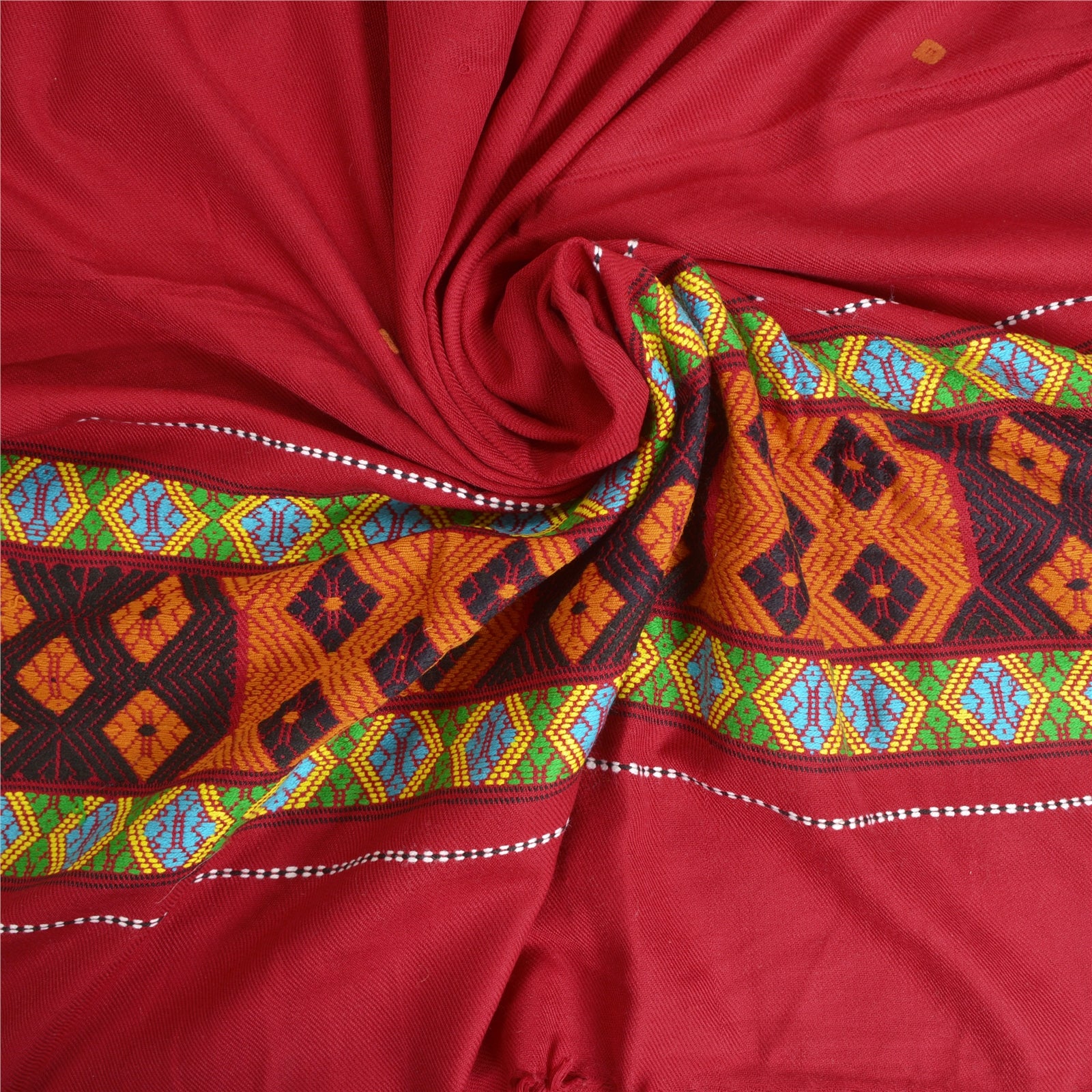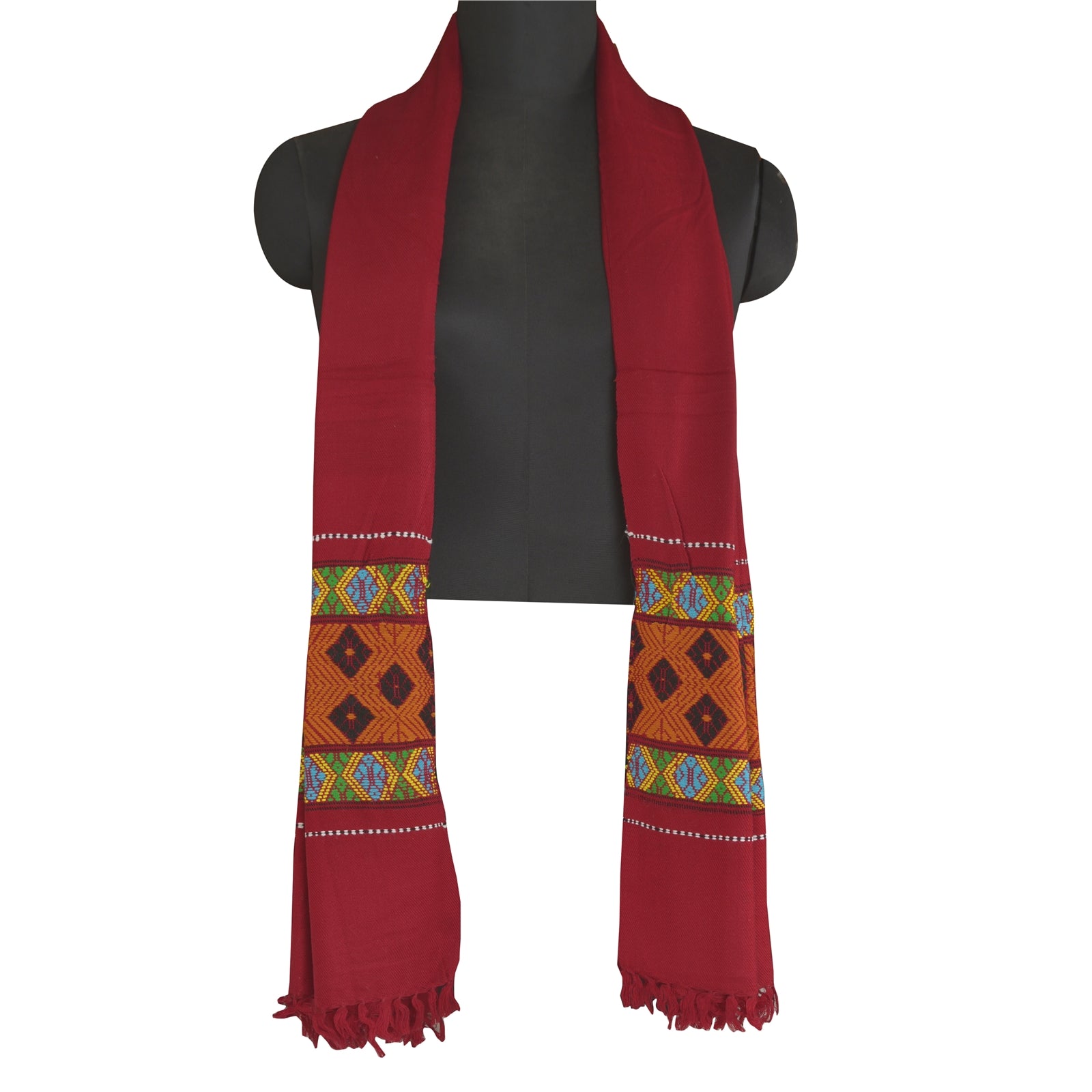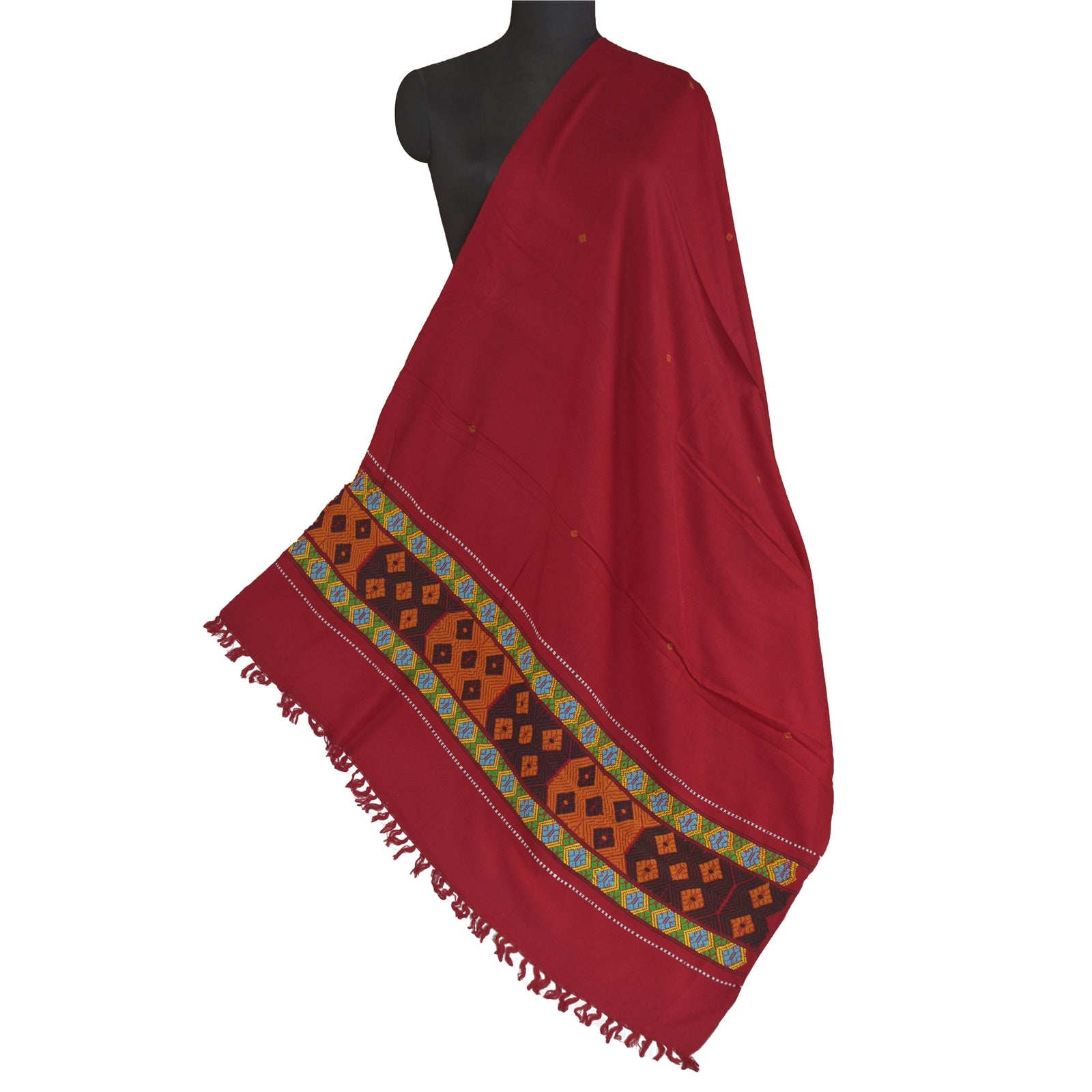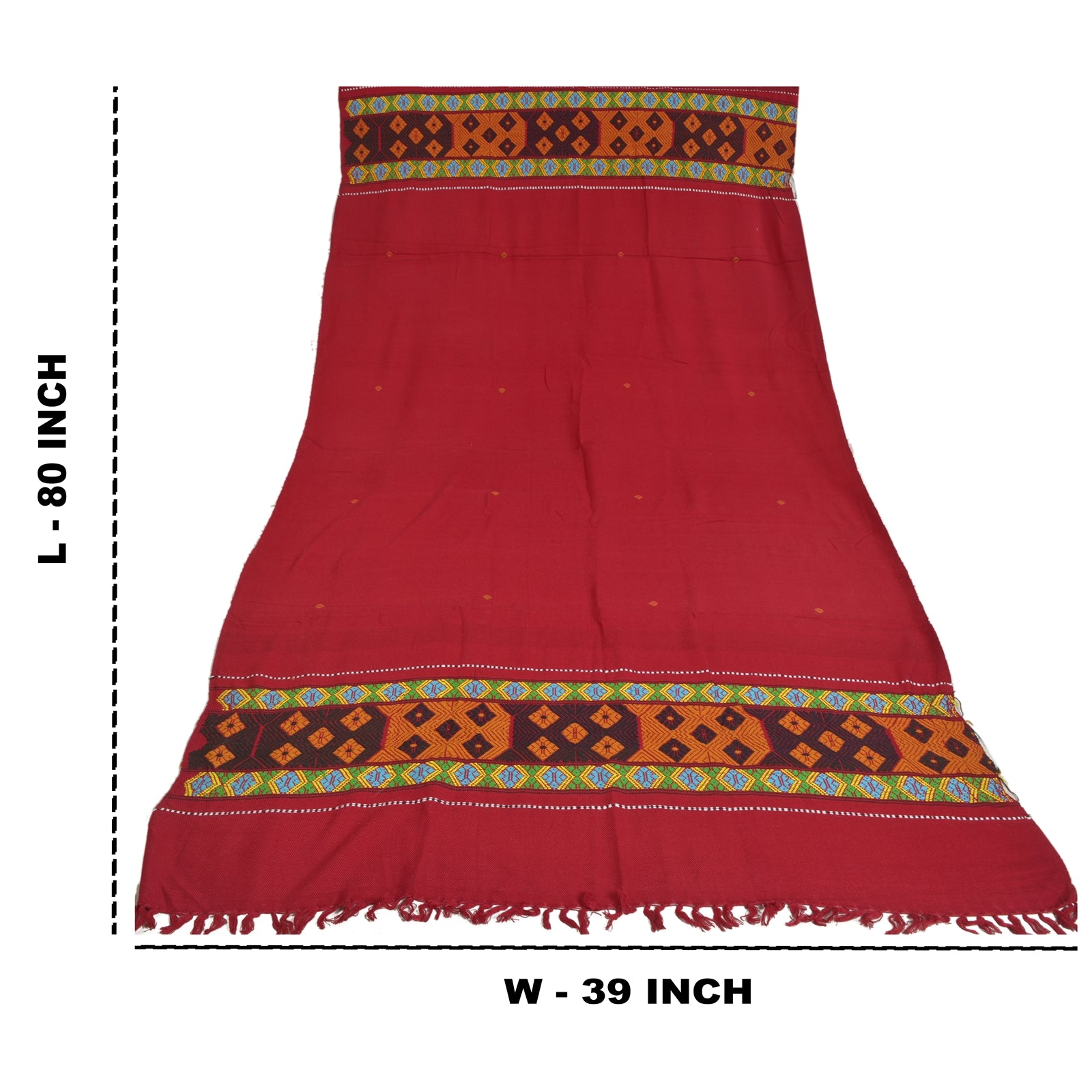 Sanskriti Vintage Long Dark Red Woollen Shawl Hand Embroidered Scarf Stole