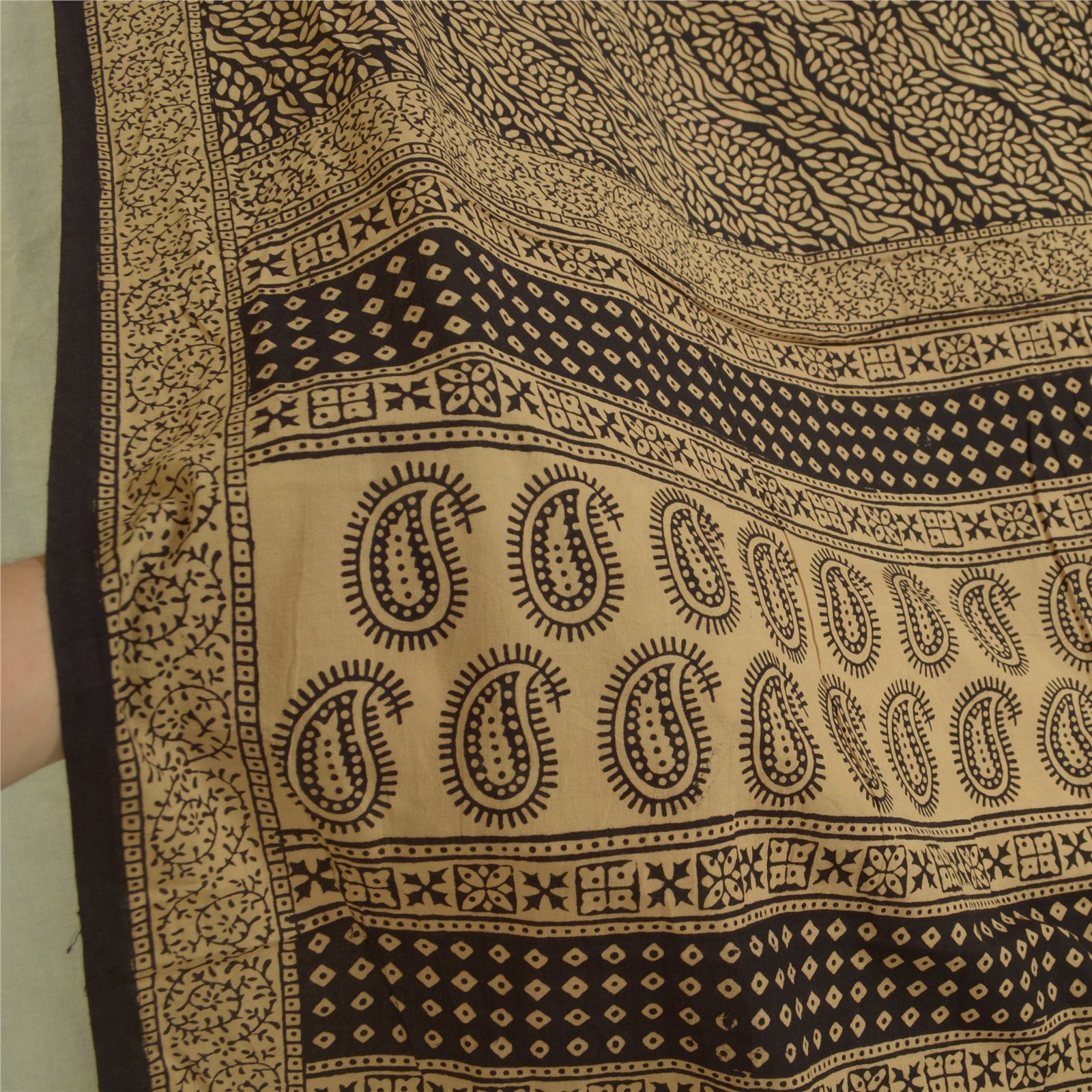 Sanskriti Vintage Long Dupatta Stole Pure Cotton Brown/Black Hand-Block Printed