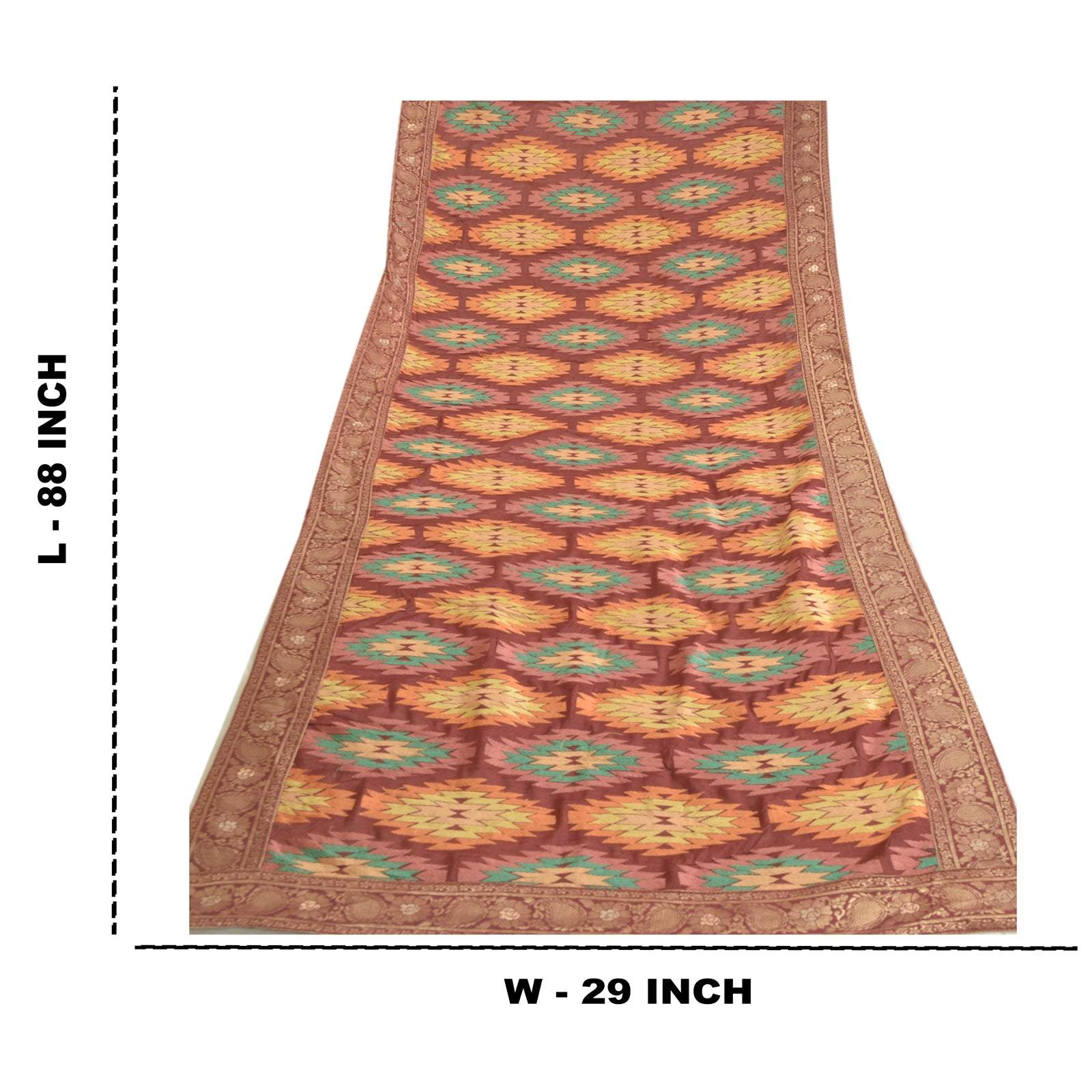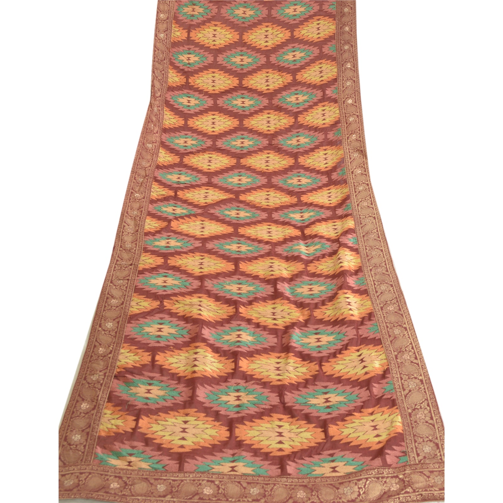 Sanskriti Vintage Long Dupatta Stole Pure Silk Brick Red Embroidered Wrap Veil