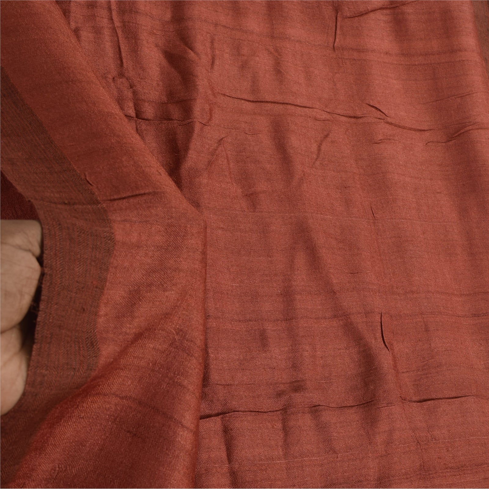 Sanskriti Vintage Long Dupatta/Stole Pure Silk Rusty Orange Solid Scarf Veil
