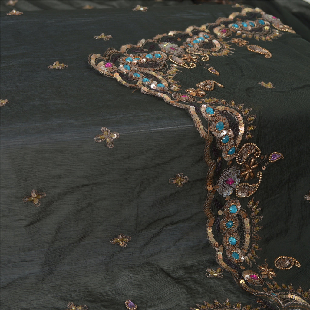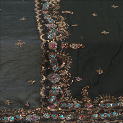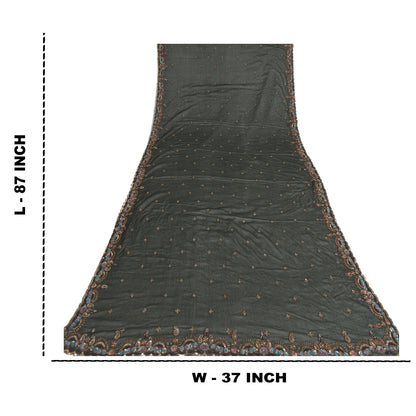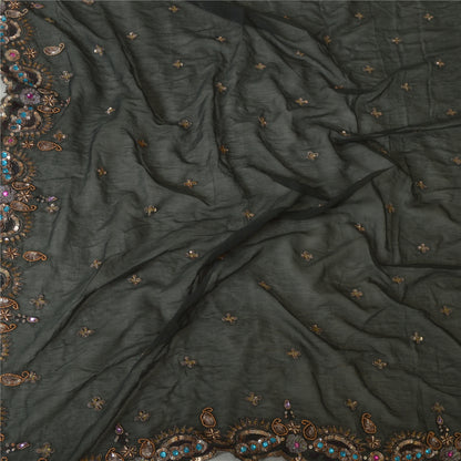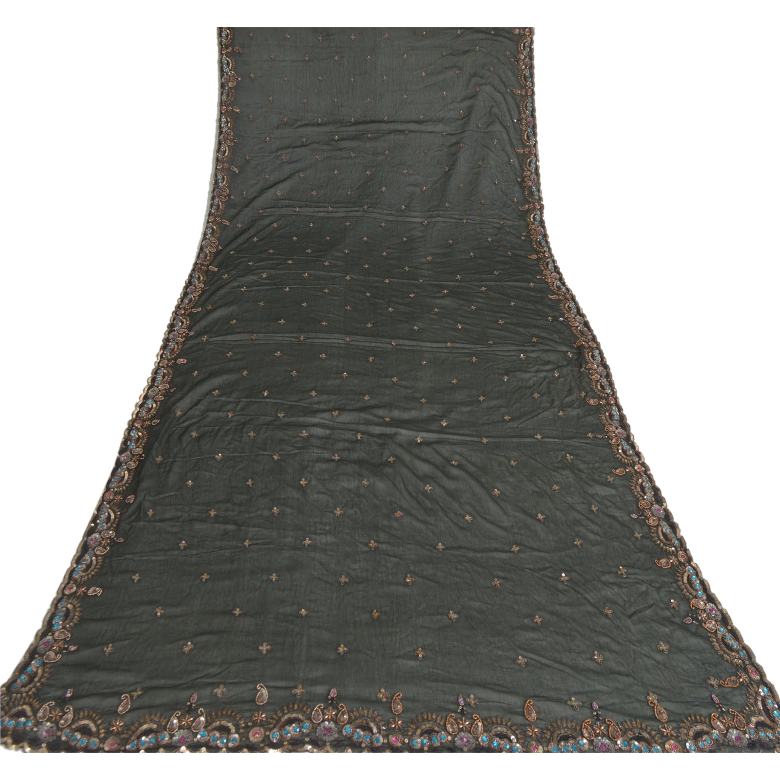 Sanskriti Vintage Long Indian Black Dupatta Chiffon Hand Beaded Zari Stole Veil