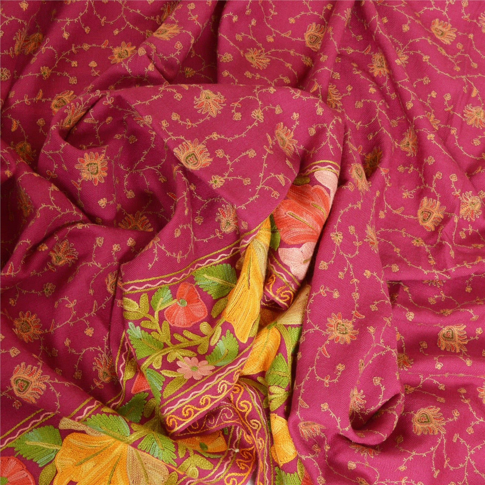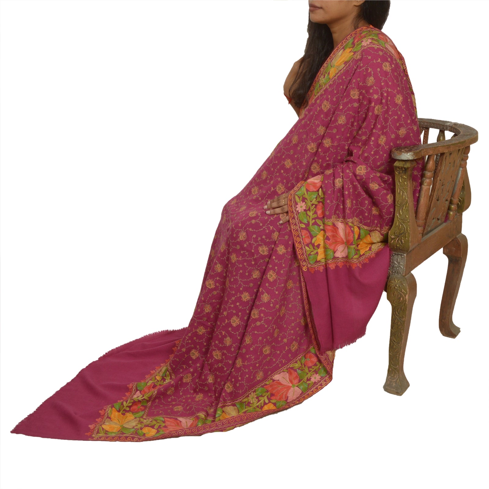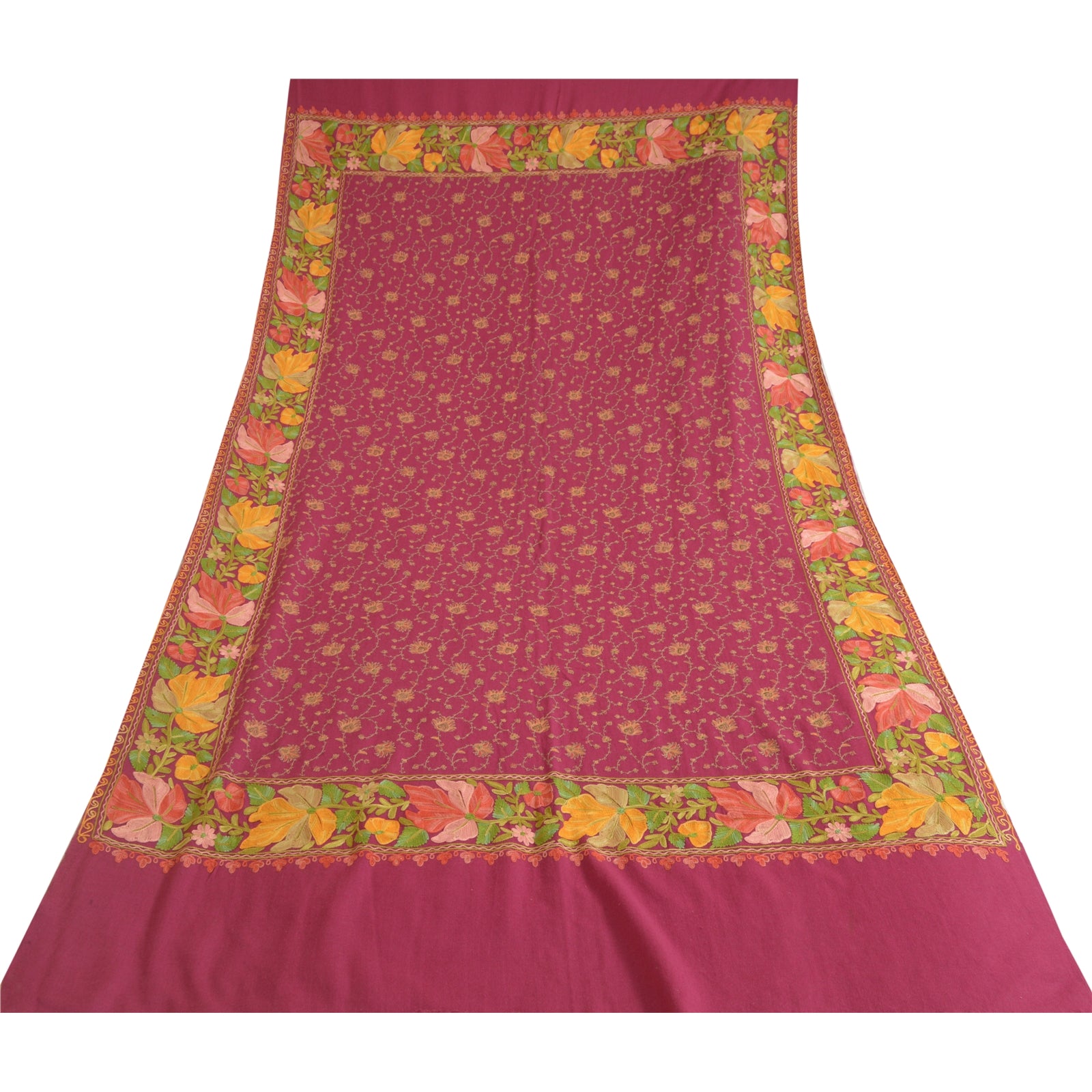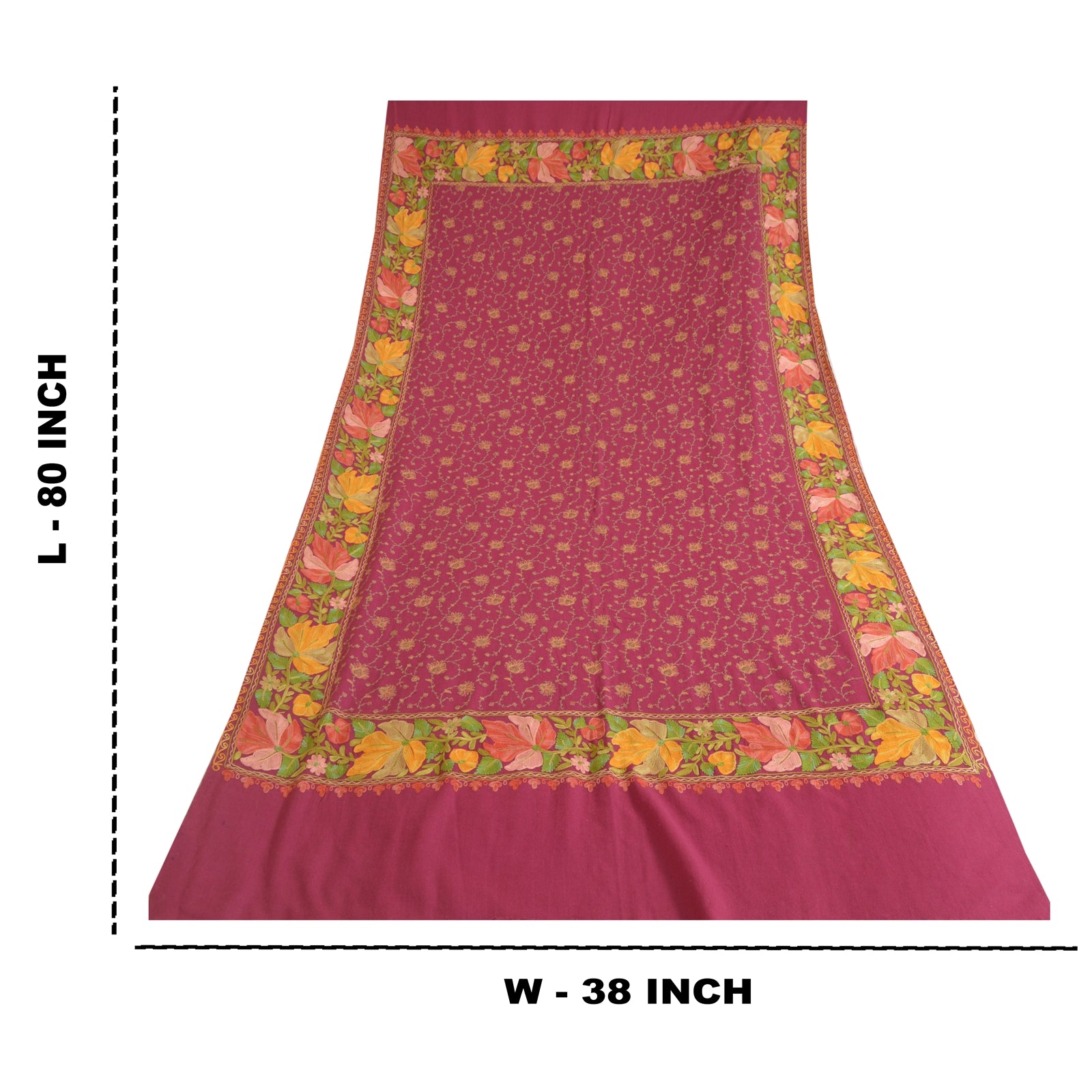 Sanskriti Vintage Long Pink Pure Woolen Shawl Handmade Ari Work Scarf Stole