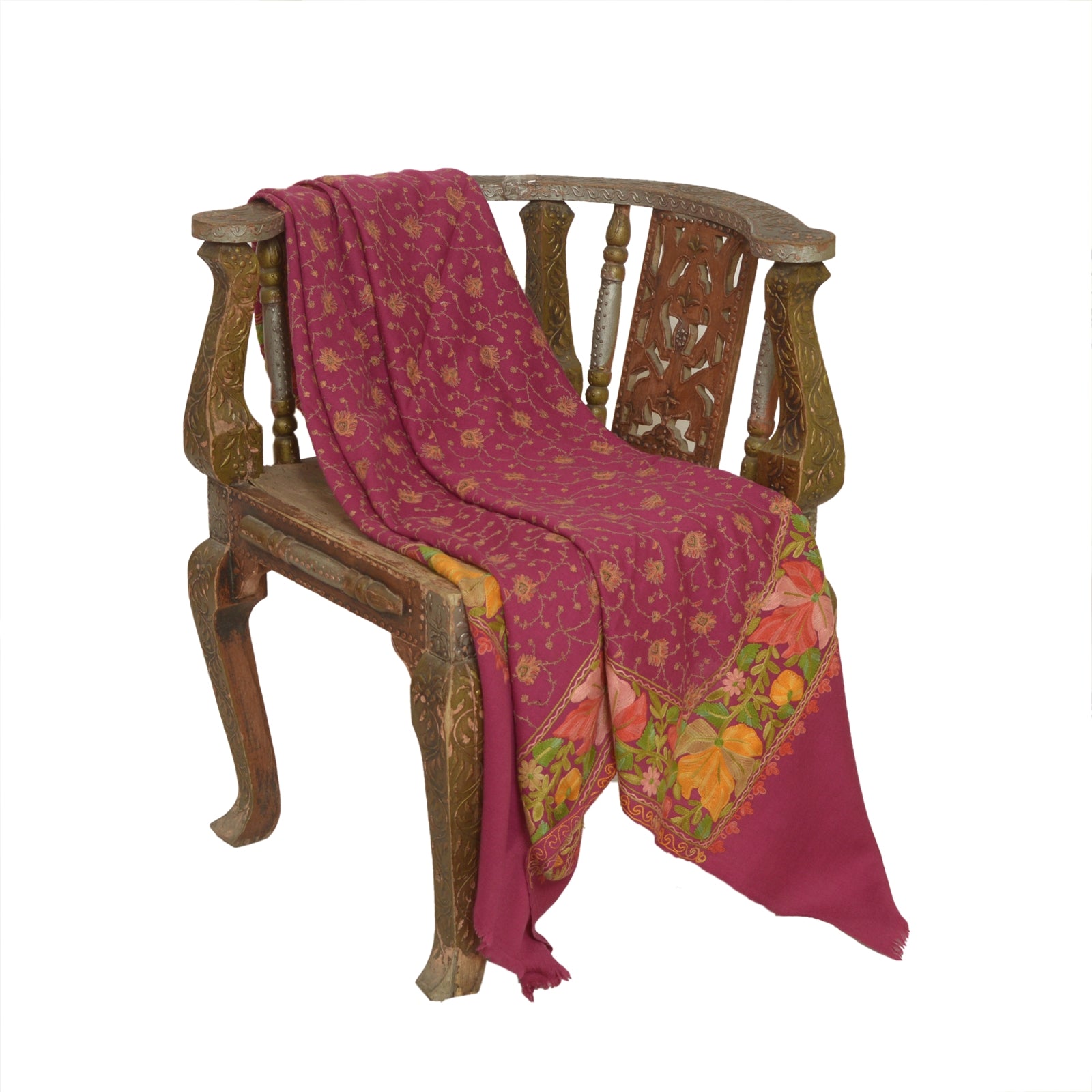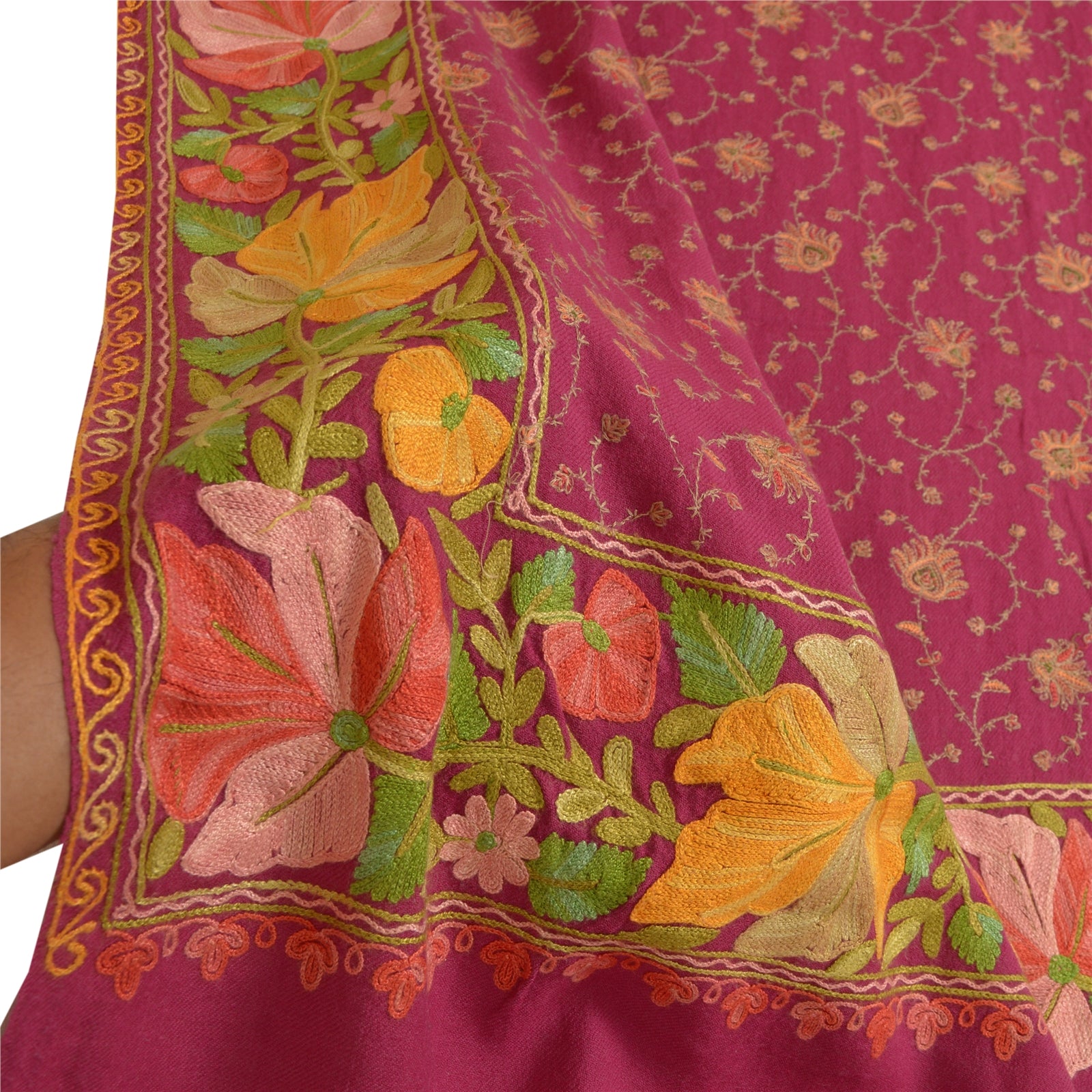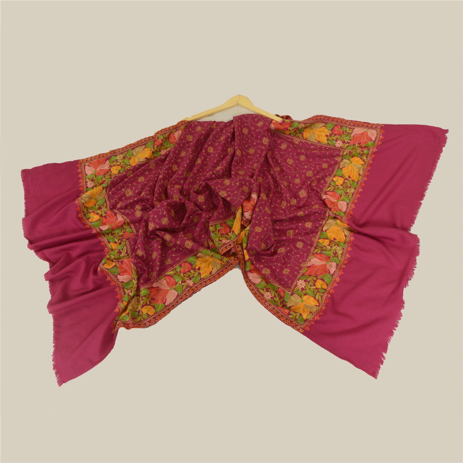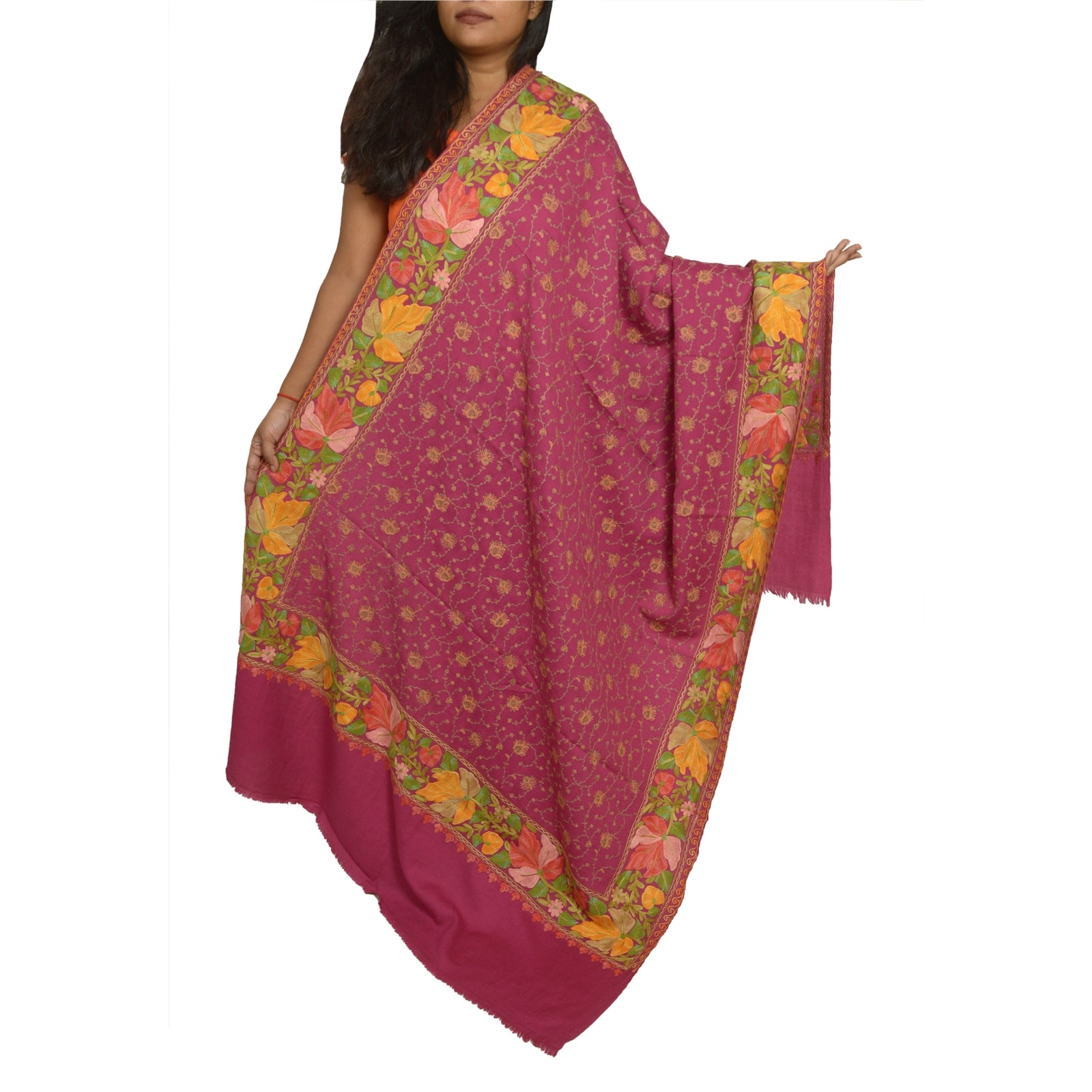 Sanskriti Vintage Long Pink Pure Woolen Shawl Handmade Ari Work Scarf Stole