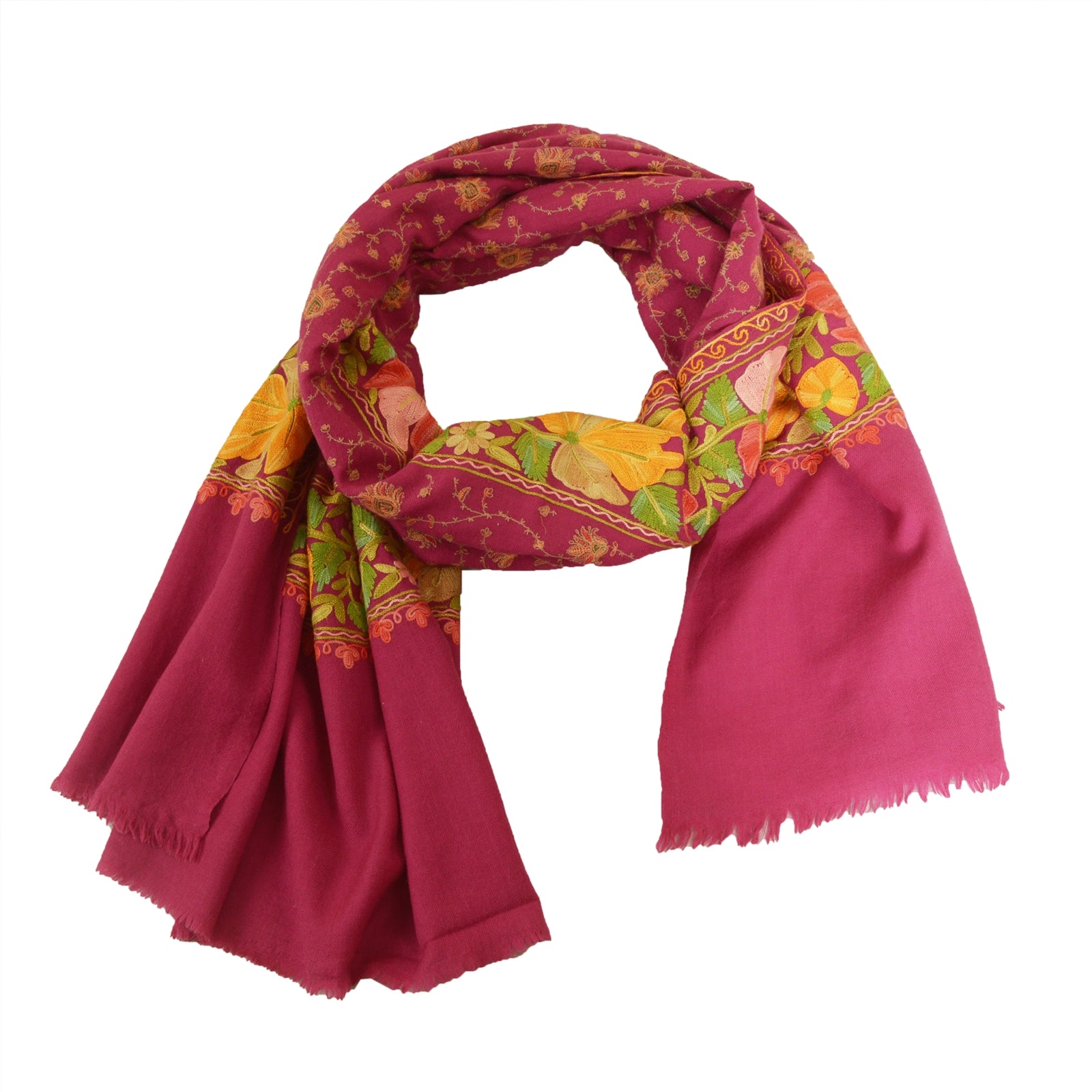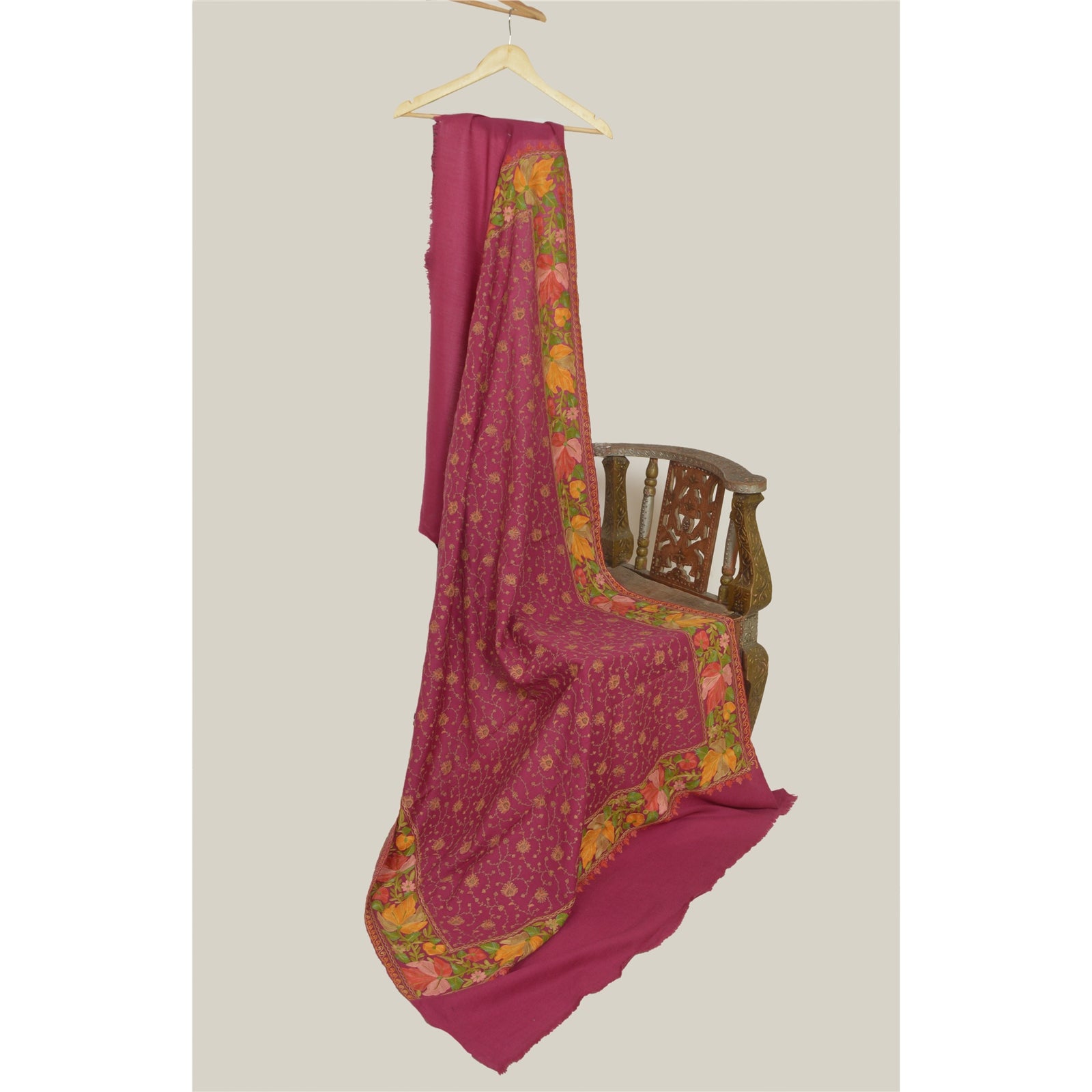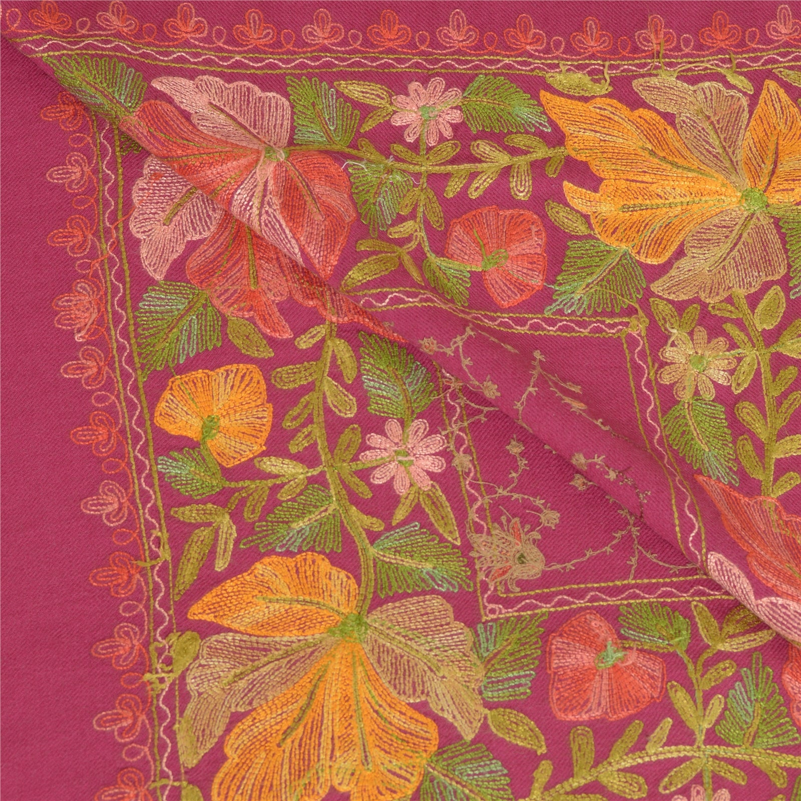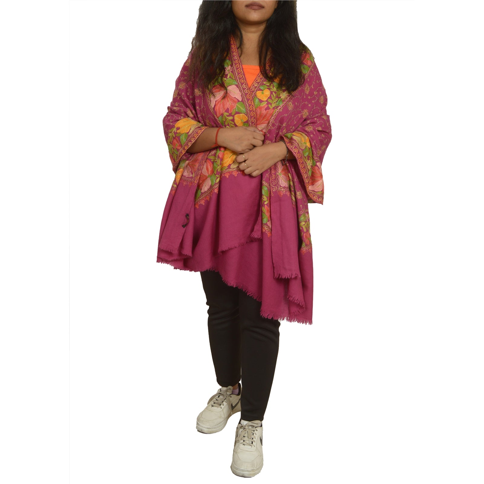 Sanskriti Vintage Long Pink Pure Woolen Shawl Handmade Ari Work Scarf Stole