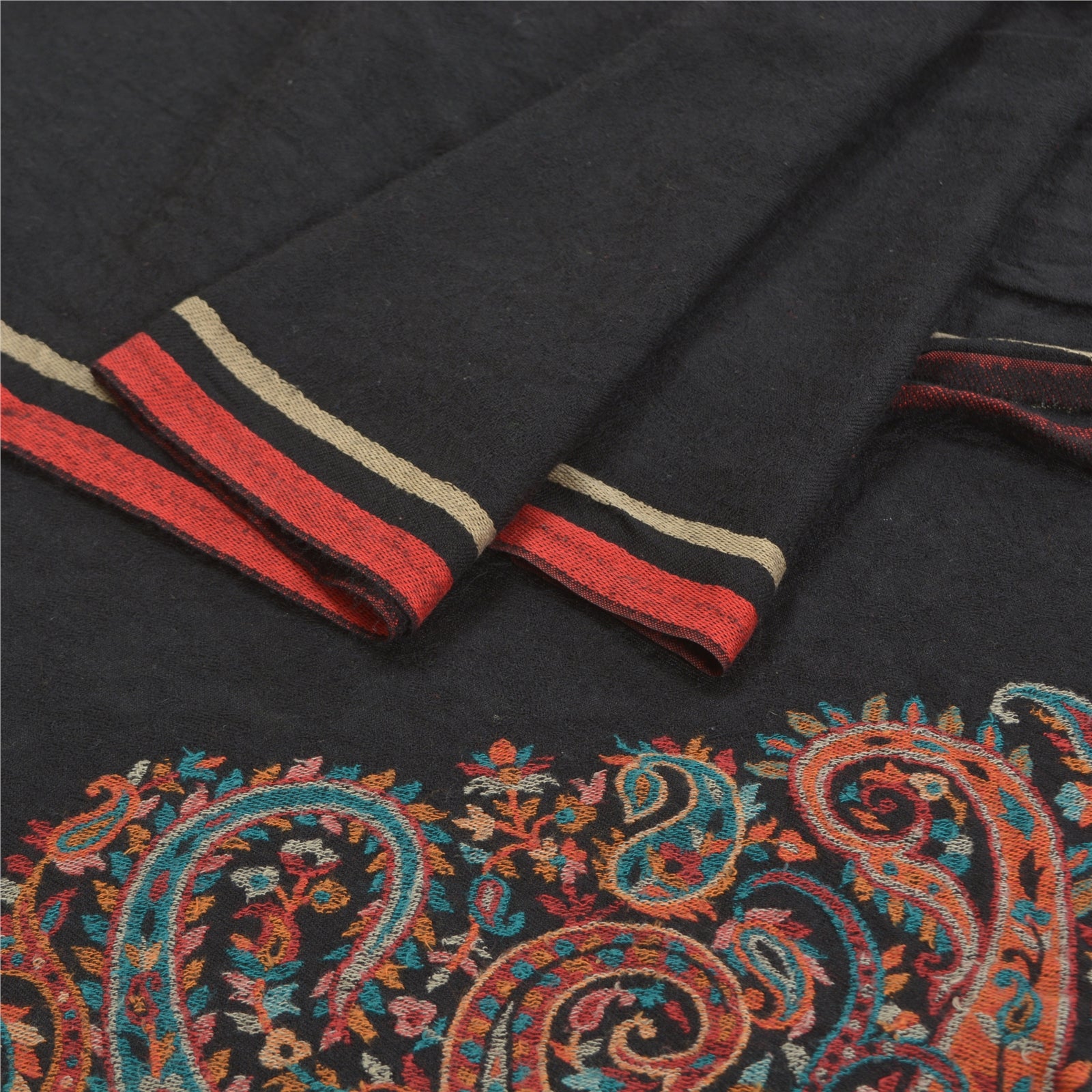 Sanskriti Vintage Long Pure Woolen Black Shawl Woven Scarf Throw Soft Stole