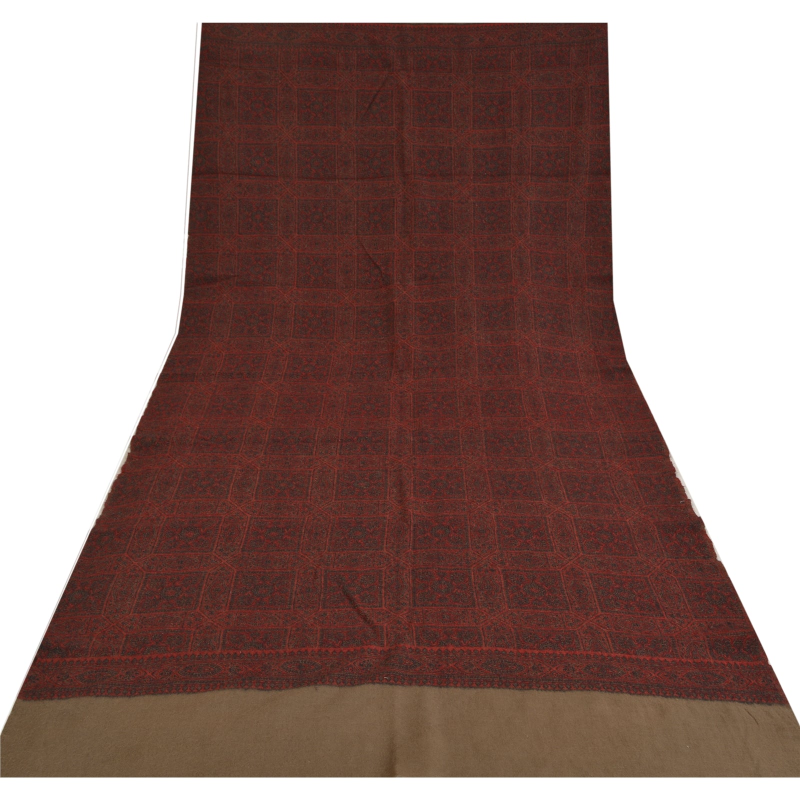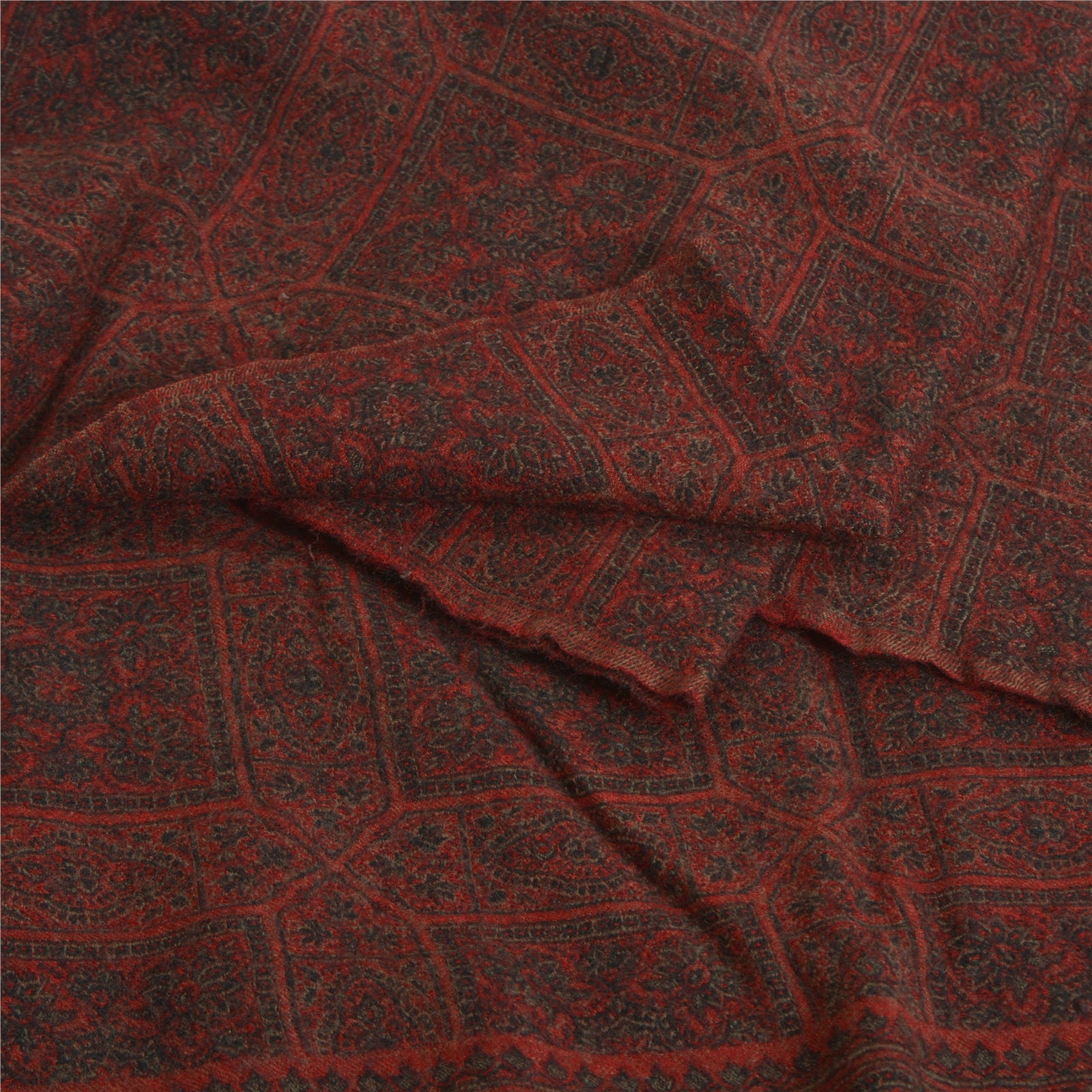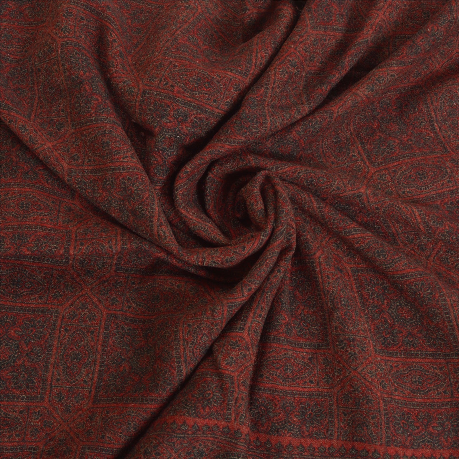 Sanskriti Vintage Long Pure Woolen Dark Red Shawl Woven Scarf Throw Soft Stole