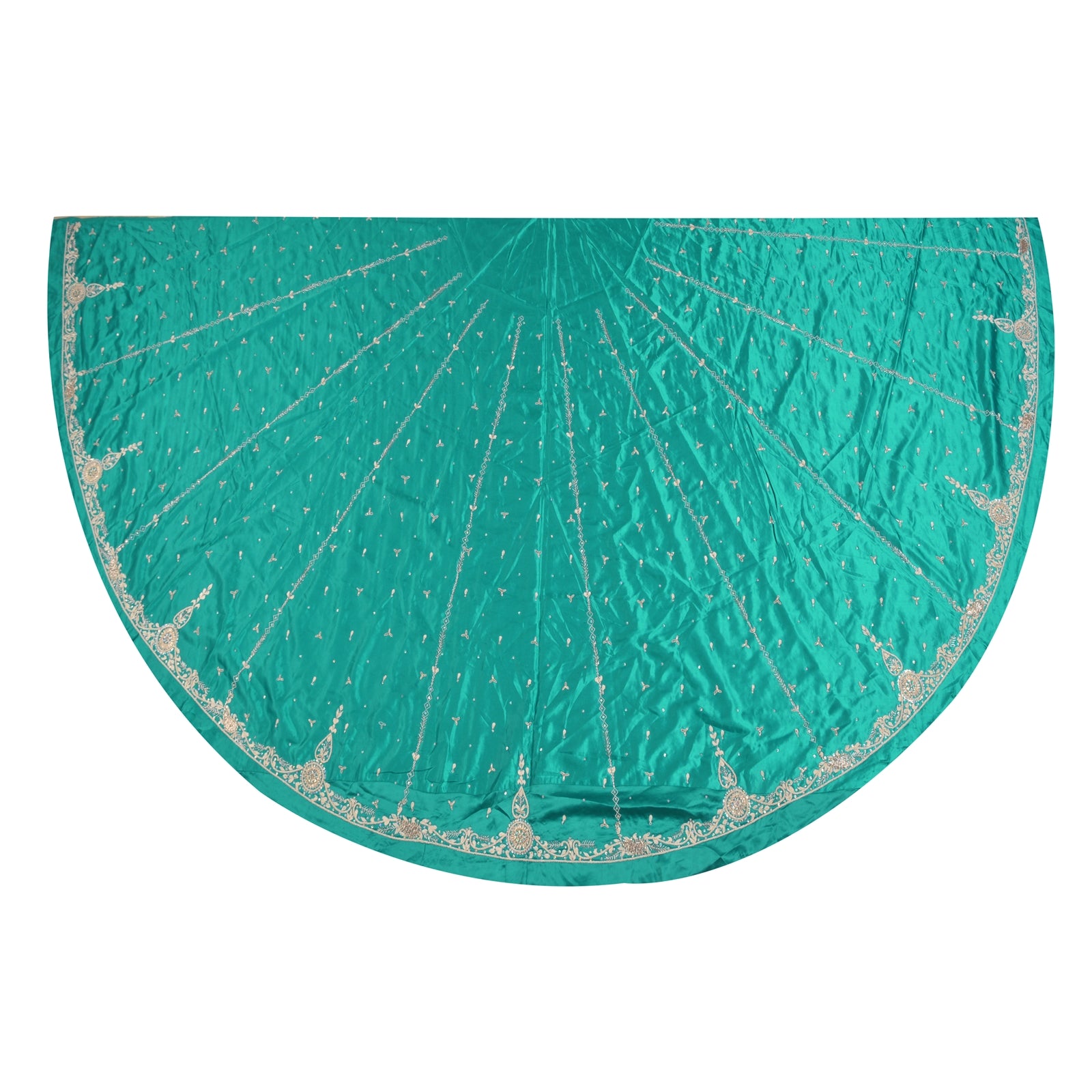 Sanskriti Offers This Vintage Green color Unstitched Long Skirt Made With 100% Pure Satin Silk Base Sustainable Fabric. Flare of the skirt has floral design embellished with pure metallic golden zardozi/dabka work, silver sequins, white glass beads work. You can see similar zardozi work work with floral motifs on center part of skirt. Flaunt this heavy skirt with ethnic tops, blouses or kurtis at parties, weddings and other occasions. Measurment of the skirt- Length-41 Or Flare-150 Inches. Outstanding hand embroidered work skirt with beautiful craftsmanship which I am sure you will truly appreciate.