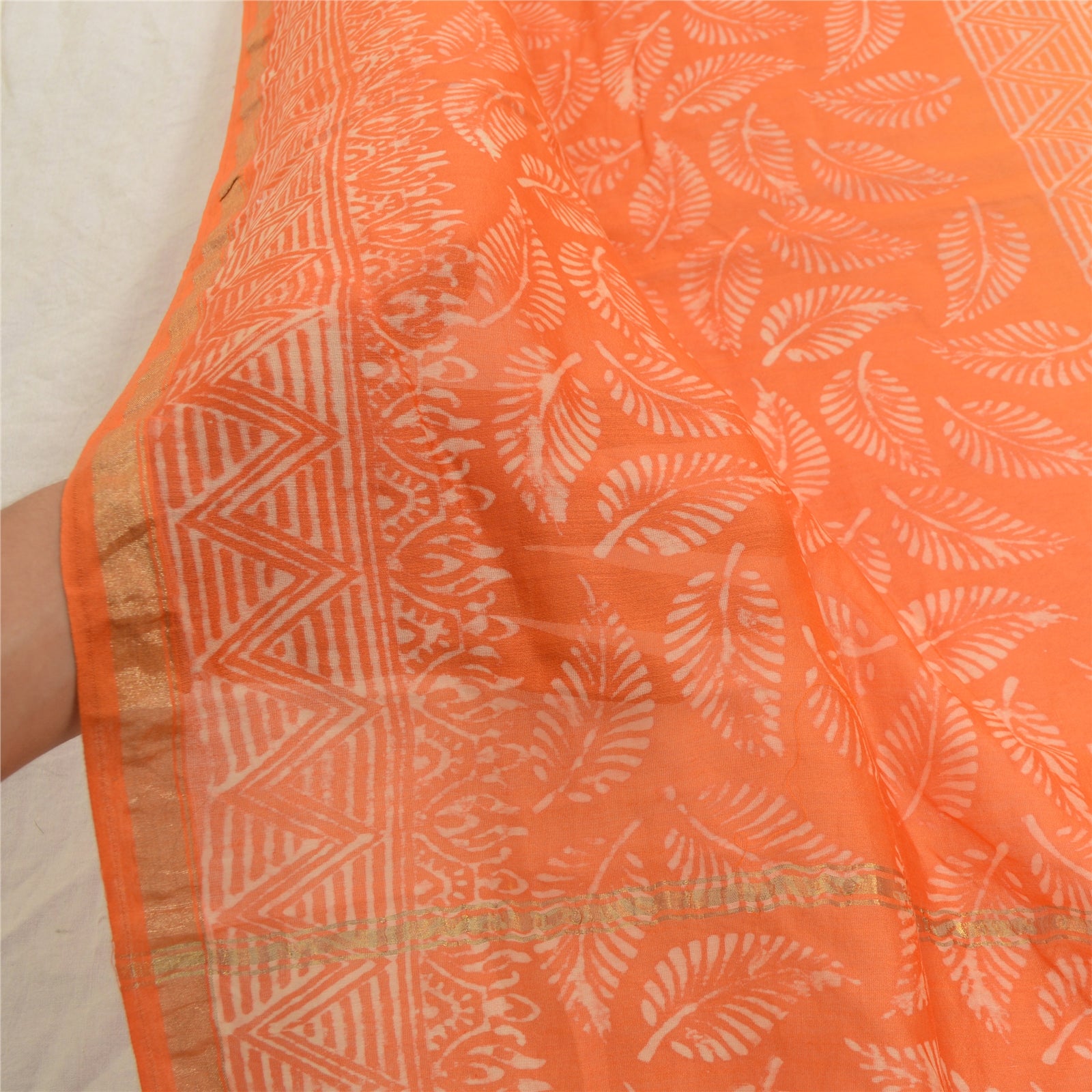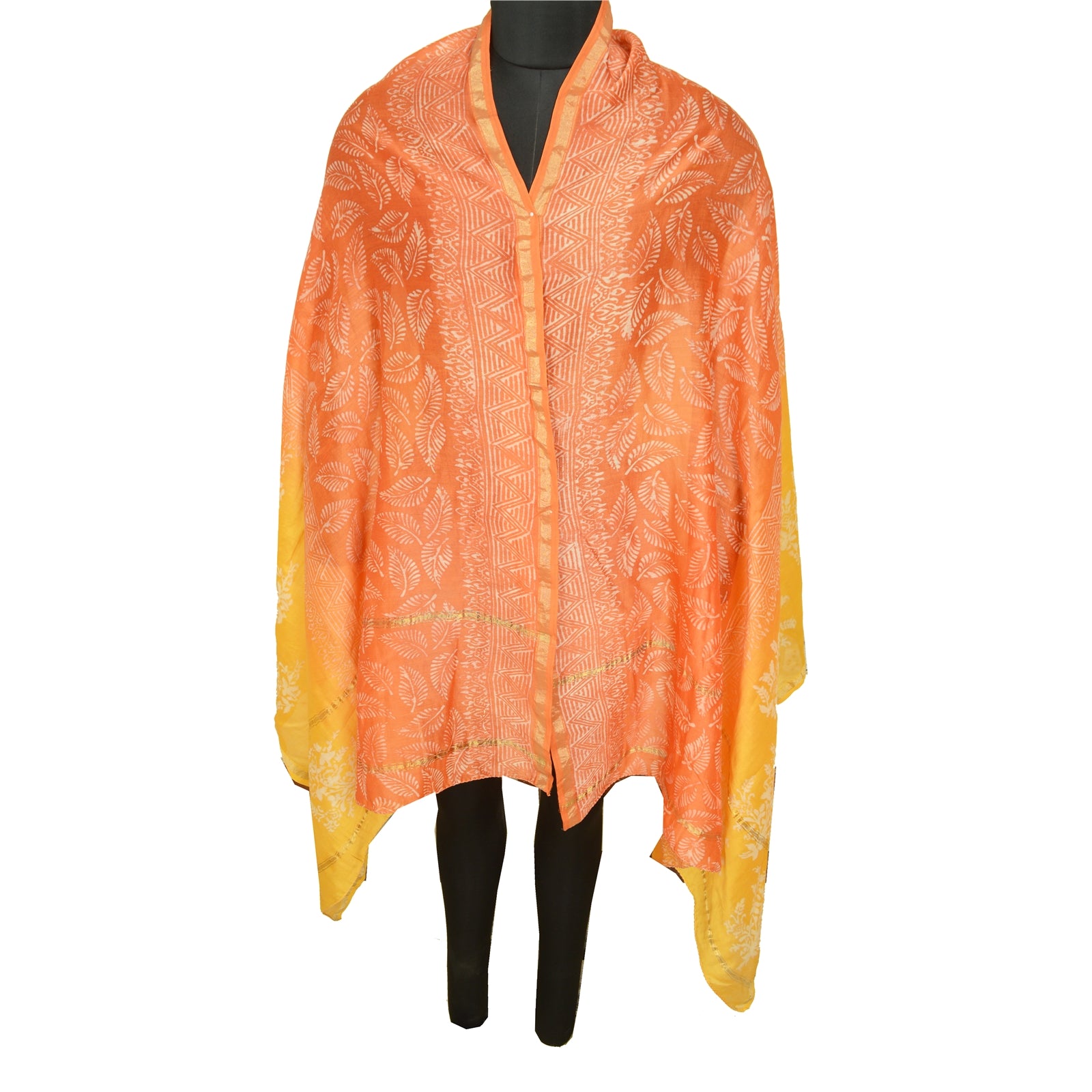 Sanskriti Vintage Long Yellow/Orange Dupatta Stole Pure Silk Hand-Block Printed